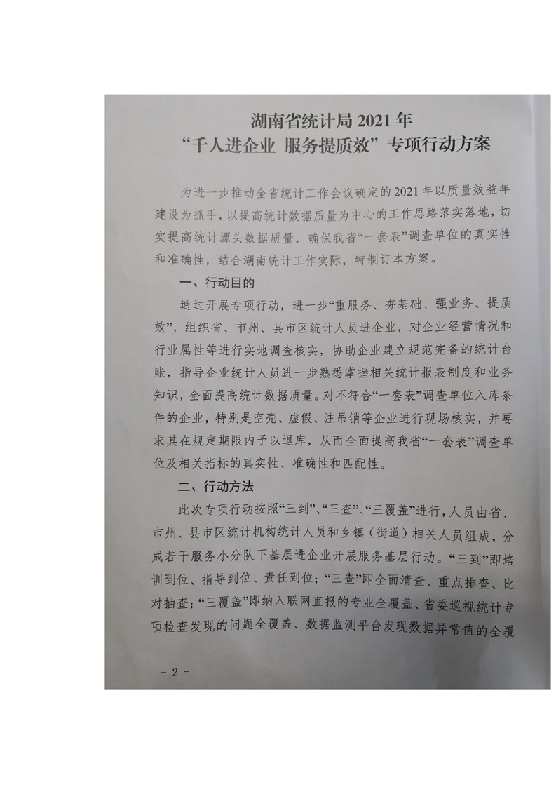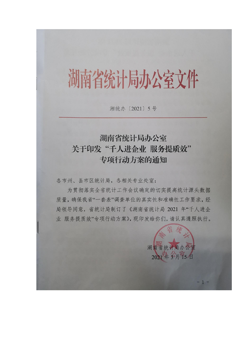 湖南省统计局办公室关于印发“千人进企业 服务提质效”专项行动方案的通知