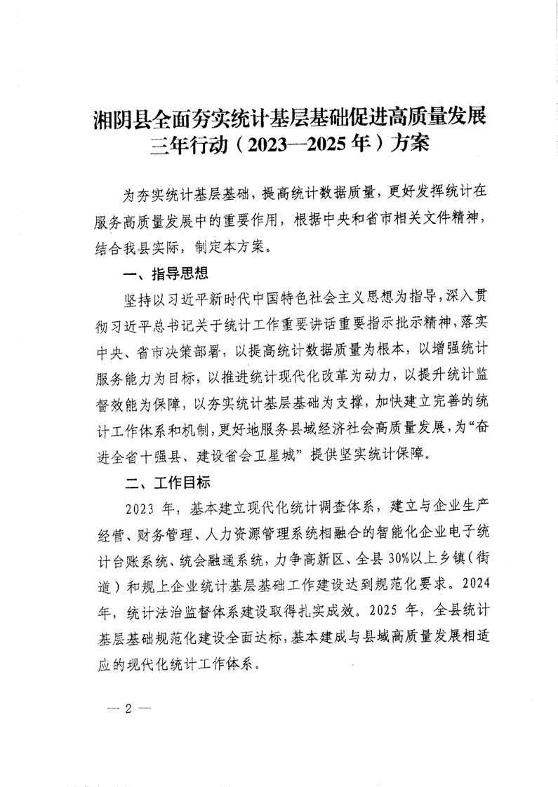 关于印发《湘阴县全面夯实统计基层基础促进高质量发展三年行动(2023-2025年)方案》的通知