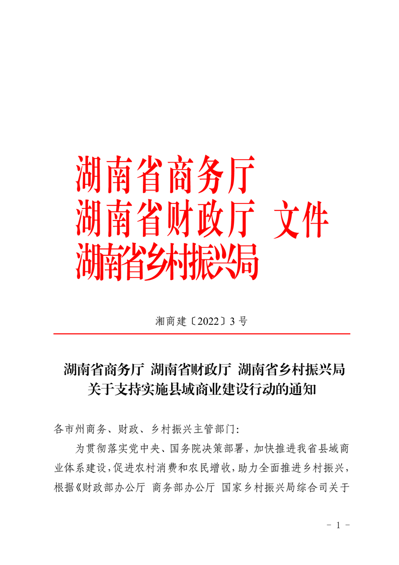 关于转发《湖南省商务厅 湖南省财政厅 湖南省乡村振兴局关于支持实施县域商业建设行动的通知》