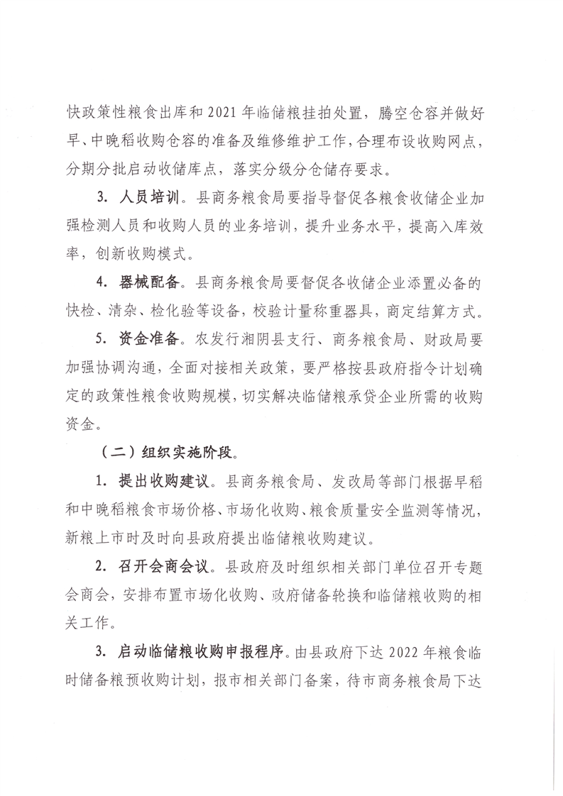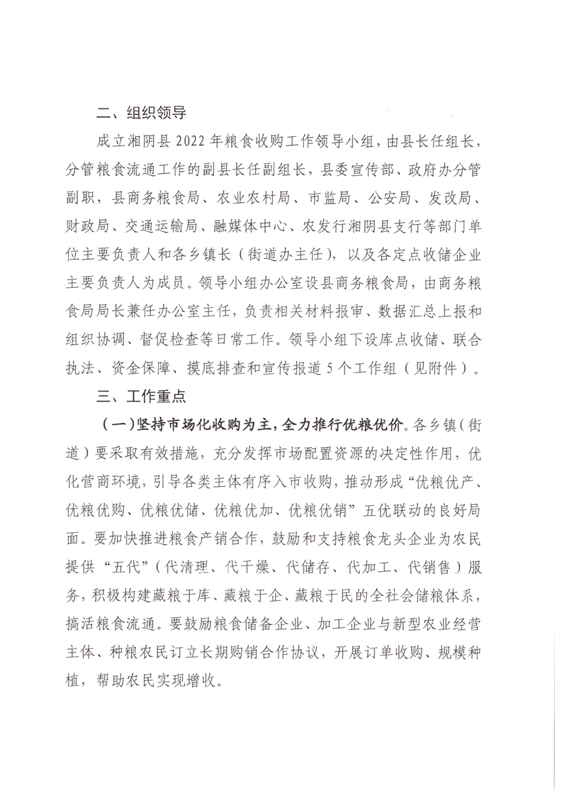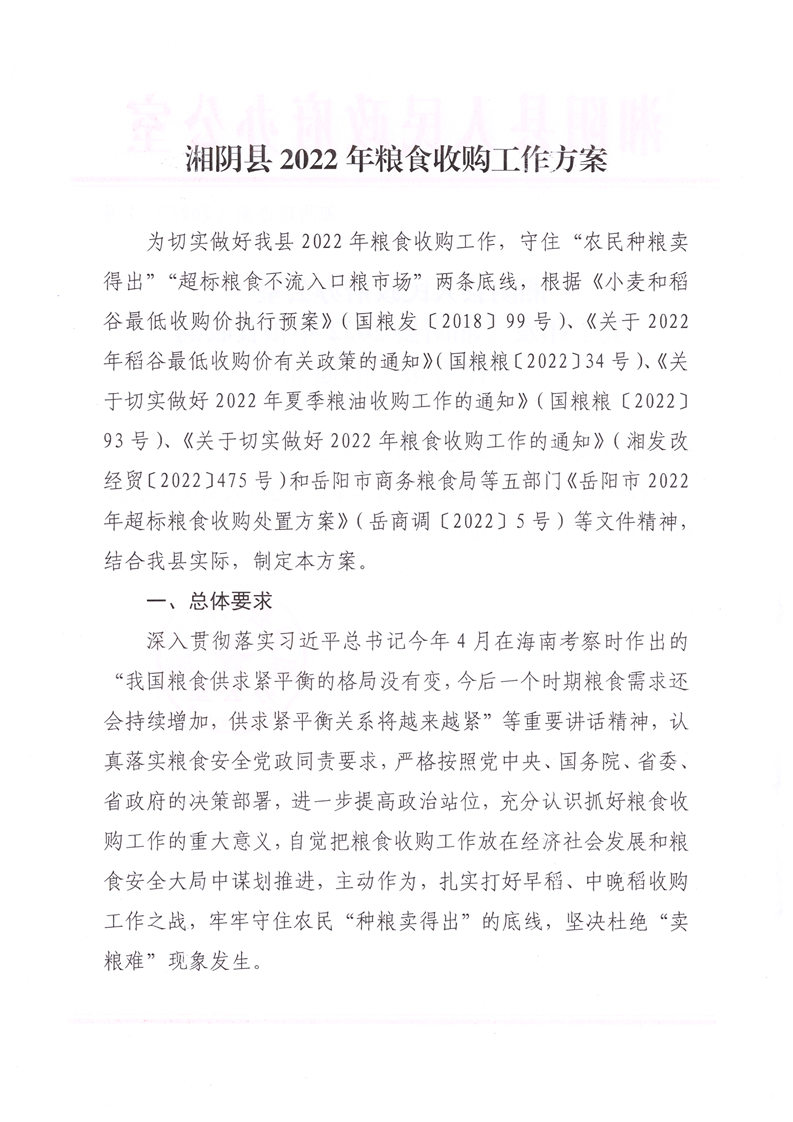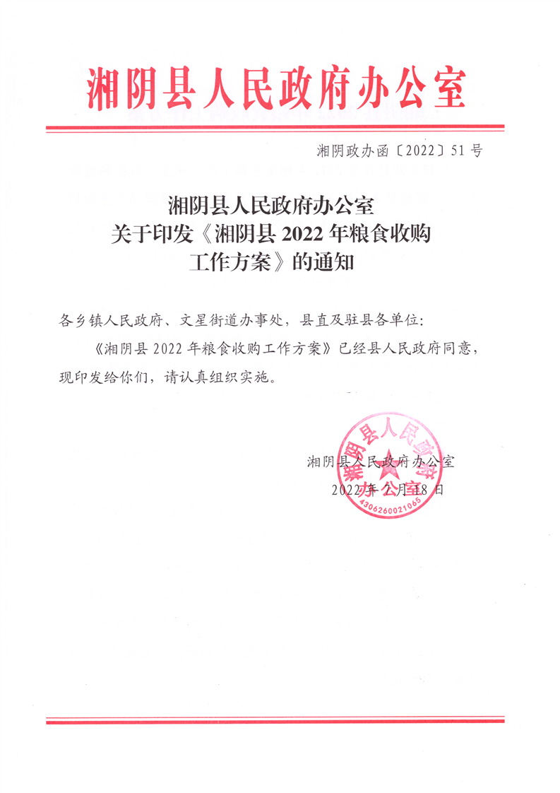 关于印发《湘阴县2022年粮食收购工作方案》的通知