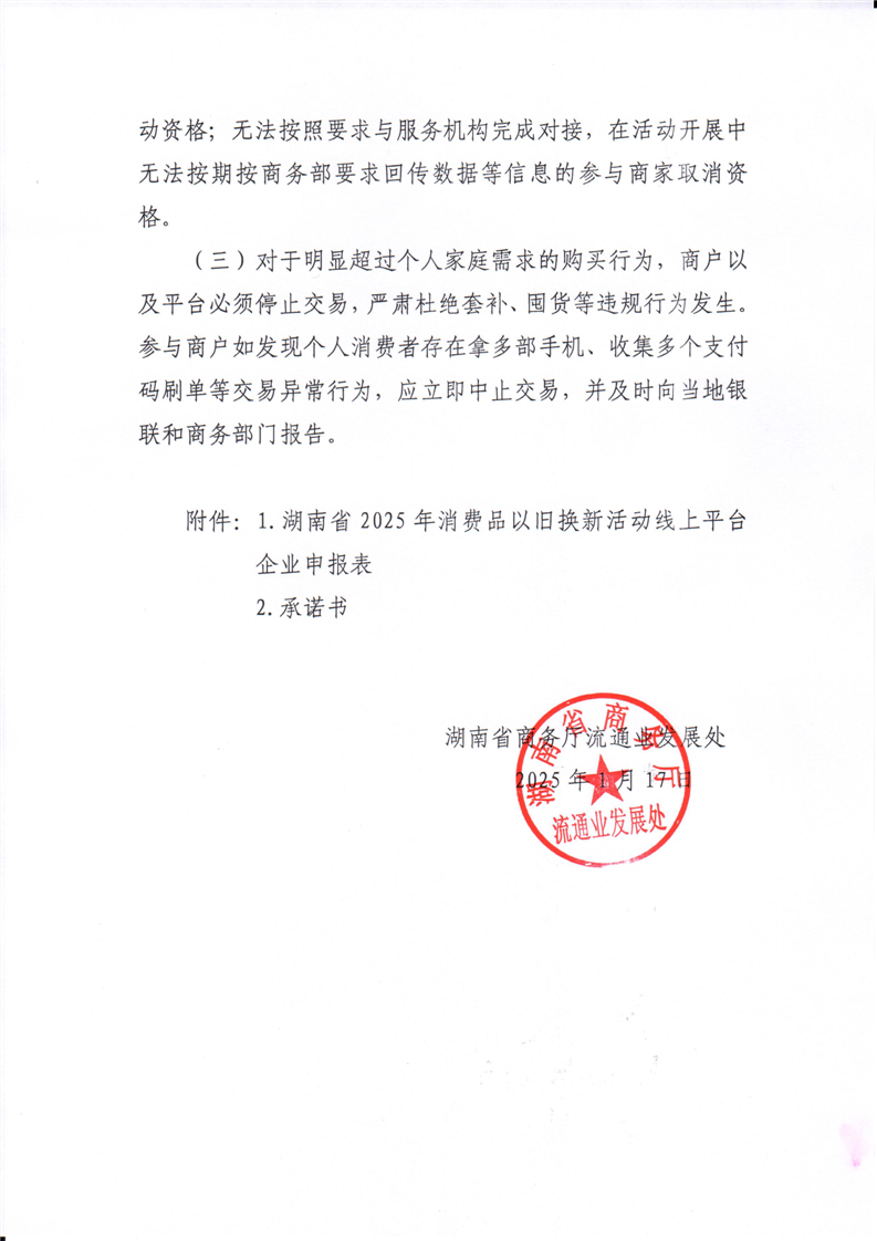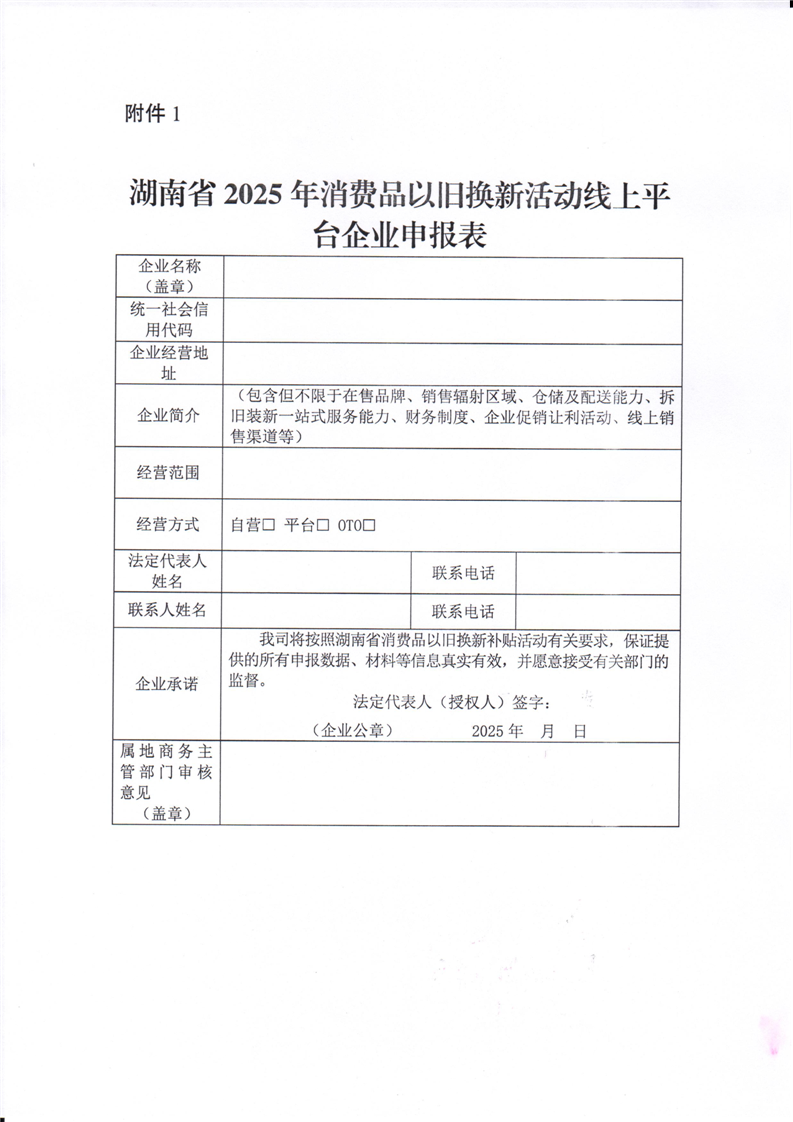 关于转发《湖南省商务厅关于征集2025年消费品以旧换新活动线上企业的通知》