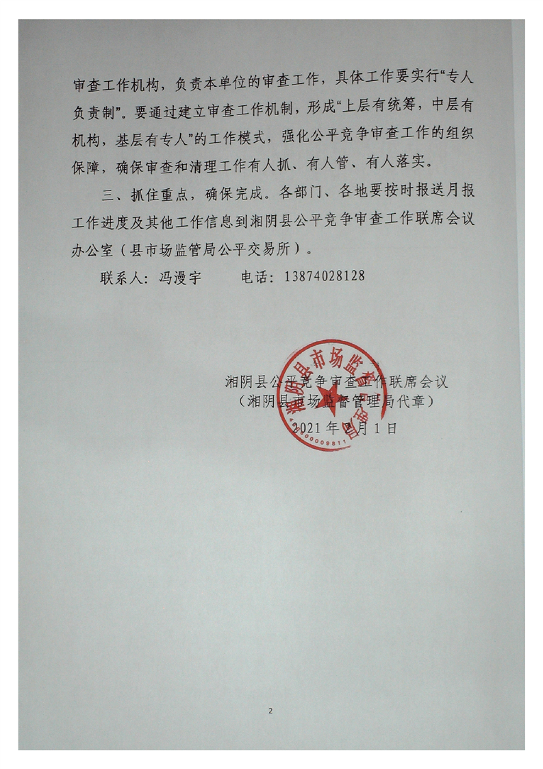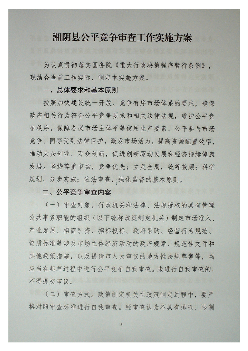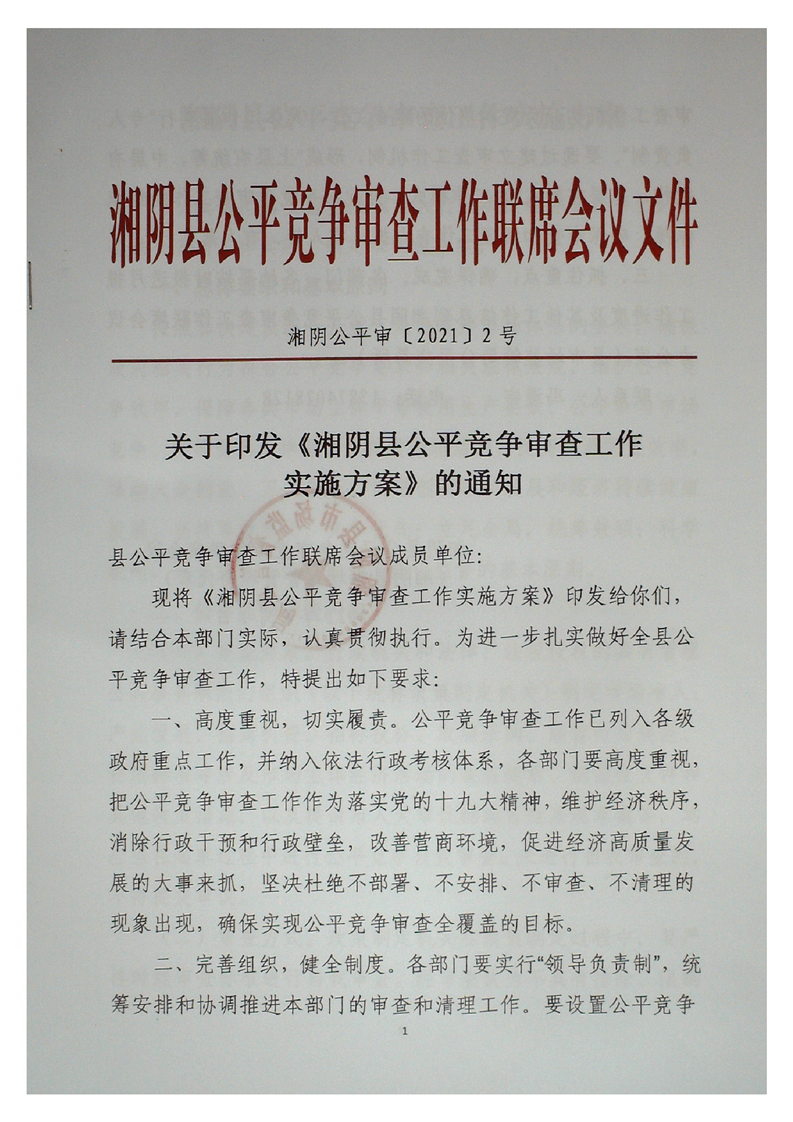 关于印发《湘阴县公平竞争审查工作实施方案》的通知