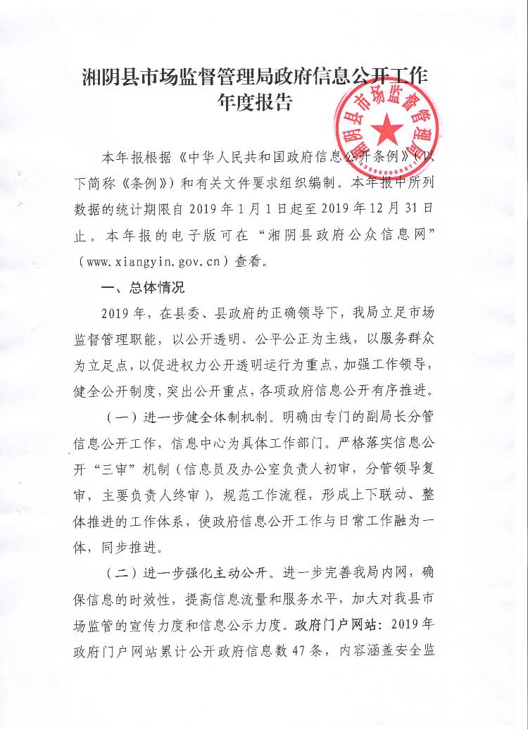 湘阴县市场监督管理局2019年政府信息公开工作年度报告