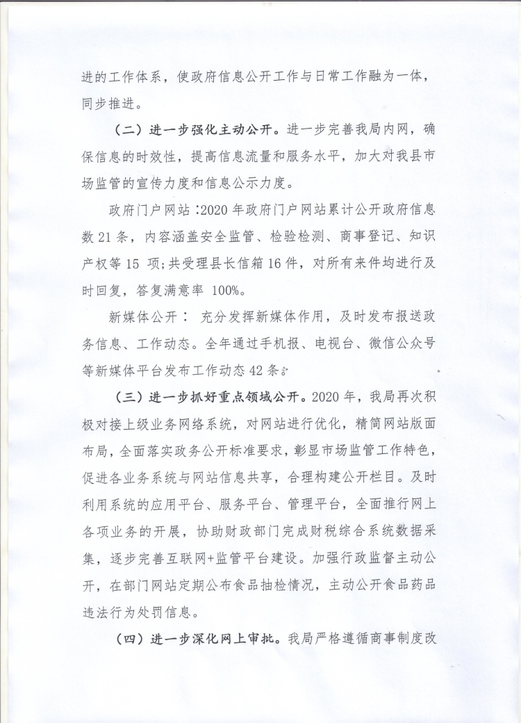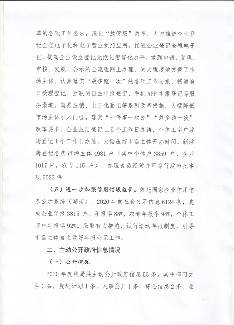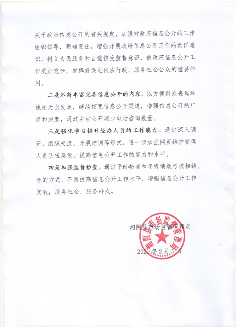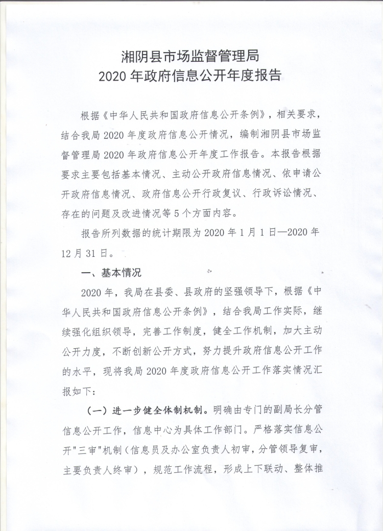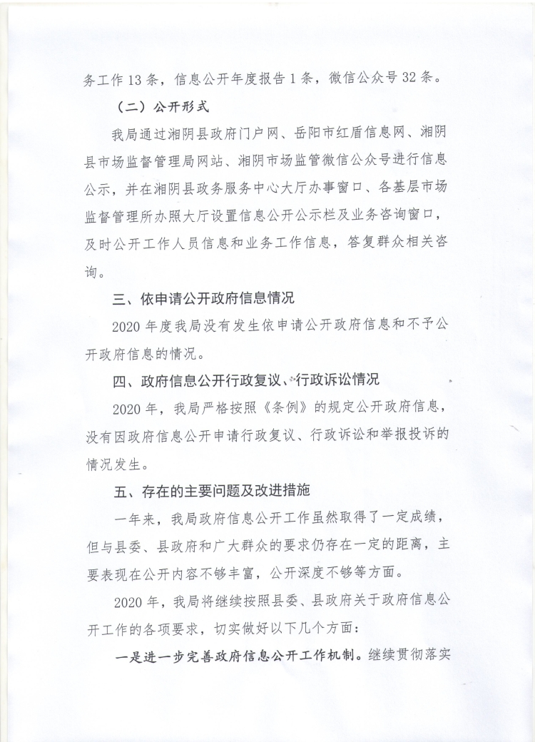 湘阴县市场监督管理局2020年政府信息公开工作年度报告