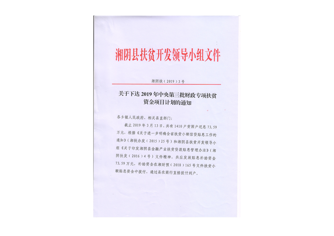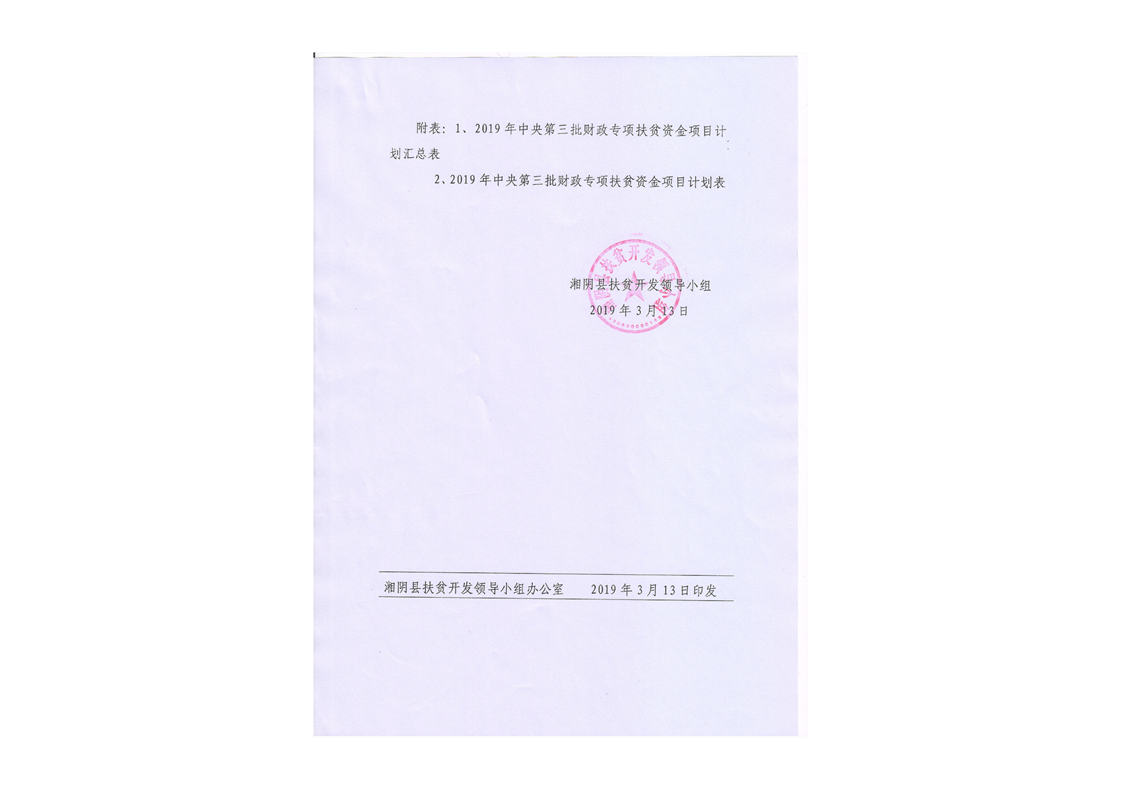 3号关于下达2019年中央第三批财政专项扶贫资金项目计划的通知