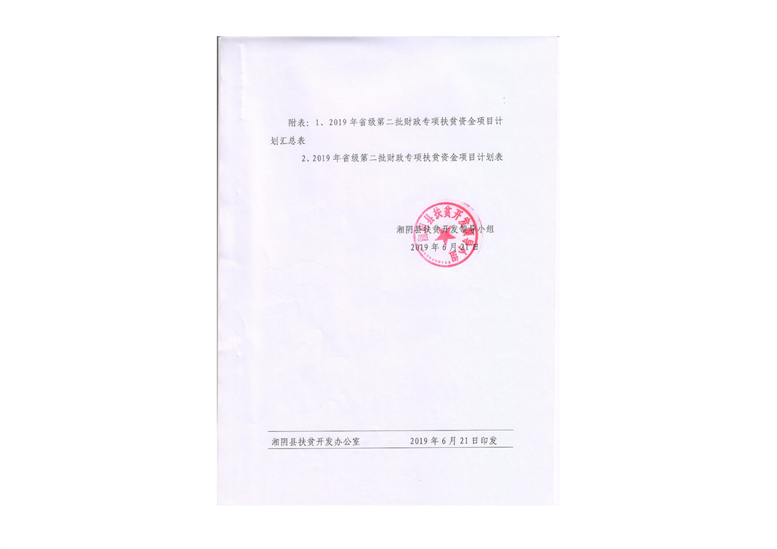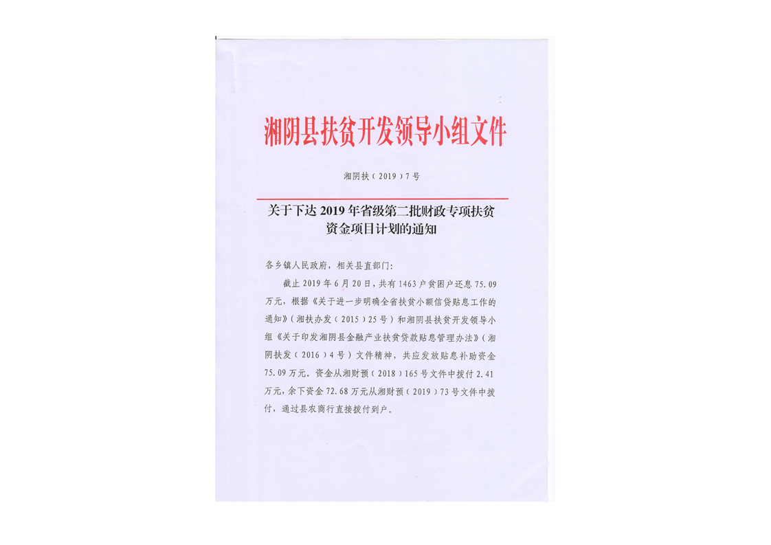 7号关于下达2019年省级第二批财政专项扶贫资金项目计划的通知