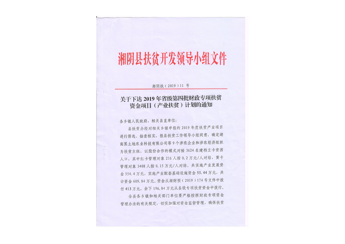 11号关于下达2019年省级第四批财政专项扶贫资金项目(产业扶贫)计划的通知