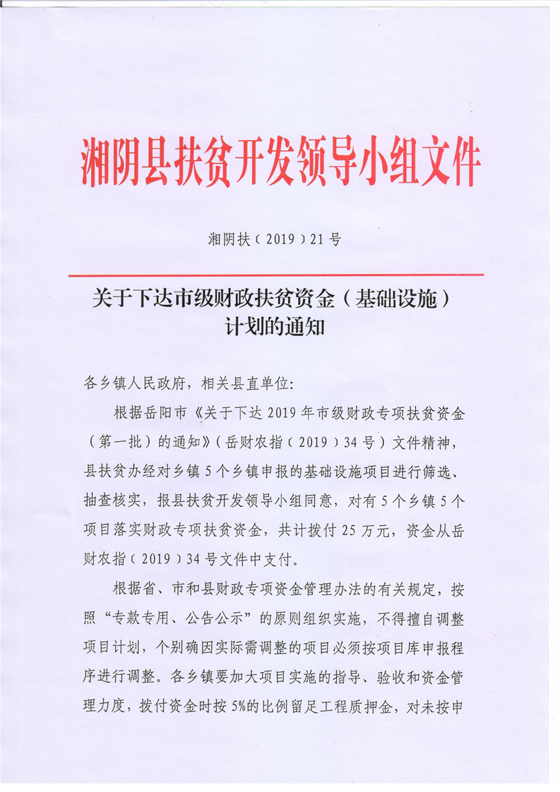 关于下达市级财政扶贫资金(基础设施)计划的通知
