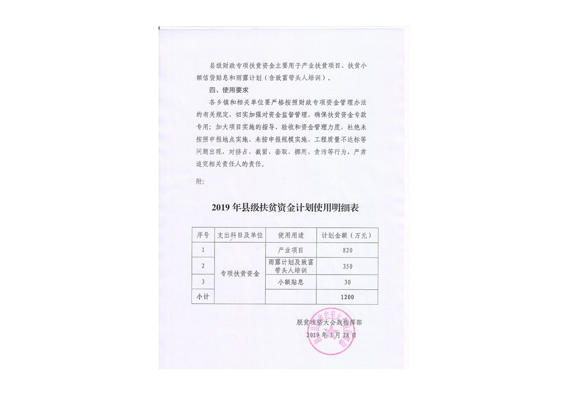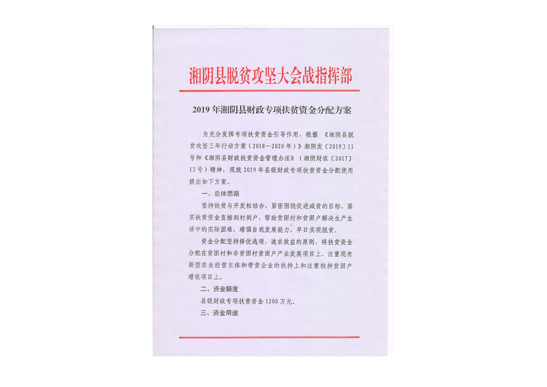 2019年湘阴县财政专项扶贫资金分配方案
