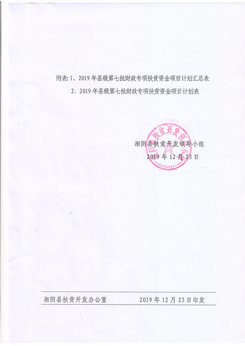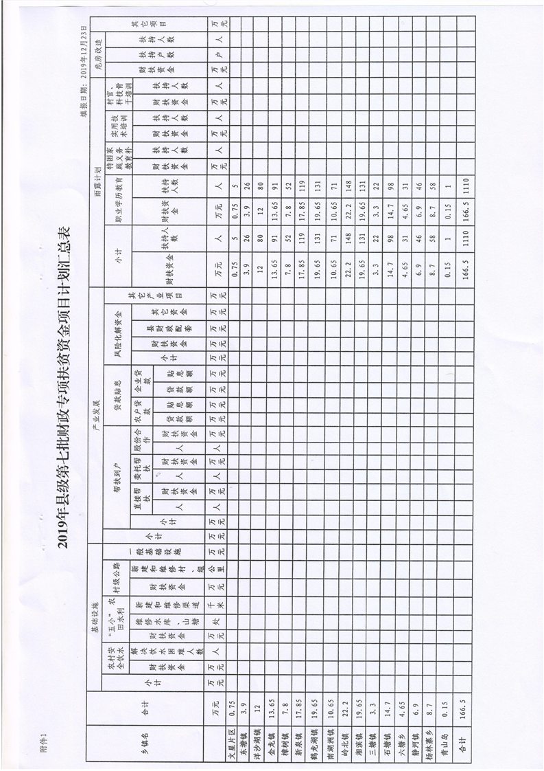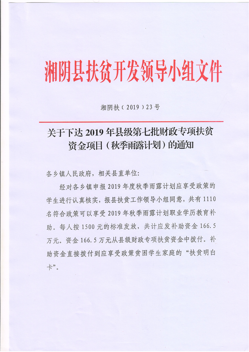 关于下达2019年县级第七批财政专项扶贫资金项目(秋季雨露计划)的通知