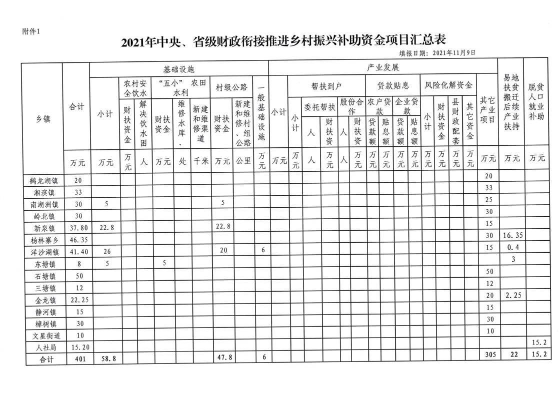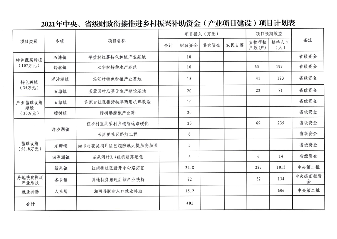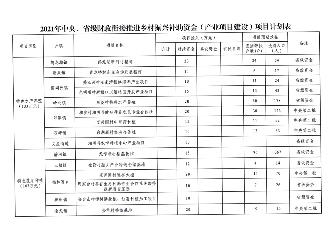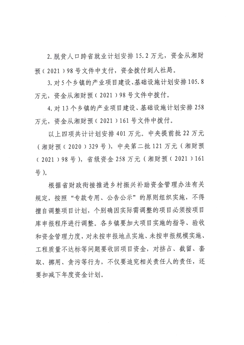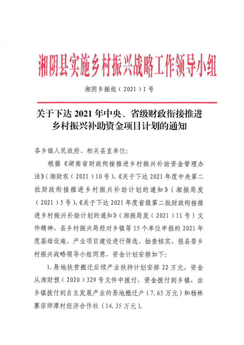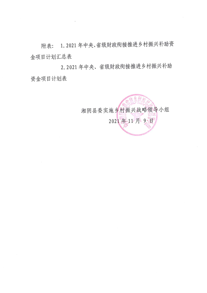 关于下达2021年中央、省级财政衔接推进乡村振兴补助资金项目计划的通知