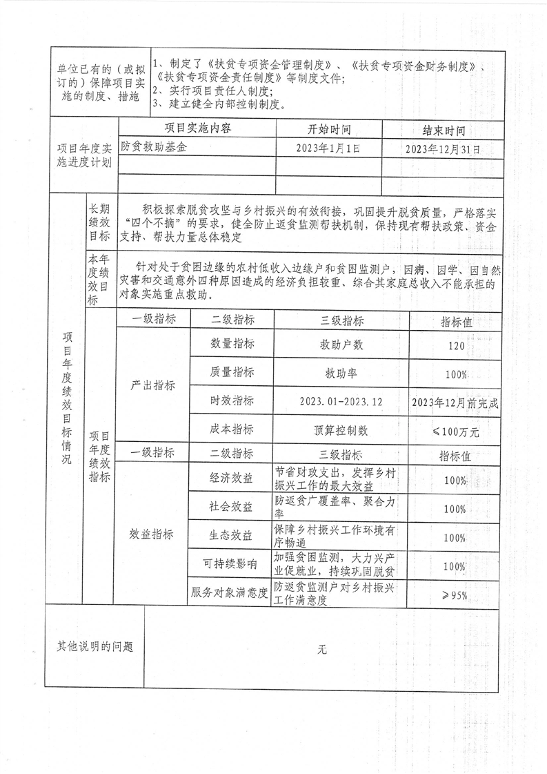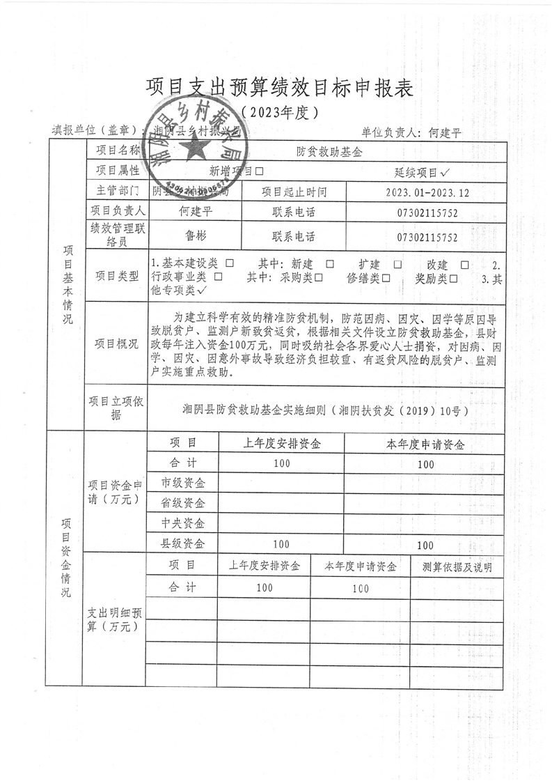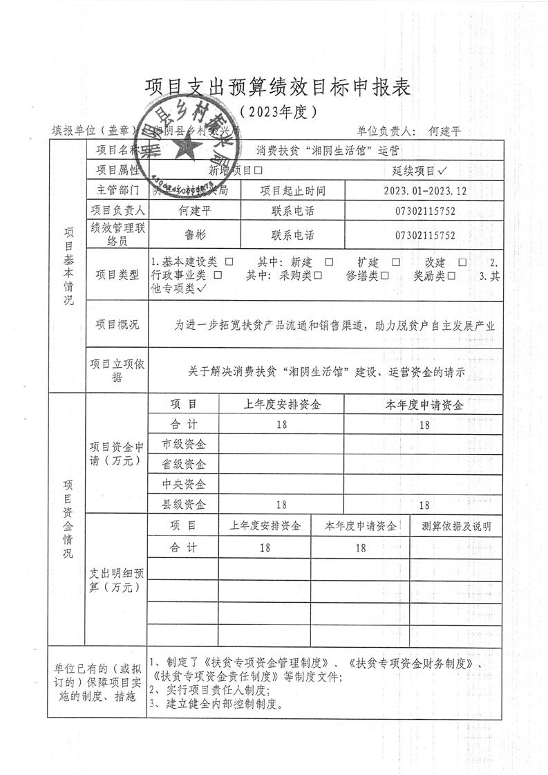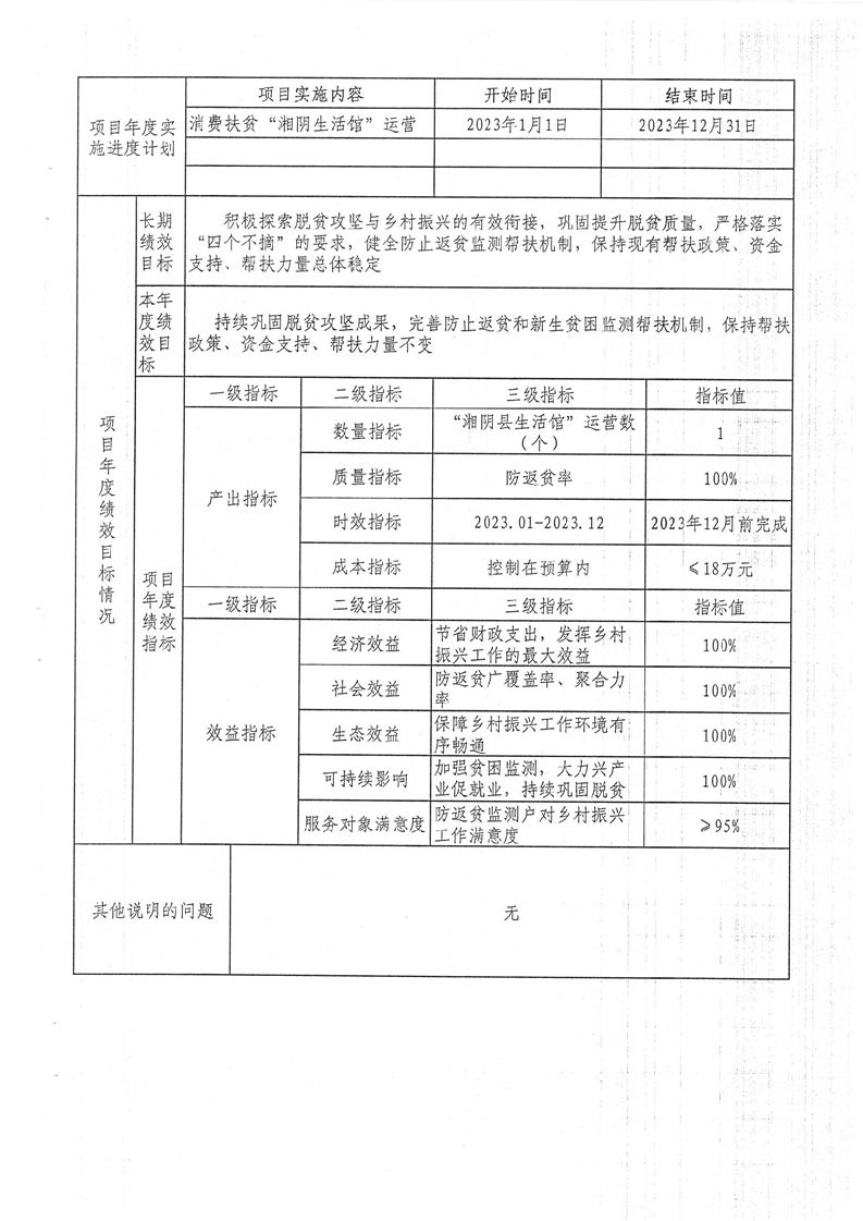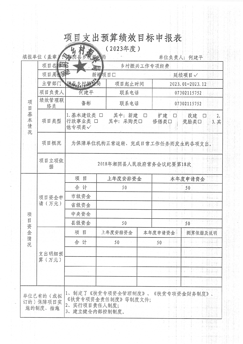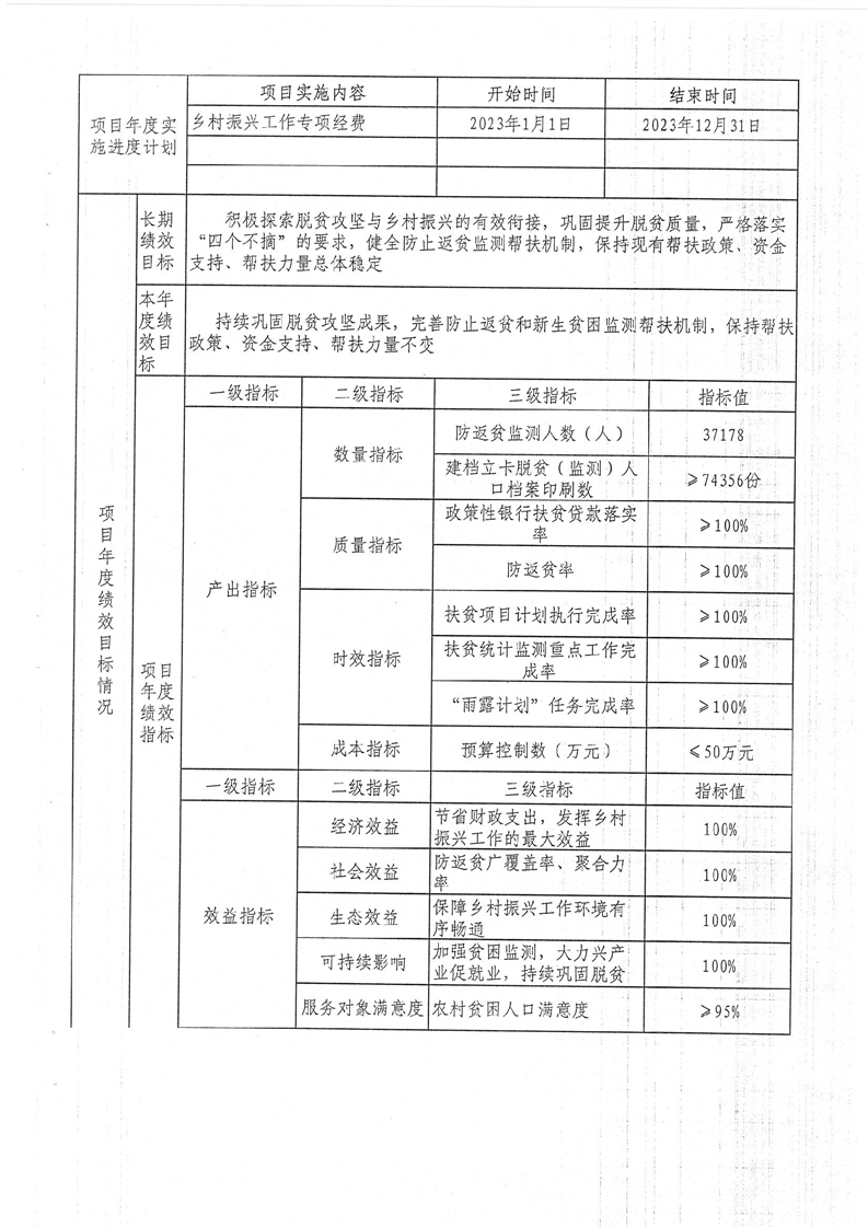 2023年度-湘阴县乡村振兴局-项目支出预算绩效目标申报表