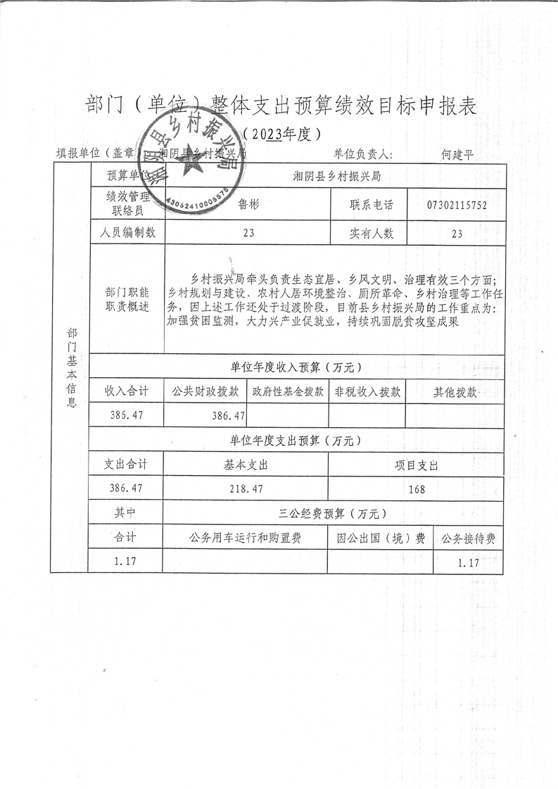 2023年度-湘阴县乡村振兴局-整体支出预算绩效目标申报表