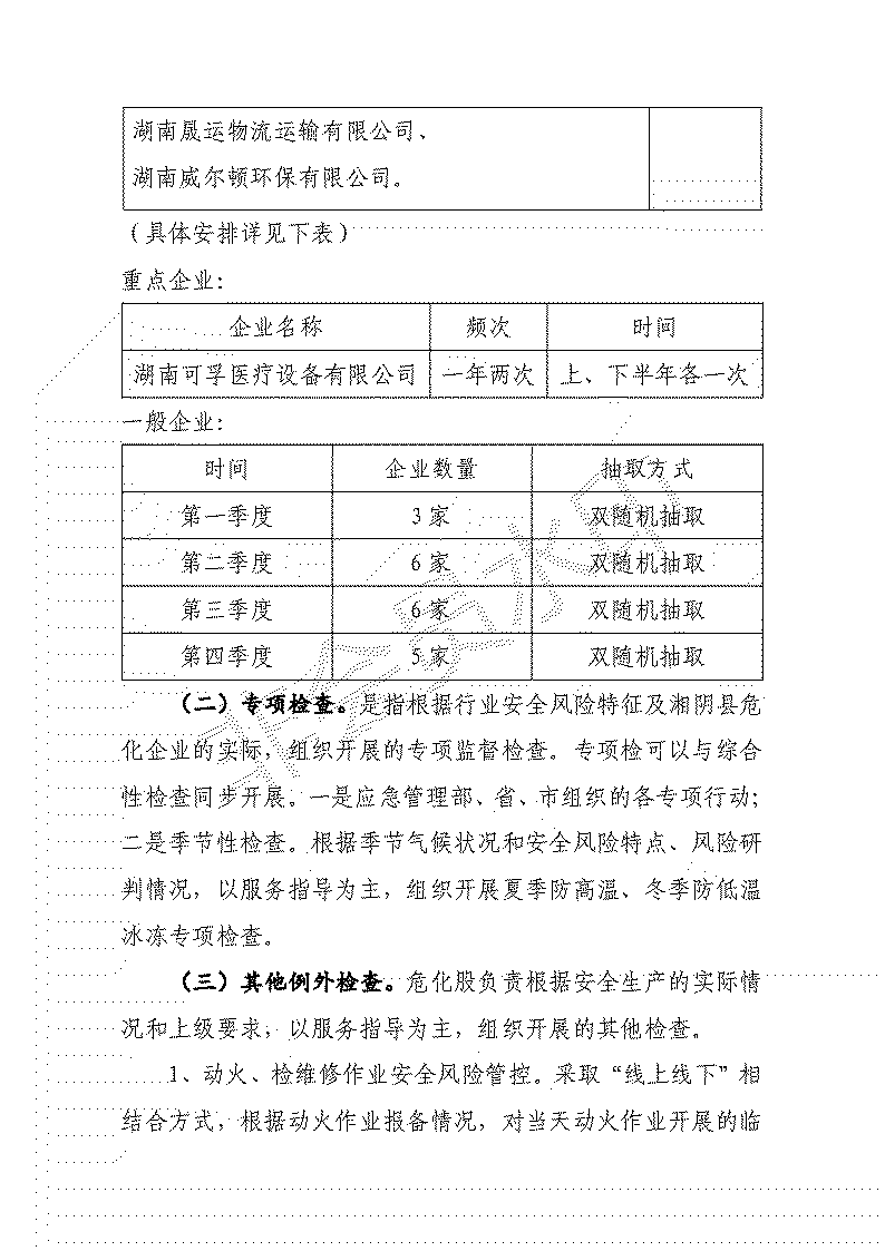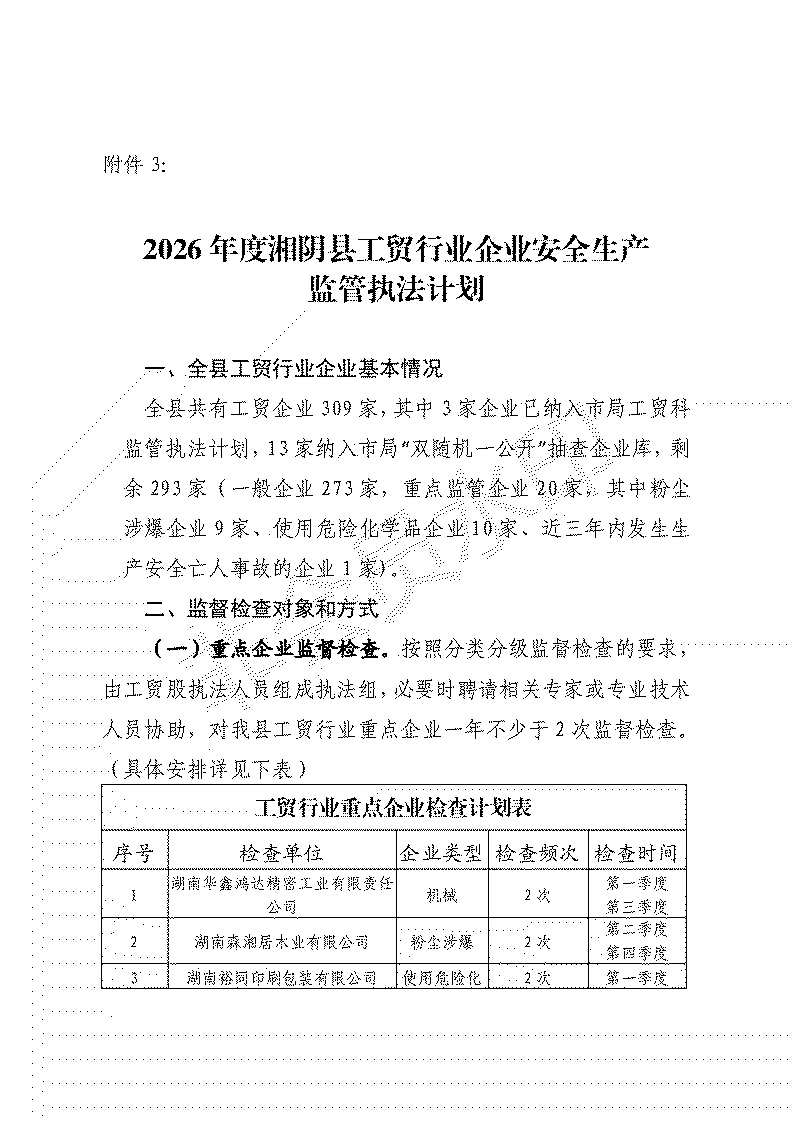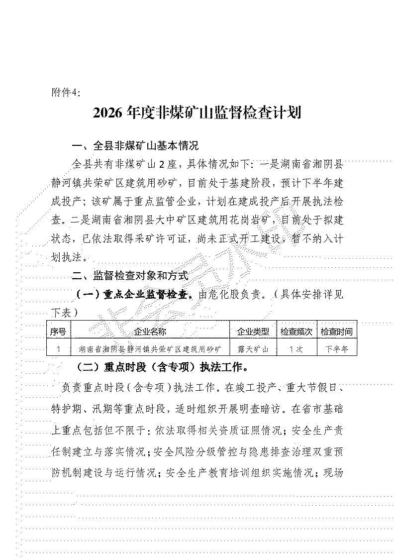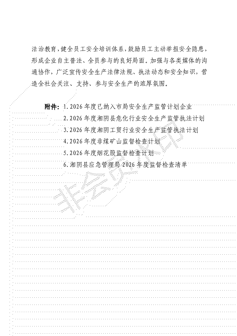 湘阴县应急局2026年度安全生产监督检查计划