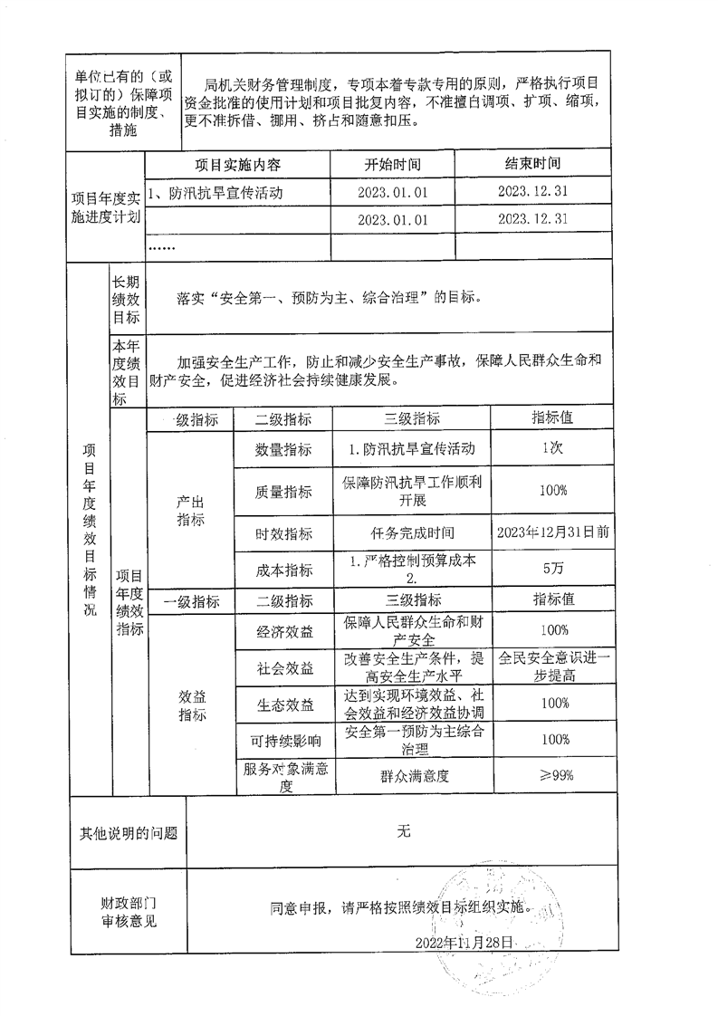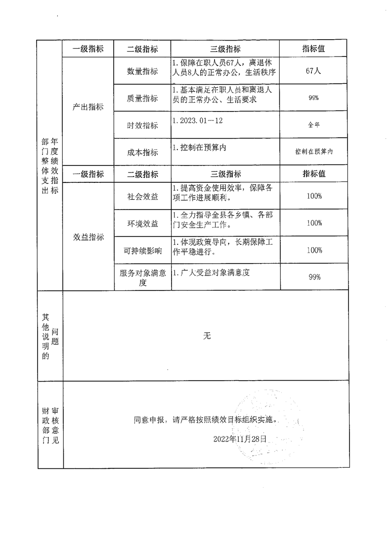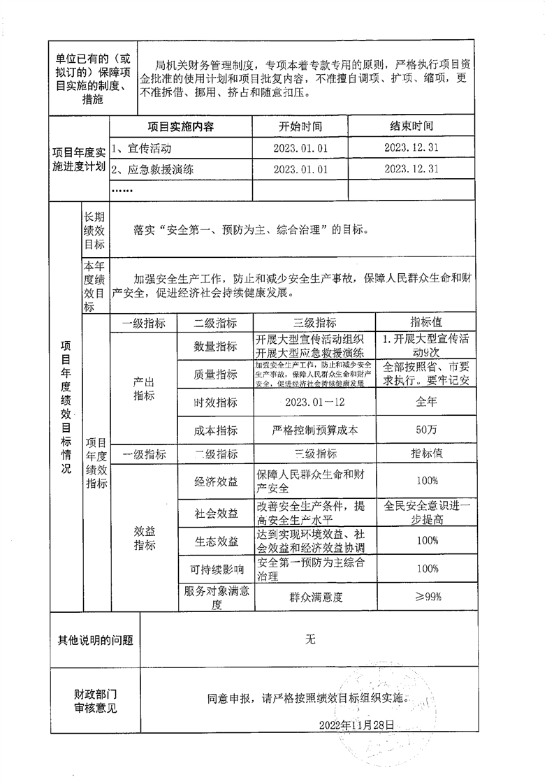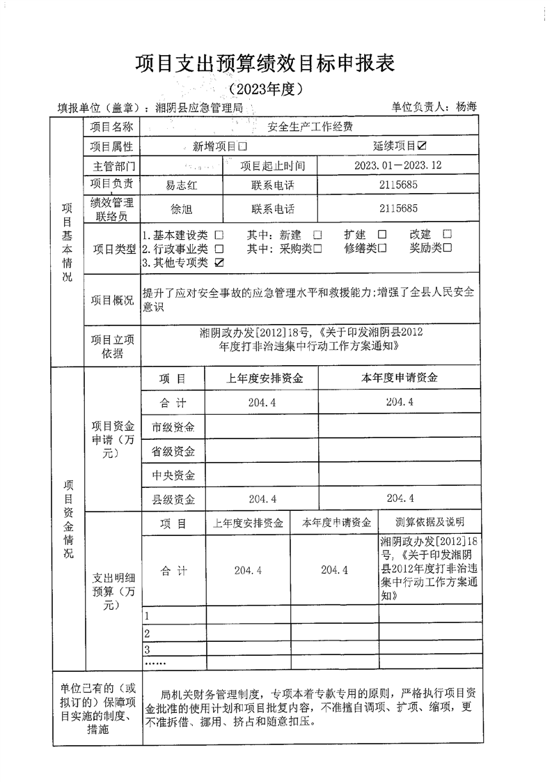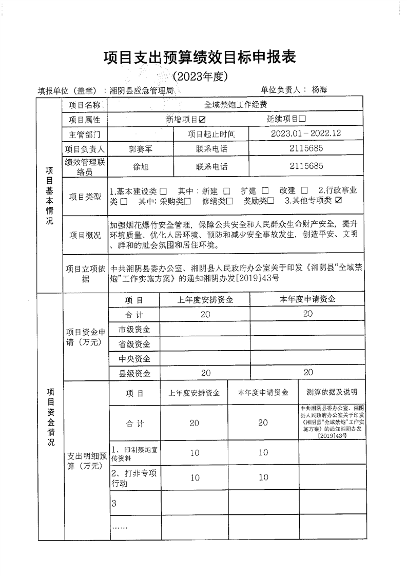 2023年度-湘阴县应急管理局-整体和项目支出预算绩效目标申报表