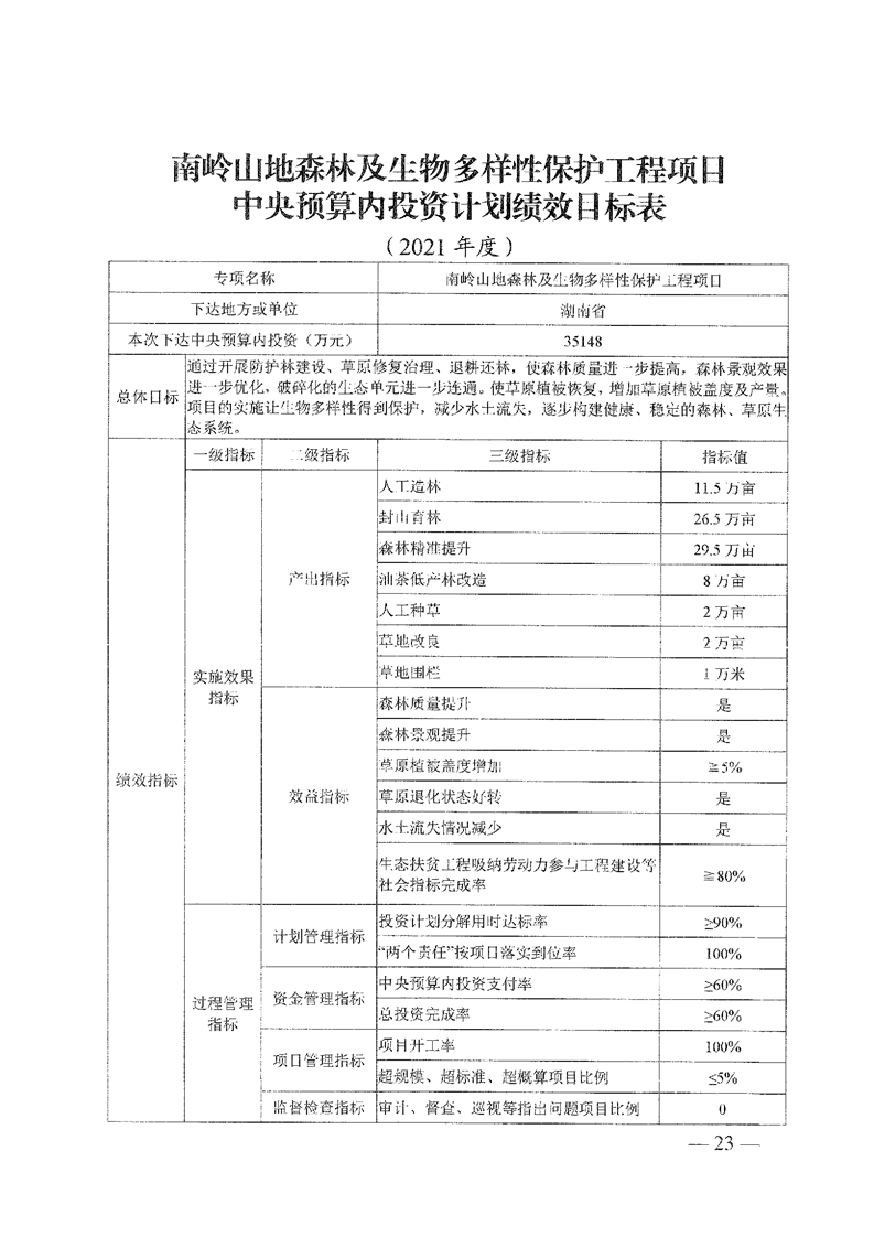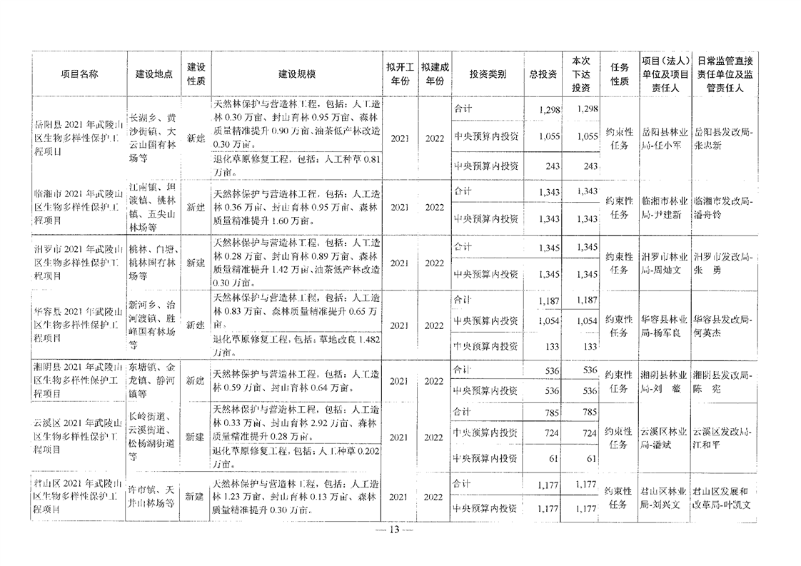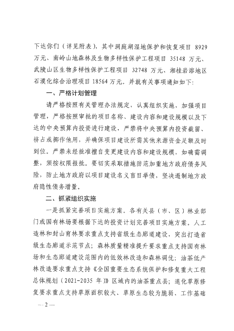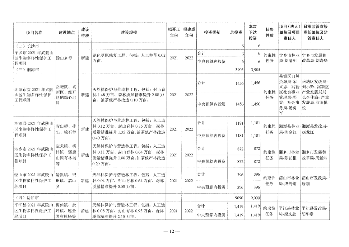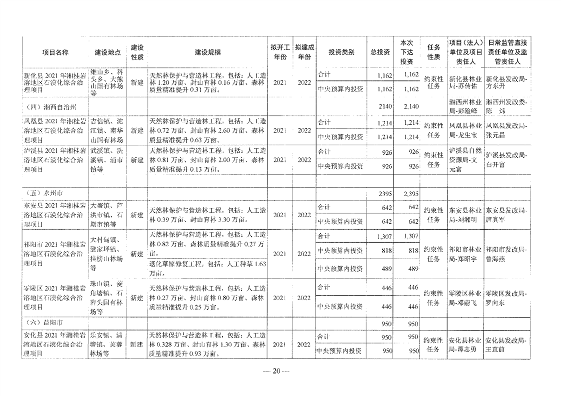 关于分解下达重点区域生态保护和修复专项2021年中央预算内投资计划的通知(湘发改投资[2021]545号)