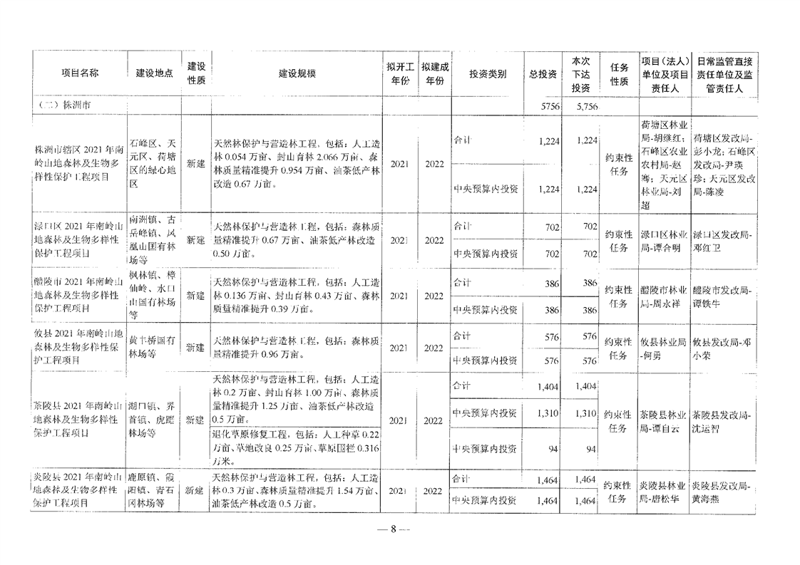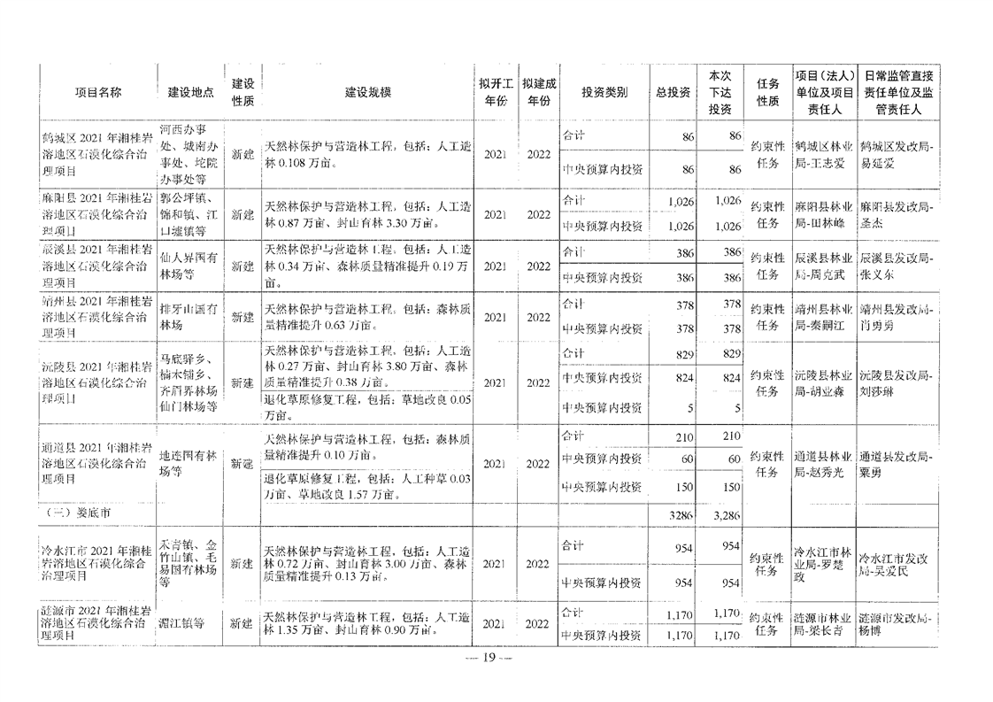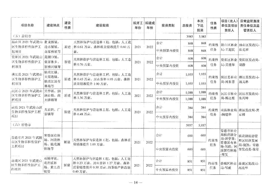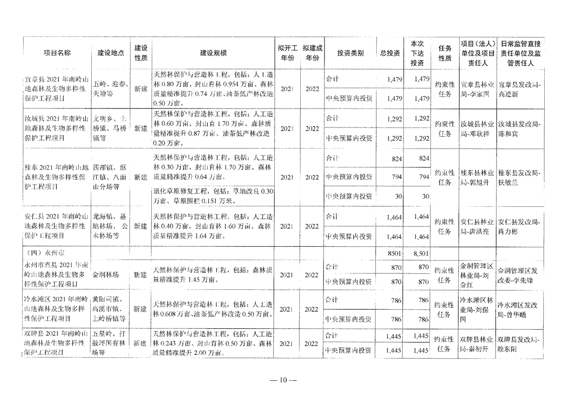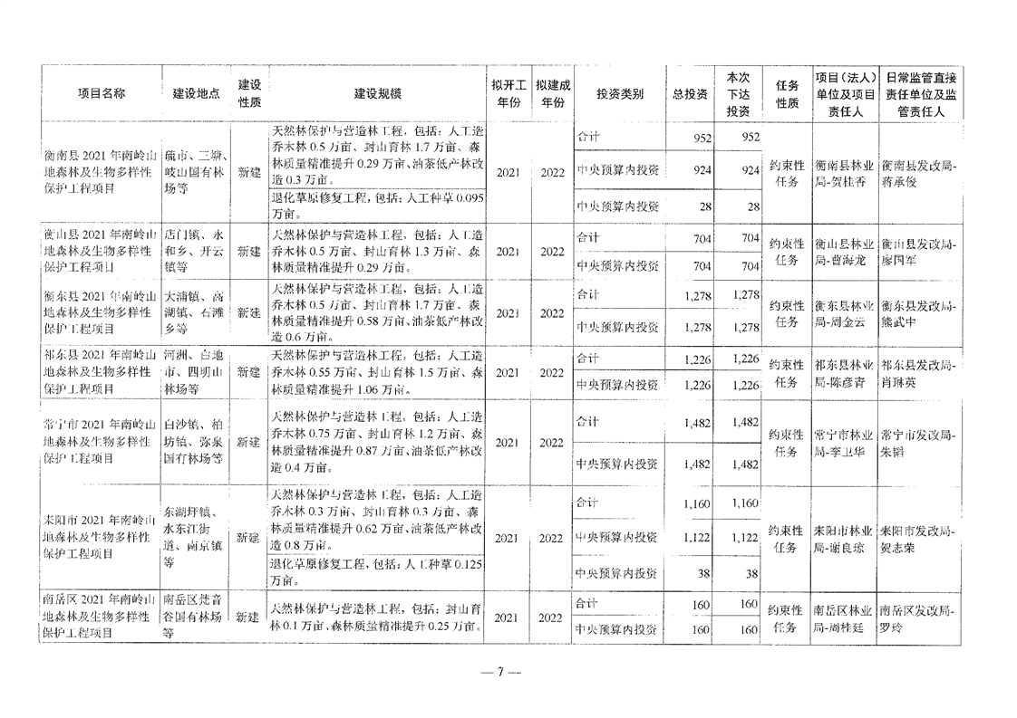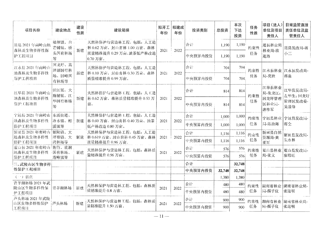 关于分解下达重点区域生态保护和修复专项2021年中央预算内投资计划的通知(湘发改投资[2021]545号)