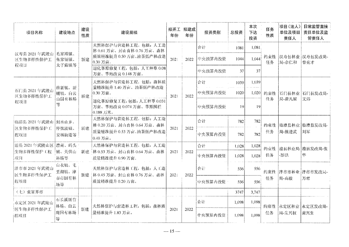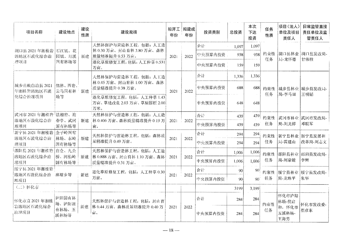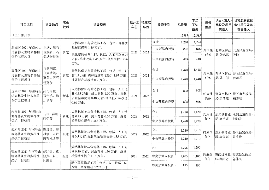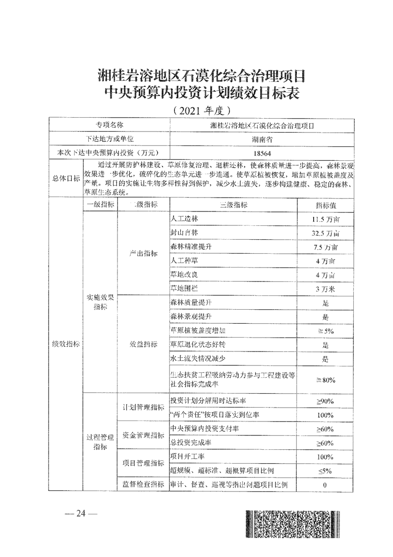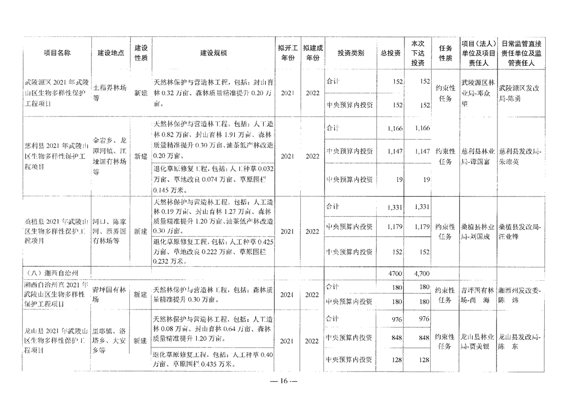 关于分解下达重点区域生态保护和修复专项2021年中央预算内投资计划的通知(湘发改投资[2021]545号)