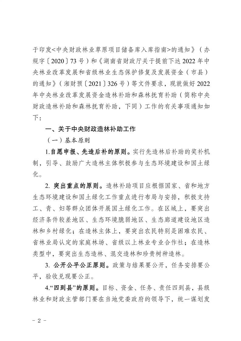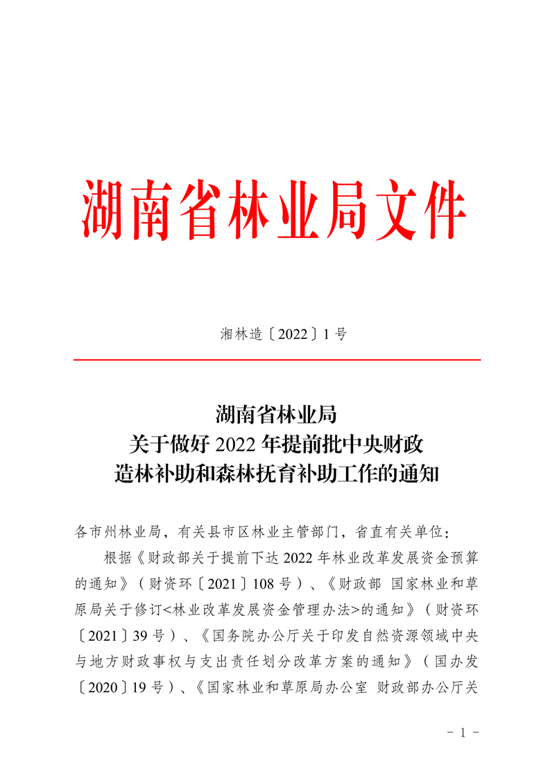 湖南省林业局关于做好2022年提前批中央财政造林补助和森林抚育补助工作的通知