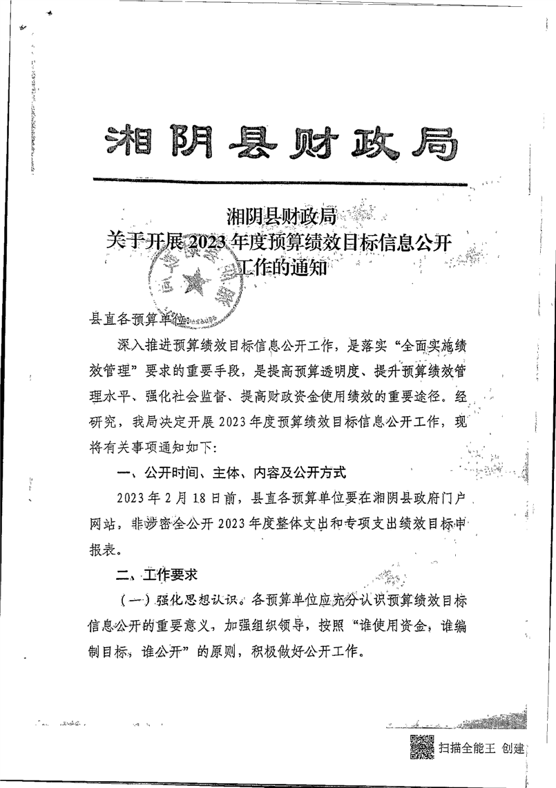 关于开展2023年度预算绩效目标信息公开工作的通知申报表