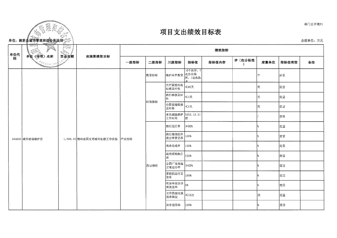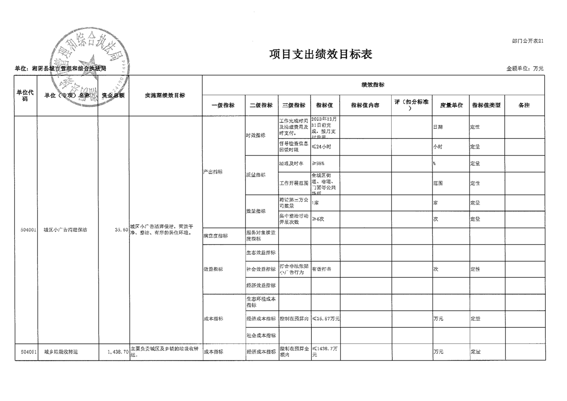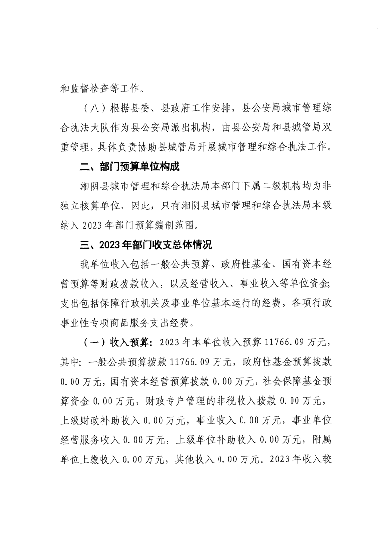 湘阴县城市管理和综合执法局-2023年度-部门预算公开