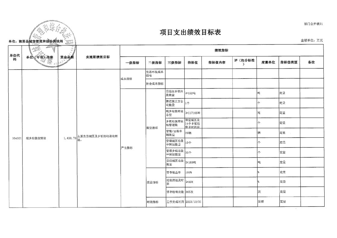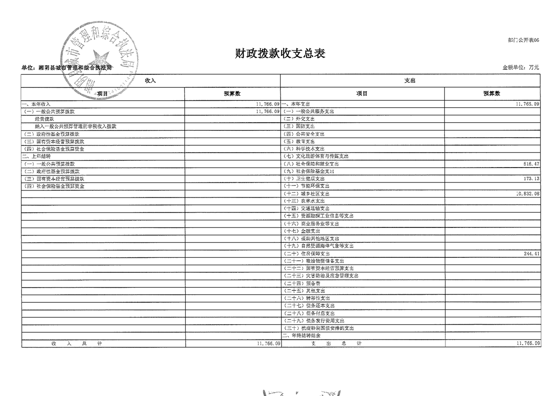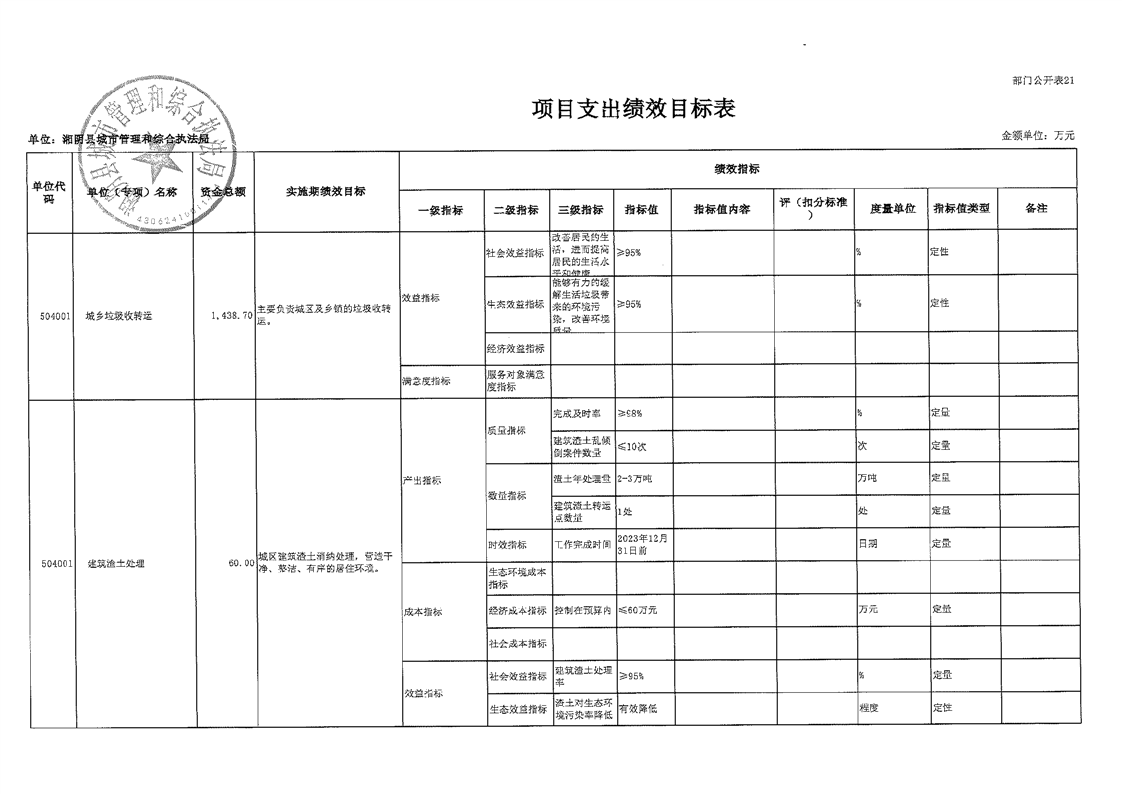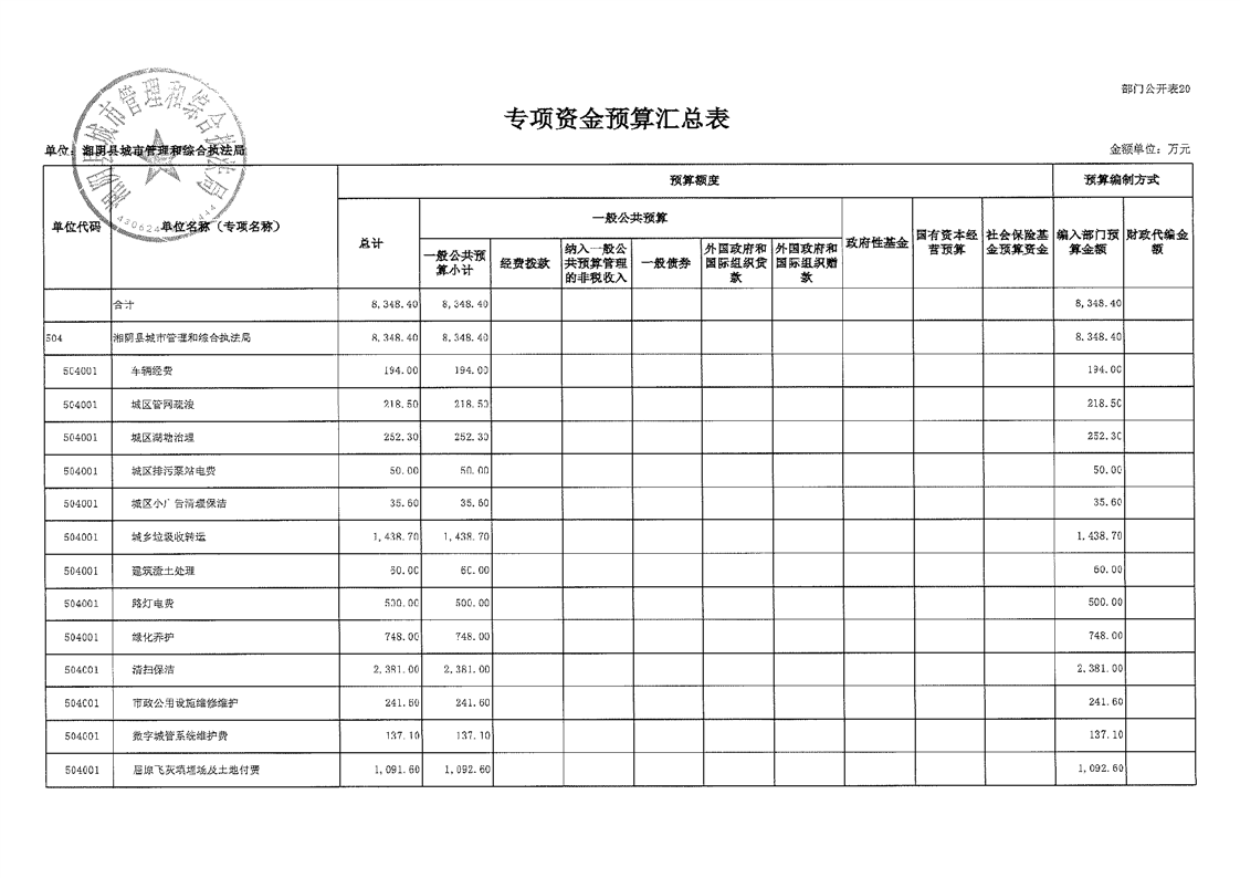 湘阴县城市管理和综合执法局-2023年度-部门预算公开