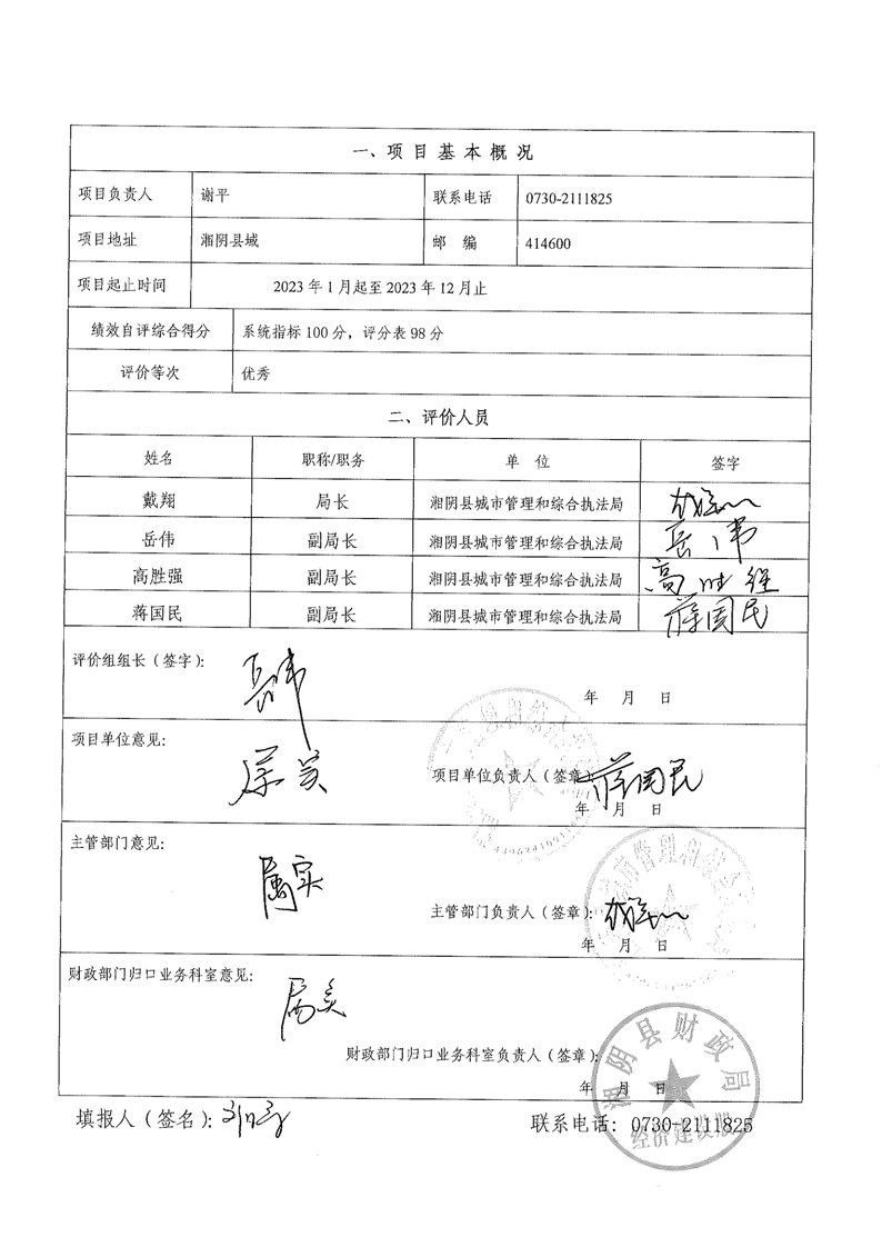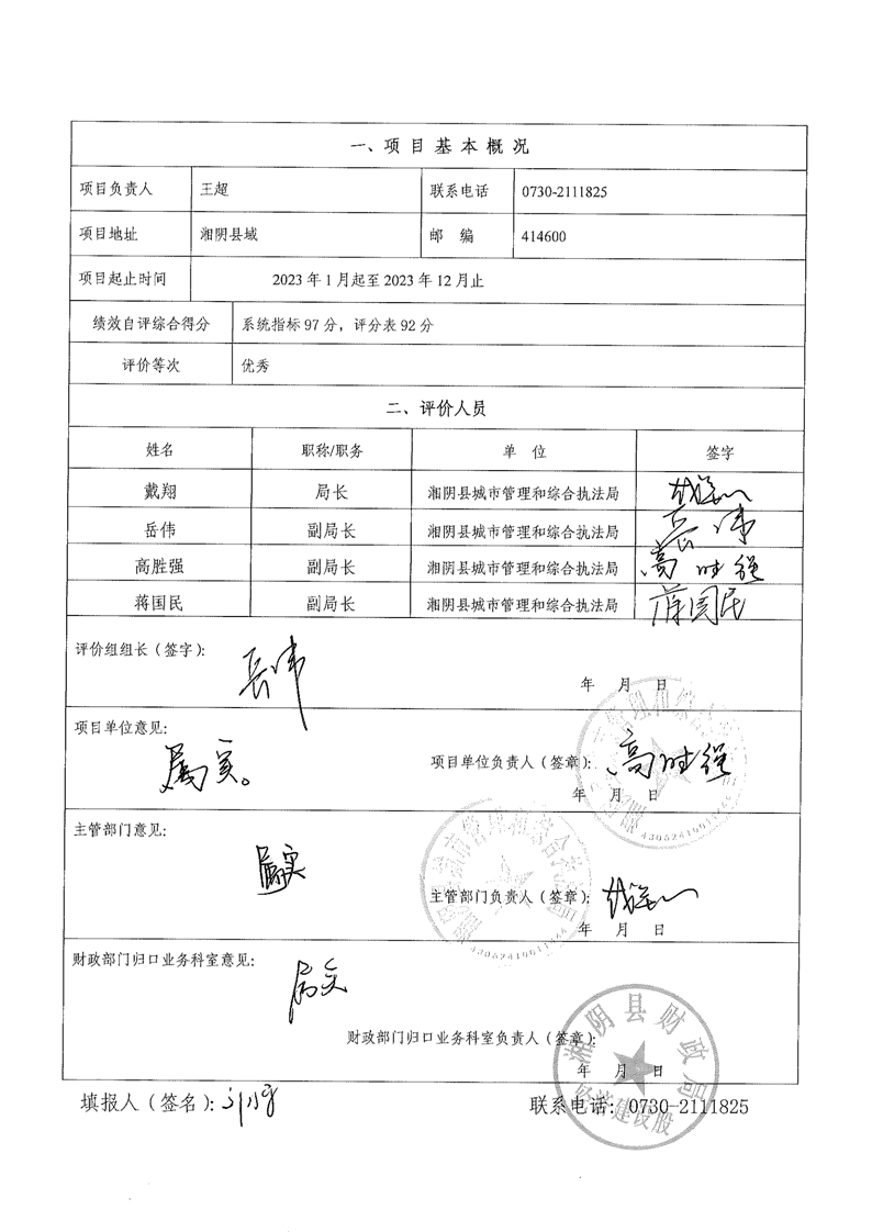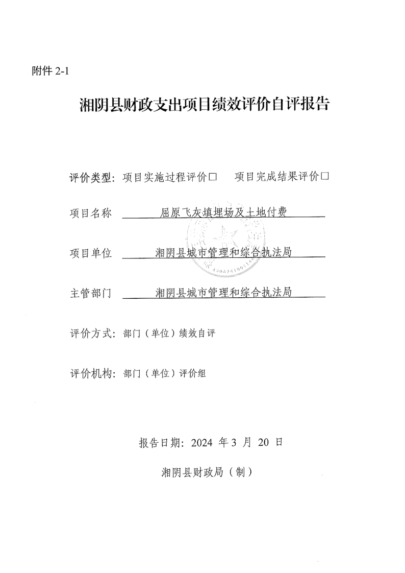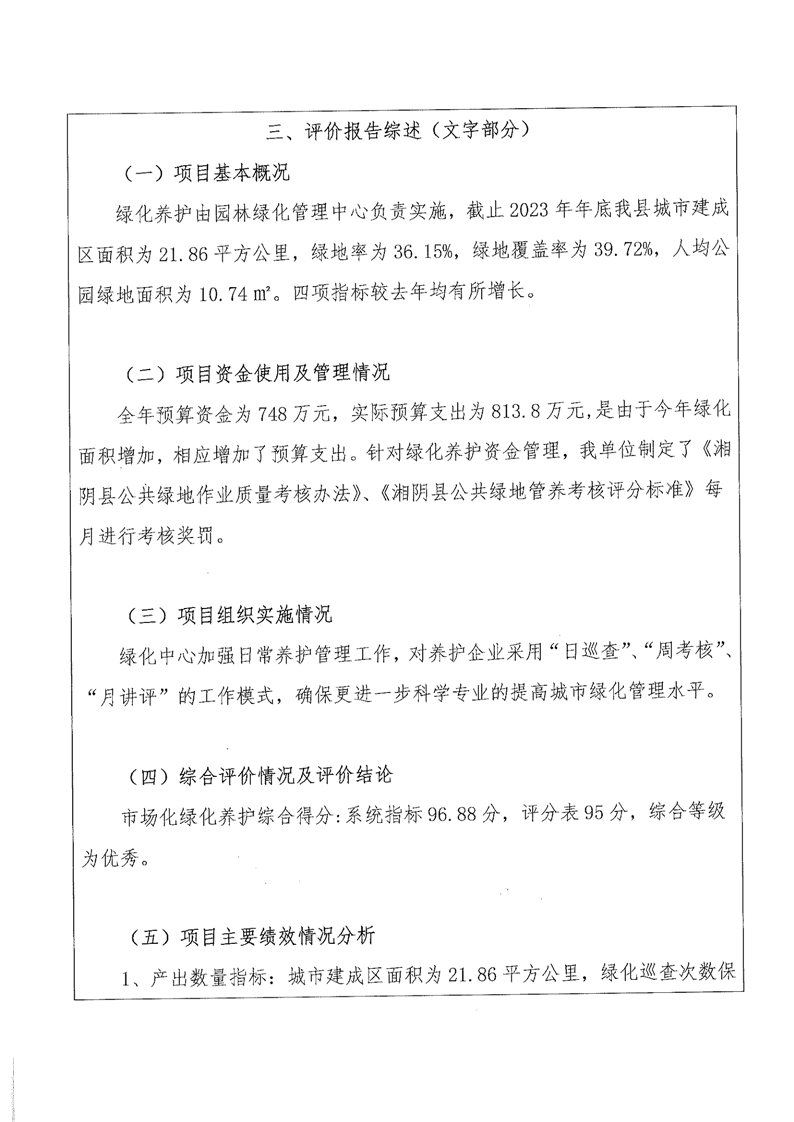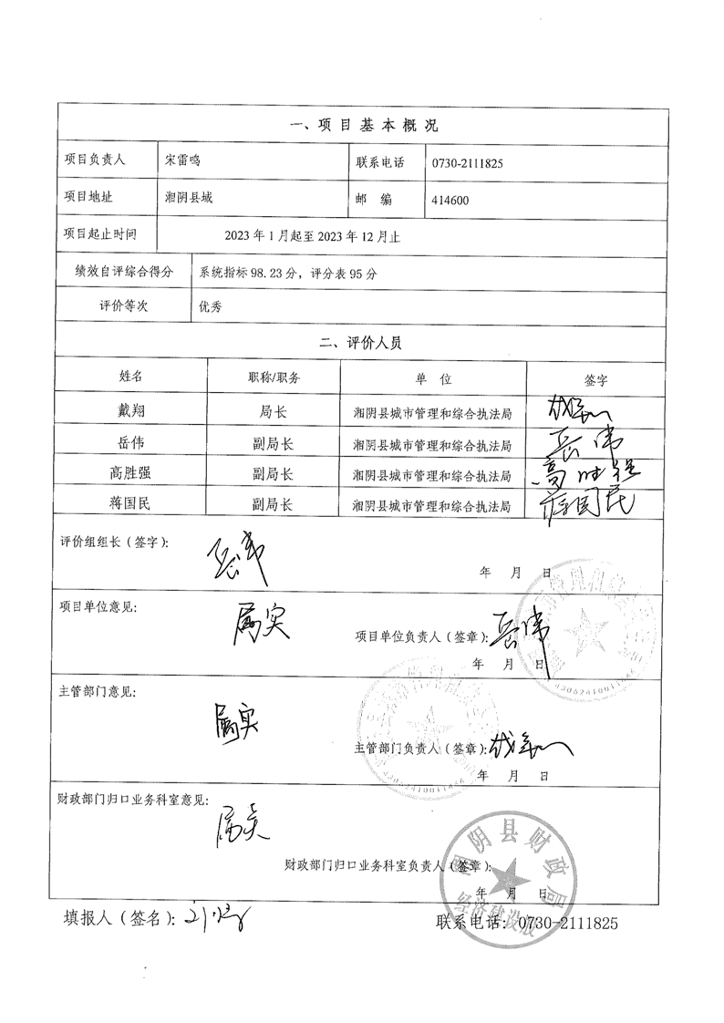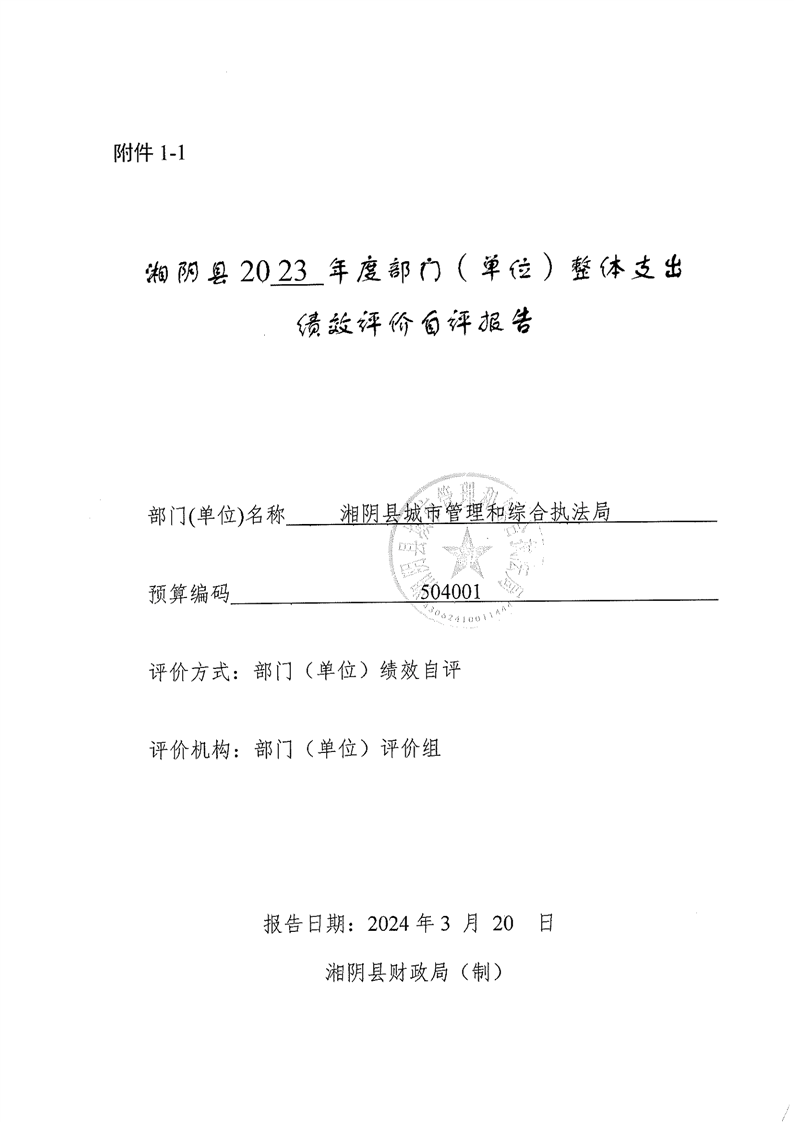 2023年-湘阴县城市管理和综合执法局-财政预算资金绩效自评公开