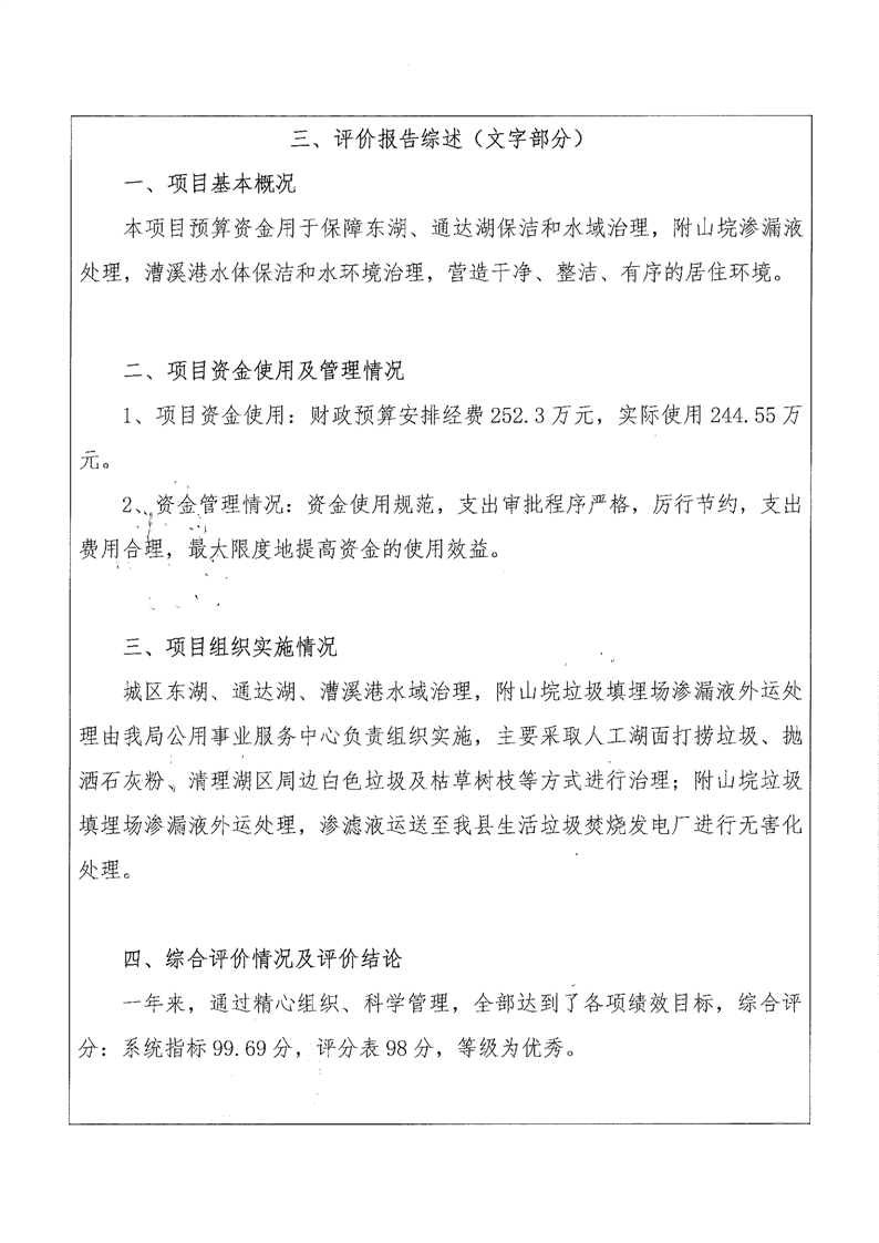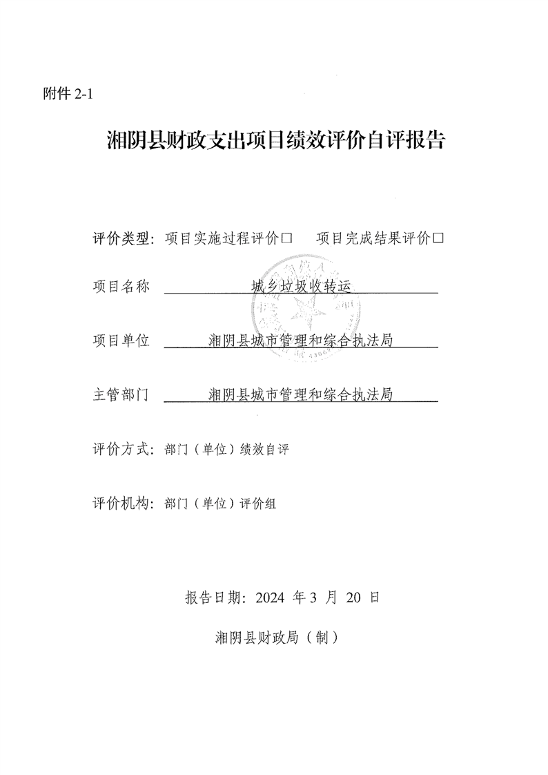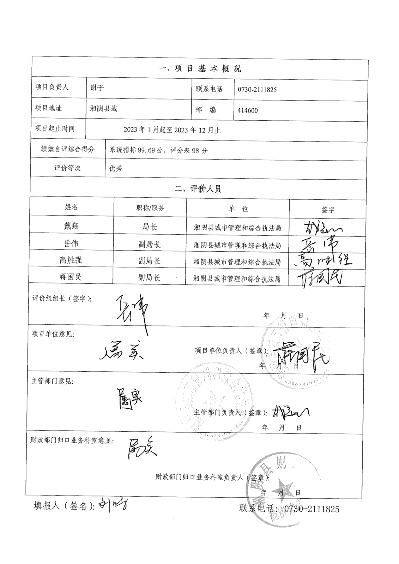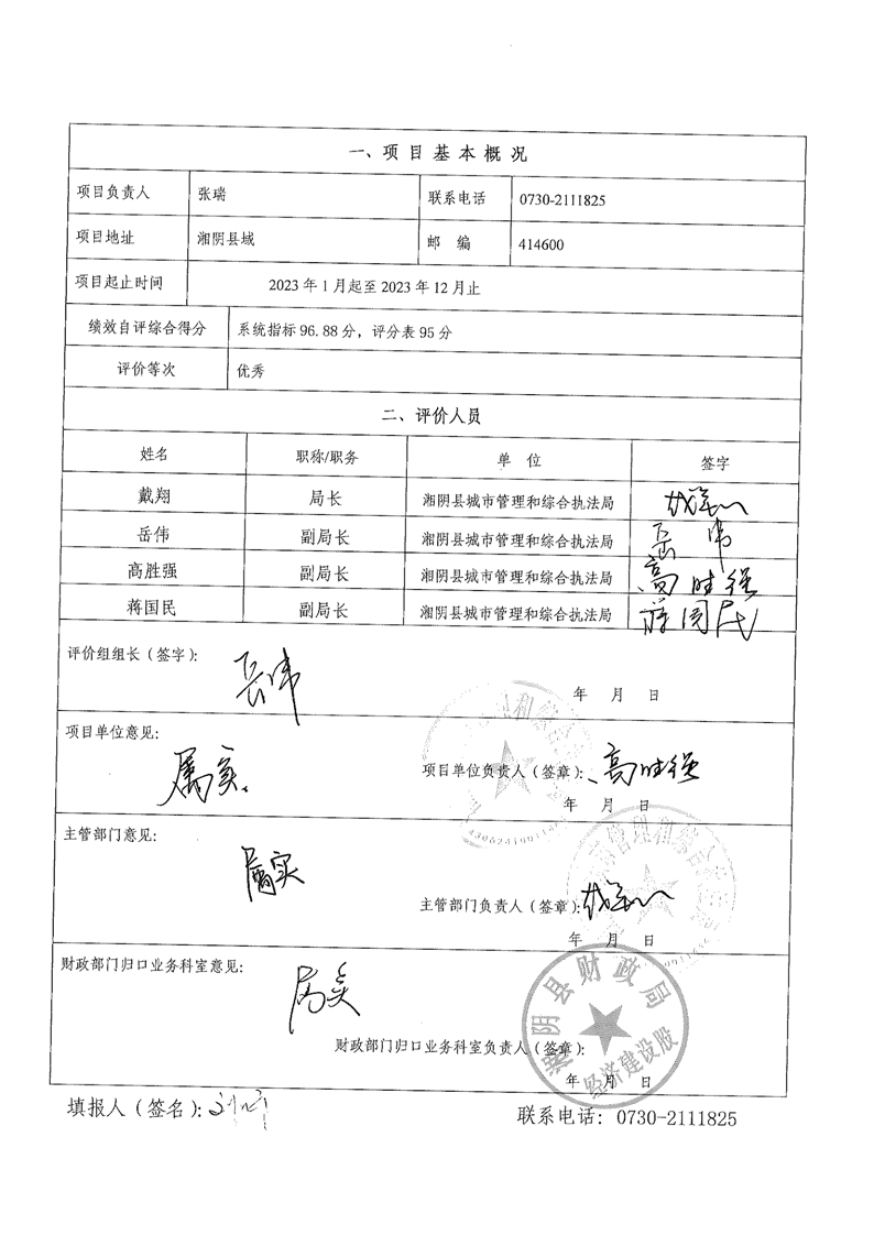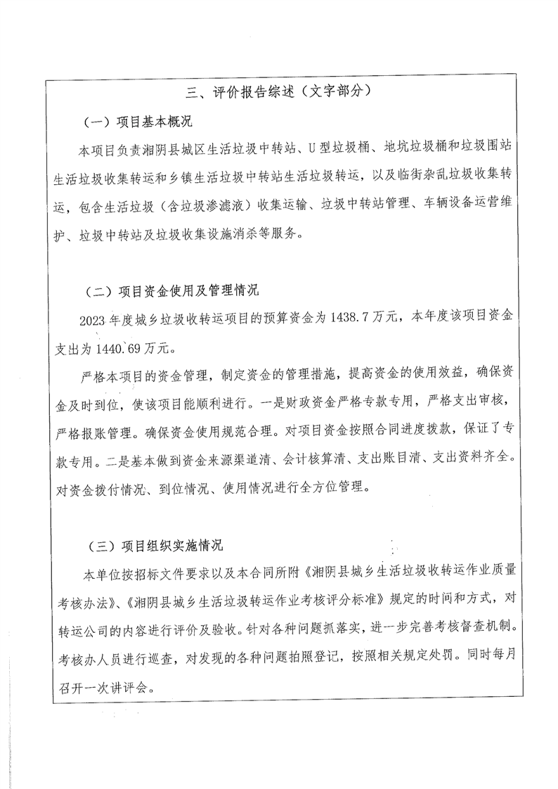 2023年-湘阴县城市管理和综合执法局-财政预算资金绩效自评公开