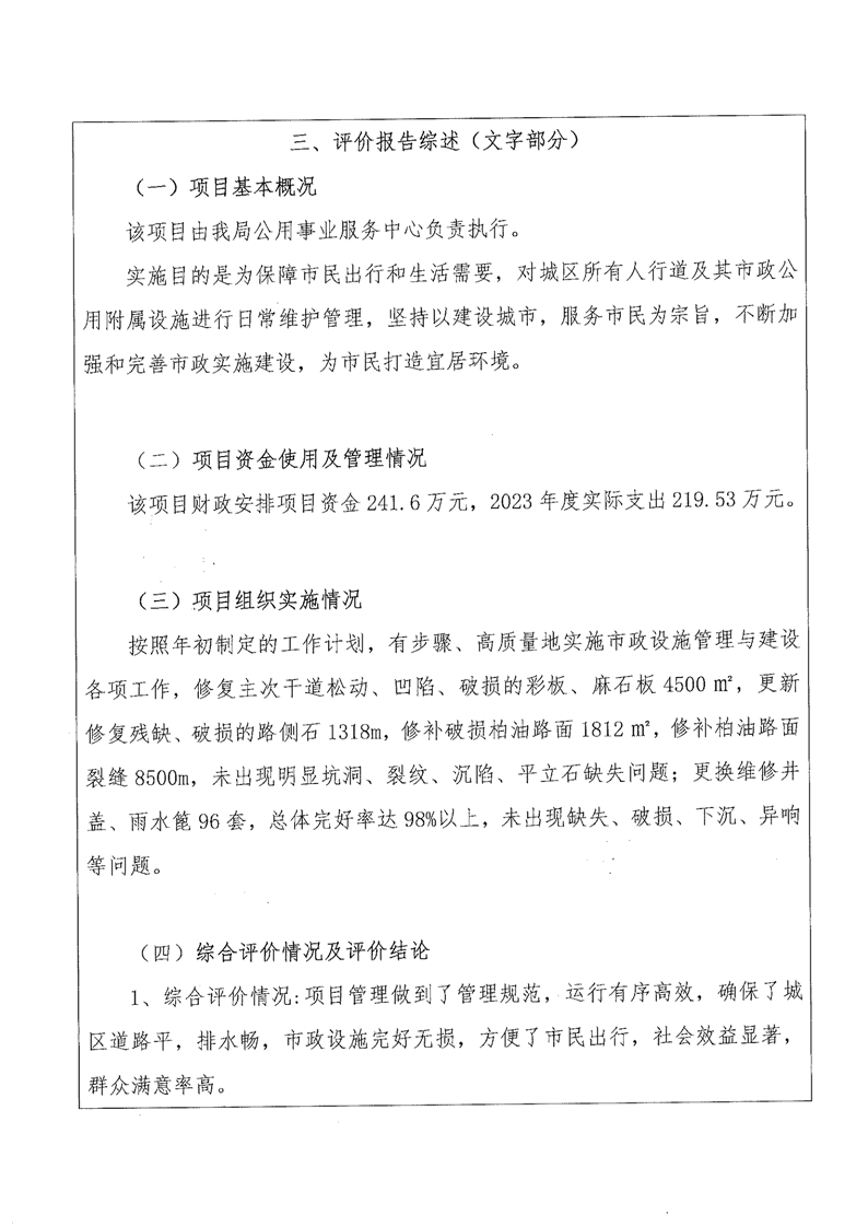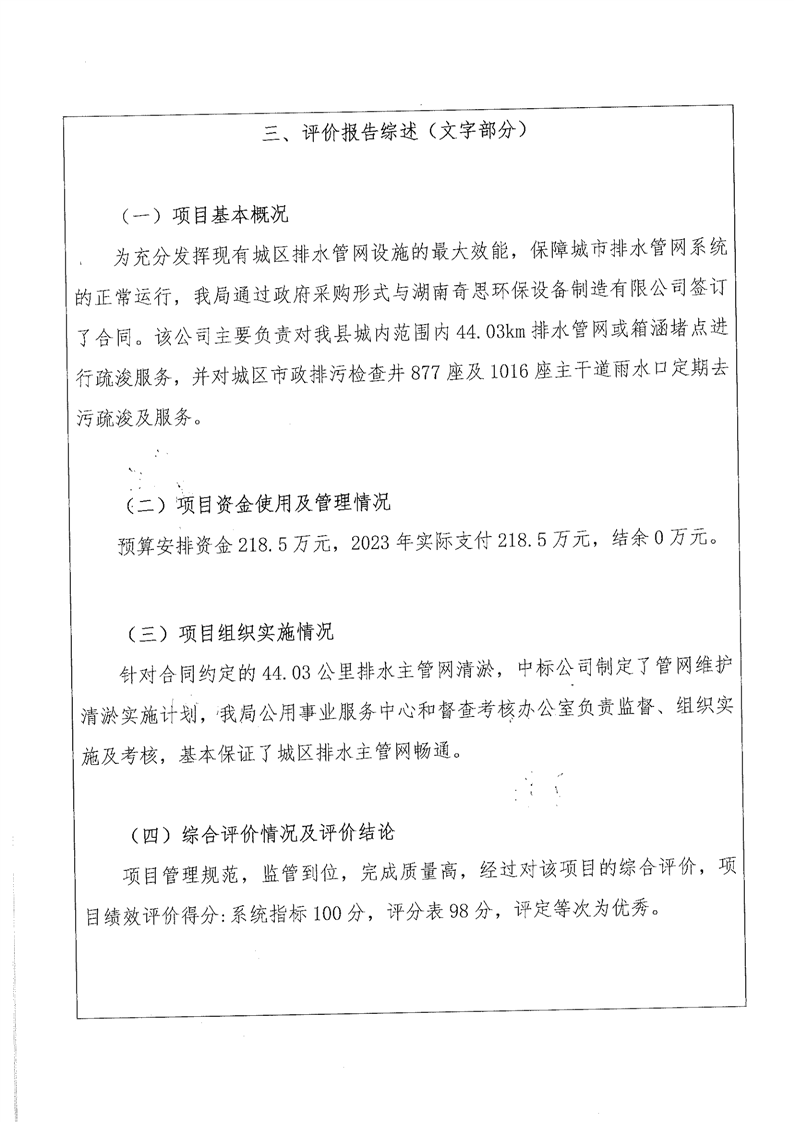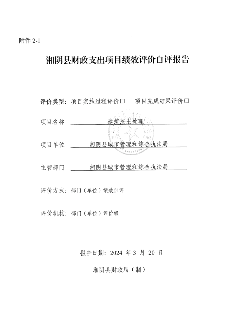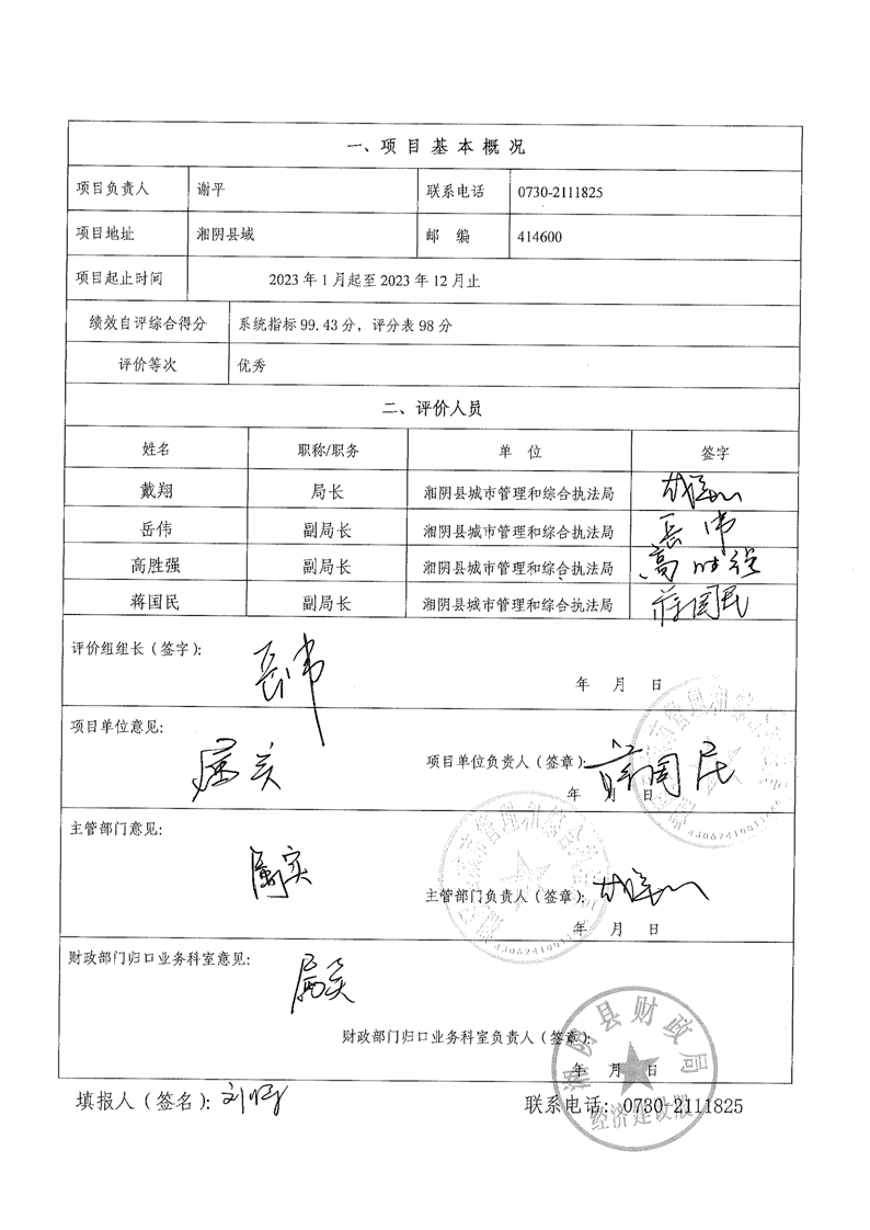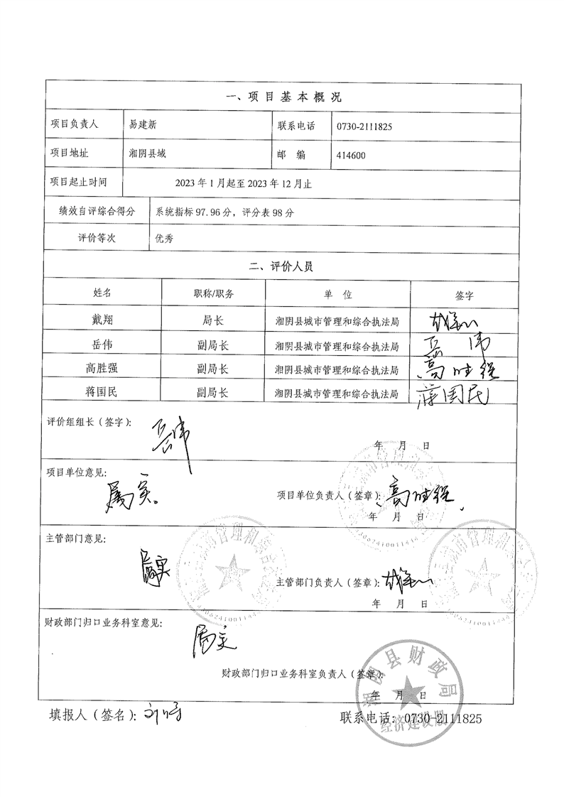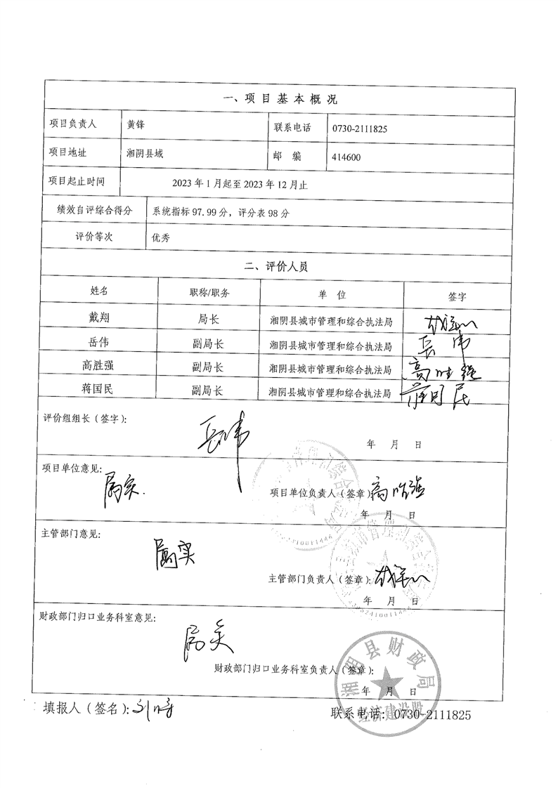2023年-湘阴县城市管理和综合执法局-财政预算资金绩效自评公开