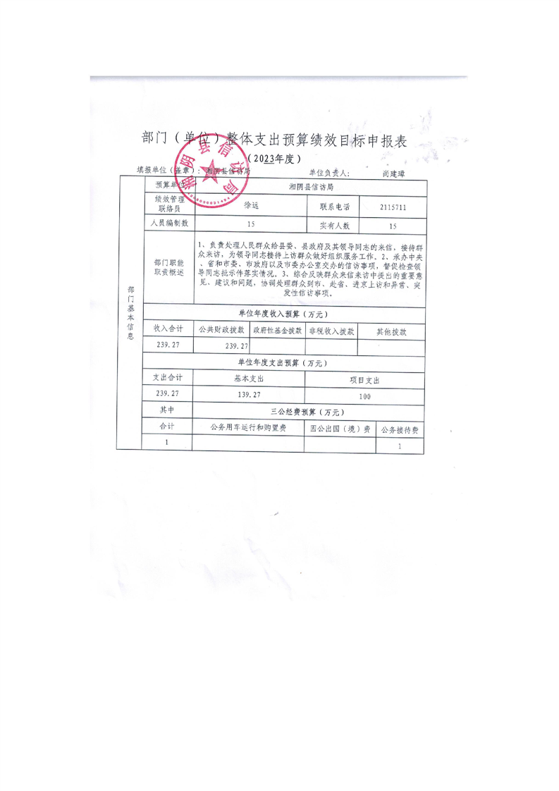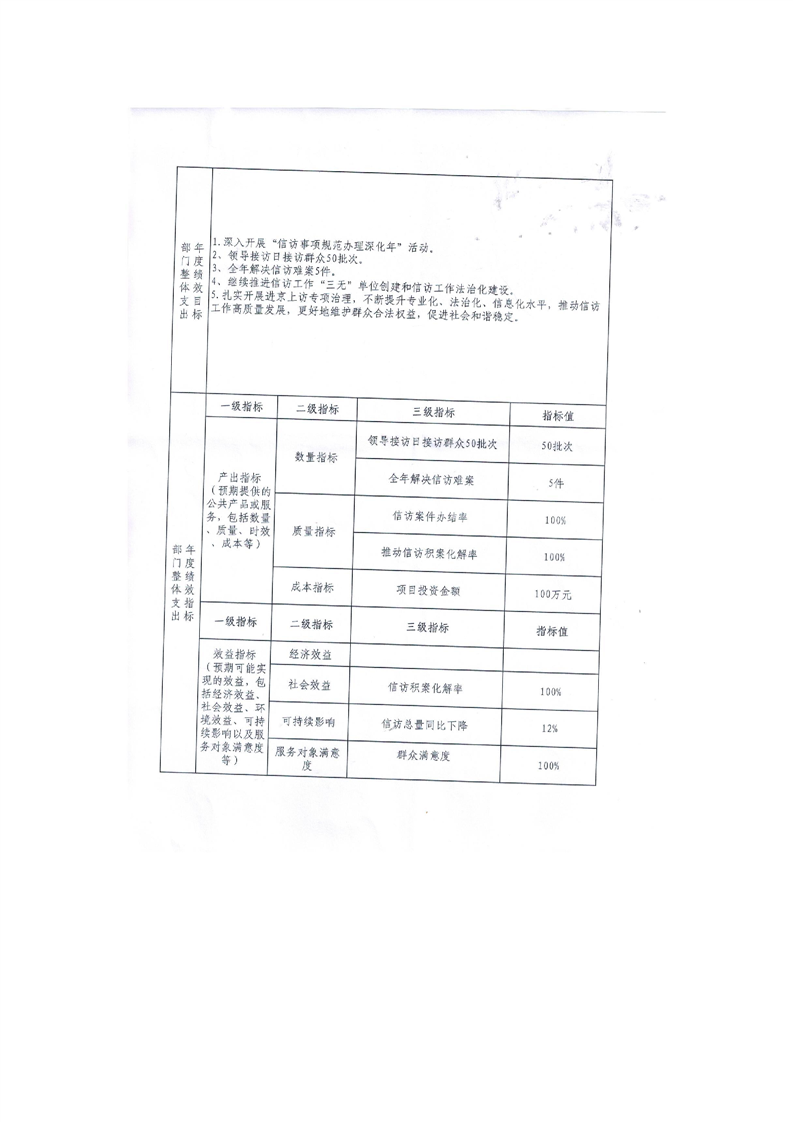2023年度信访局整体支出预算绩效目标申报表