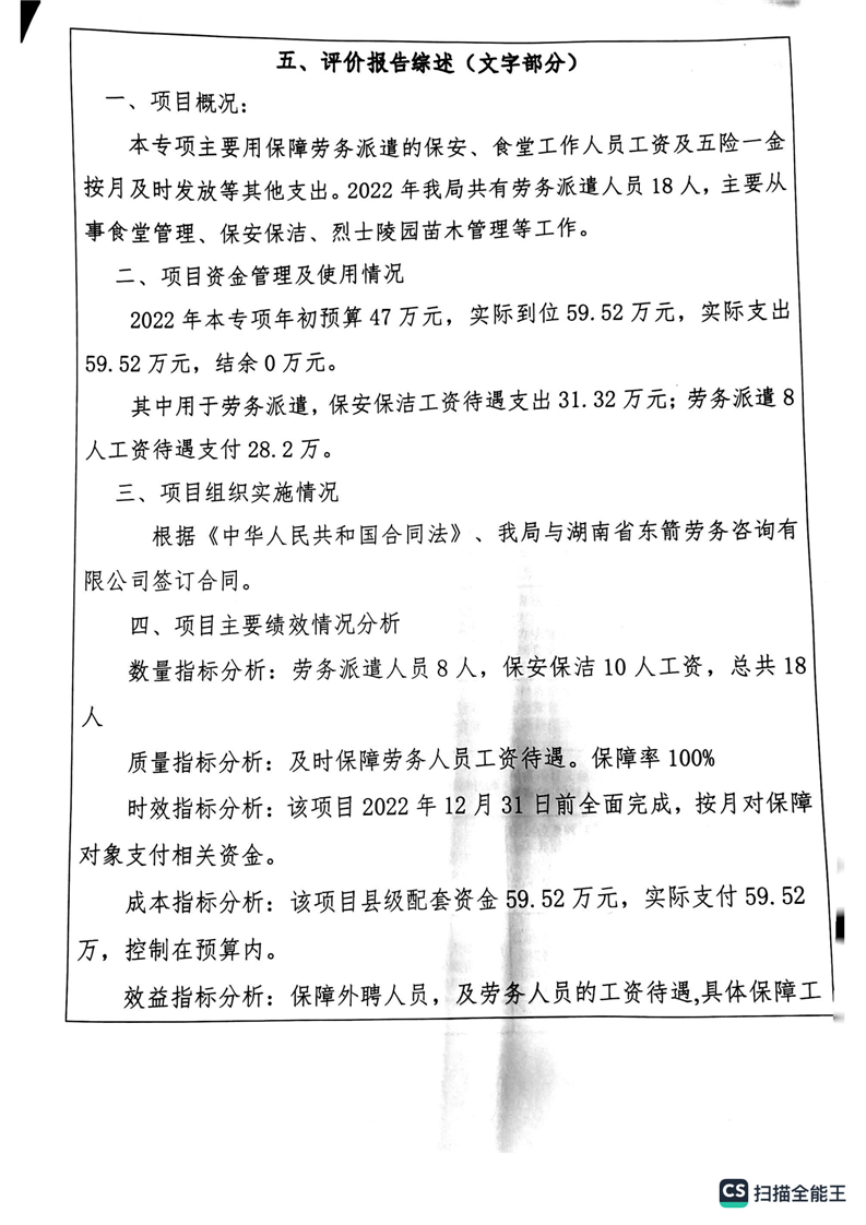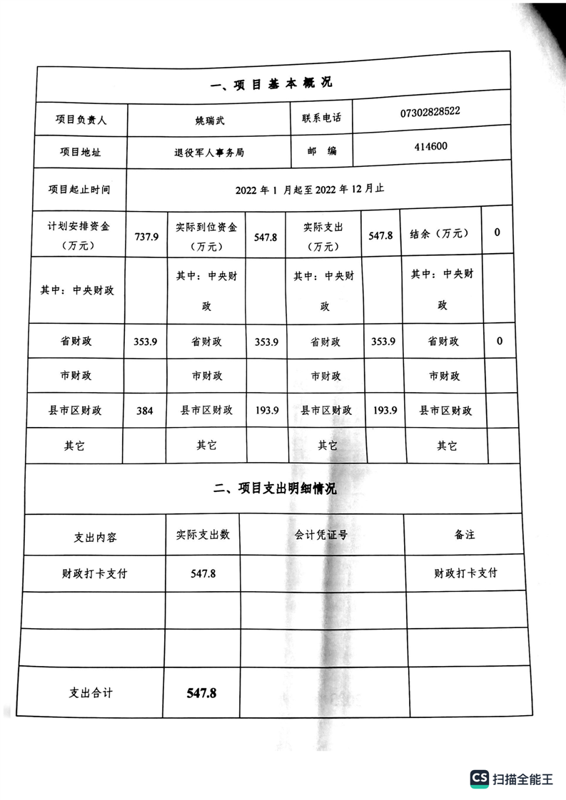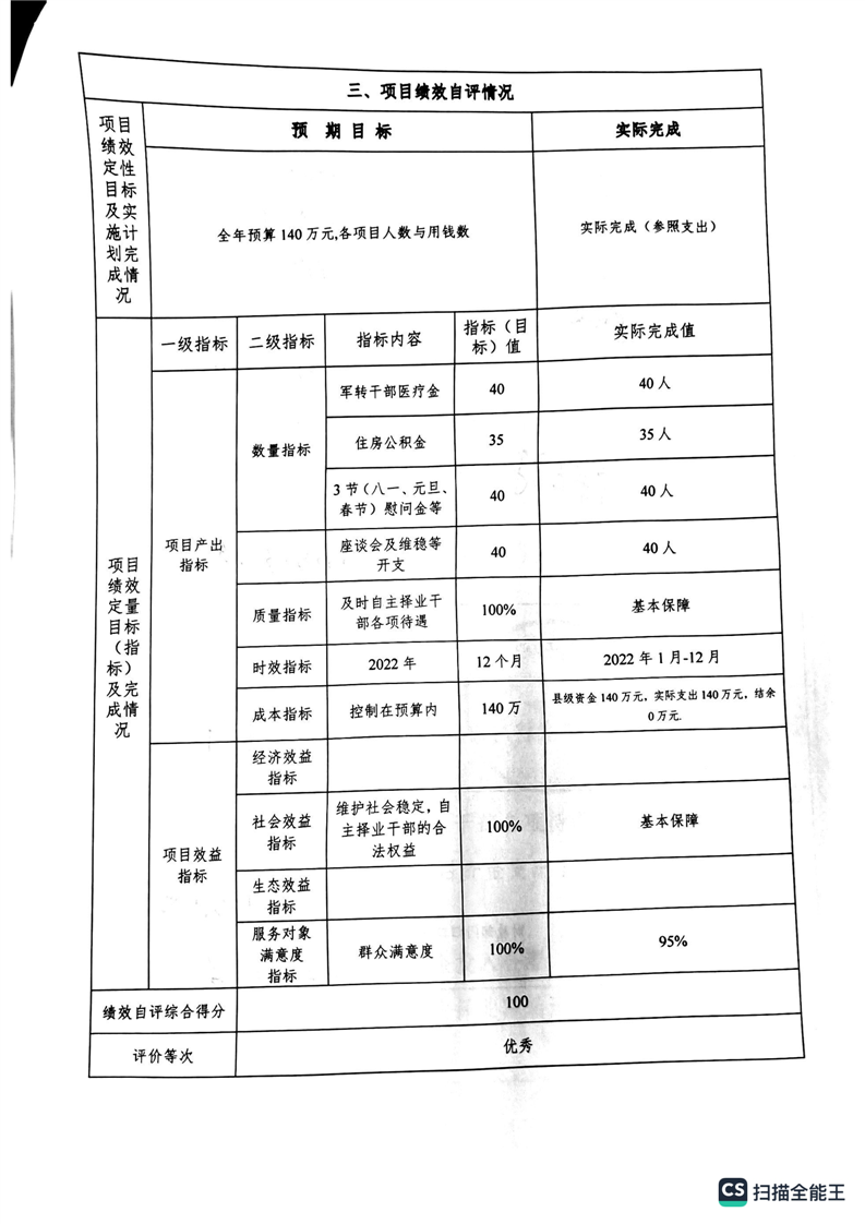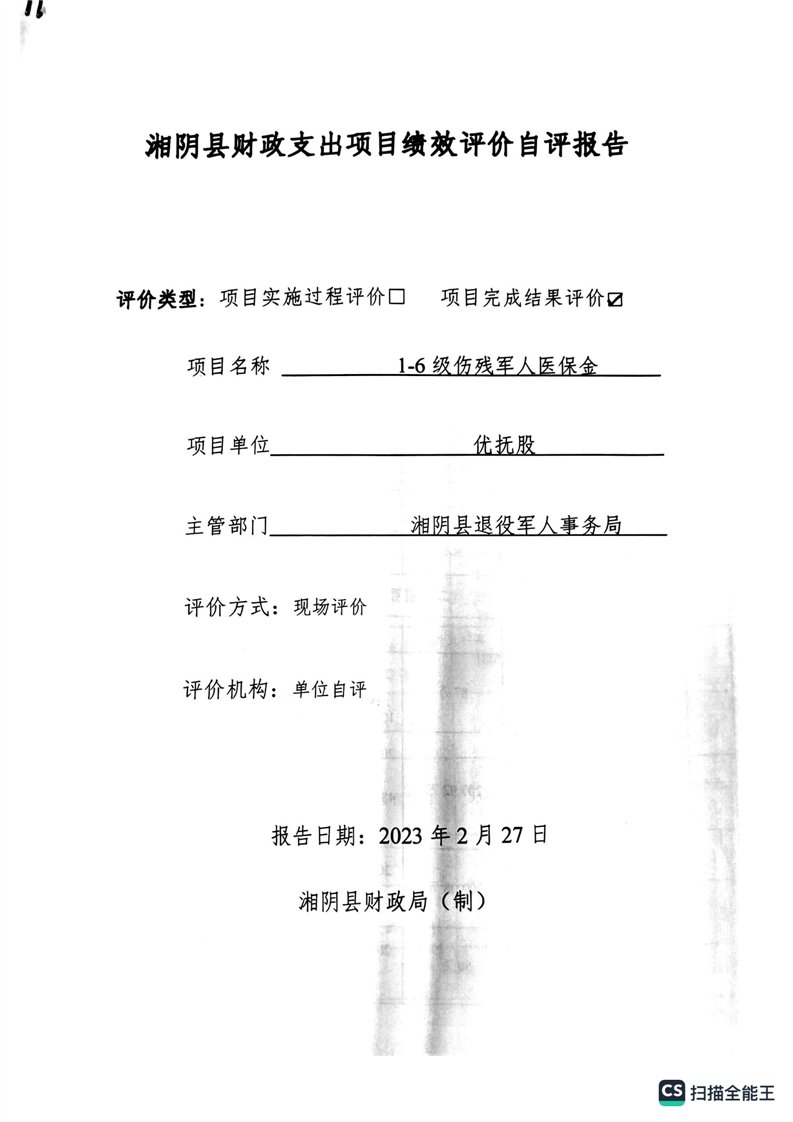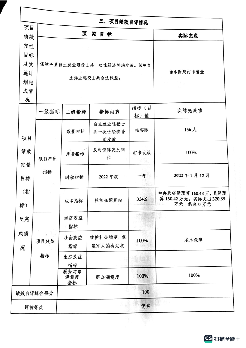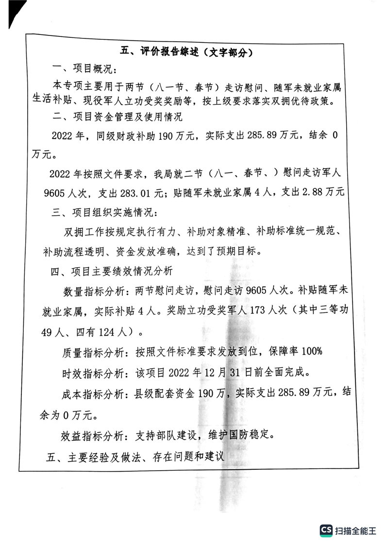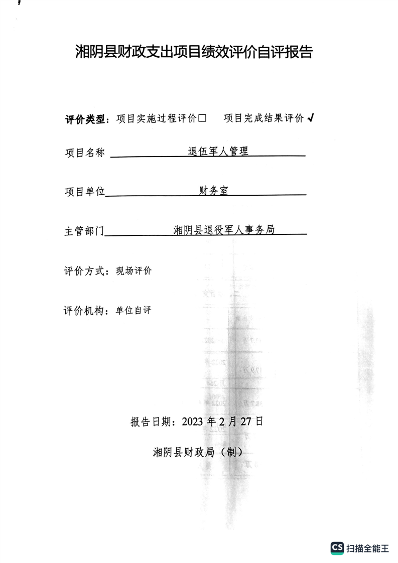 湘阴县退役军人事务局2022年度整体支出绩效自评报告