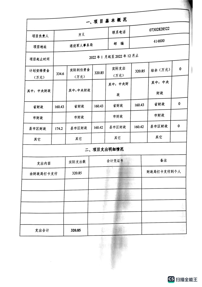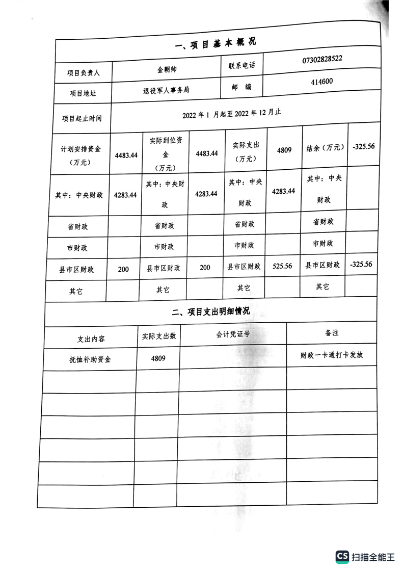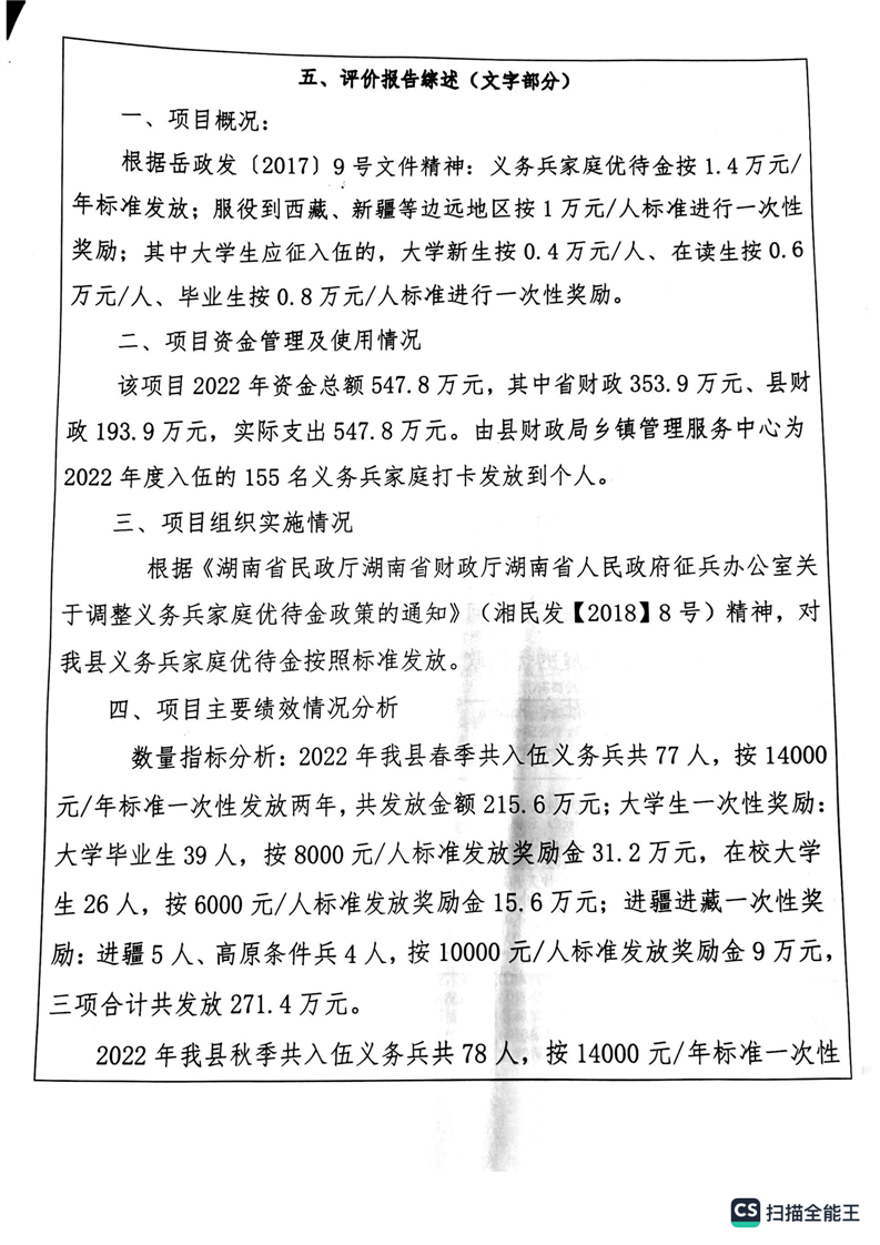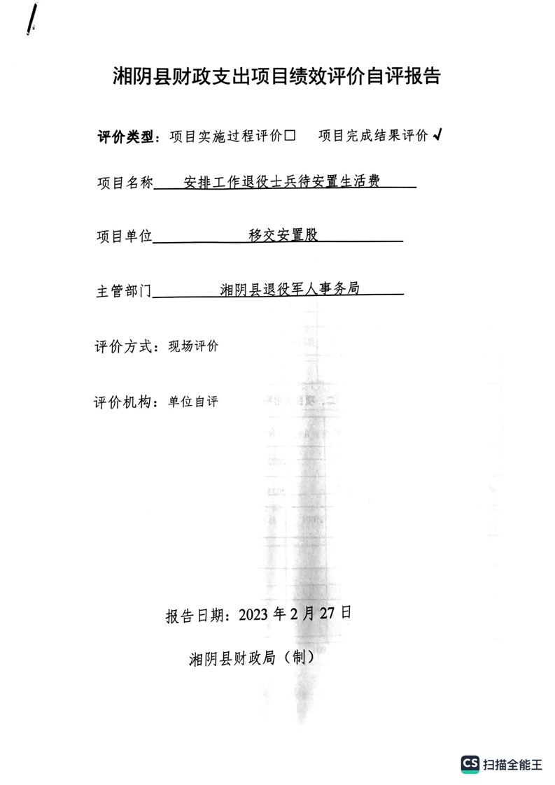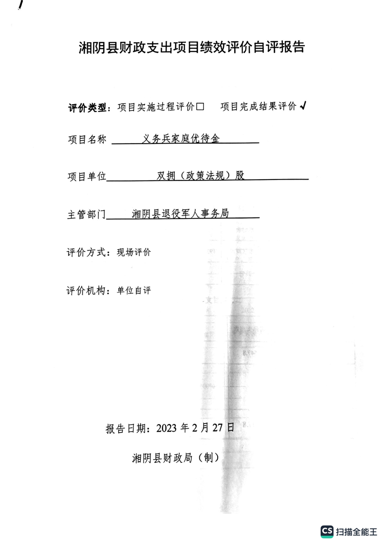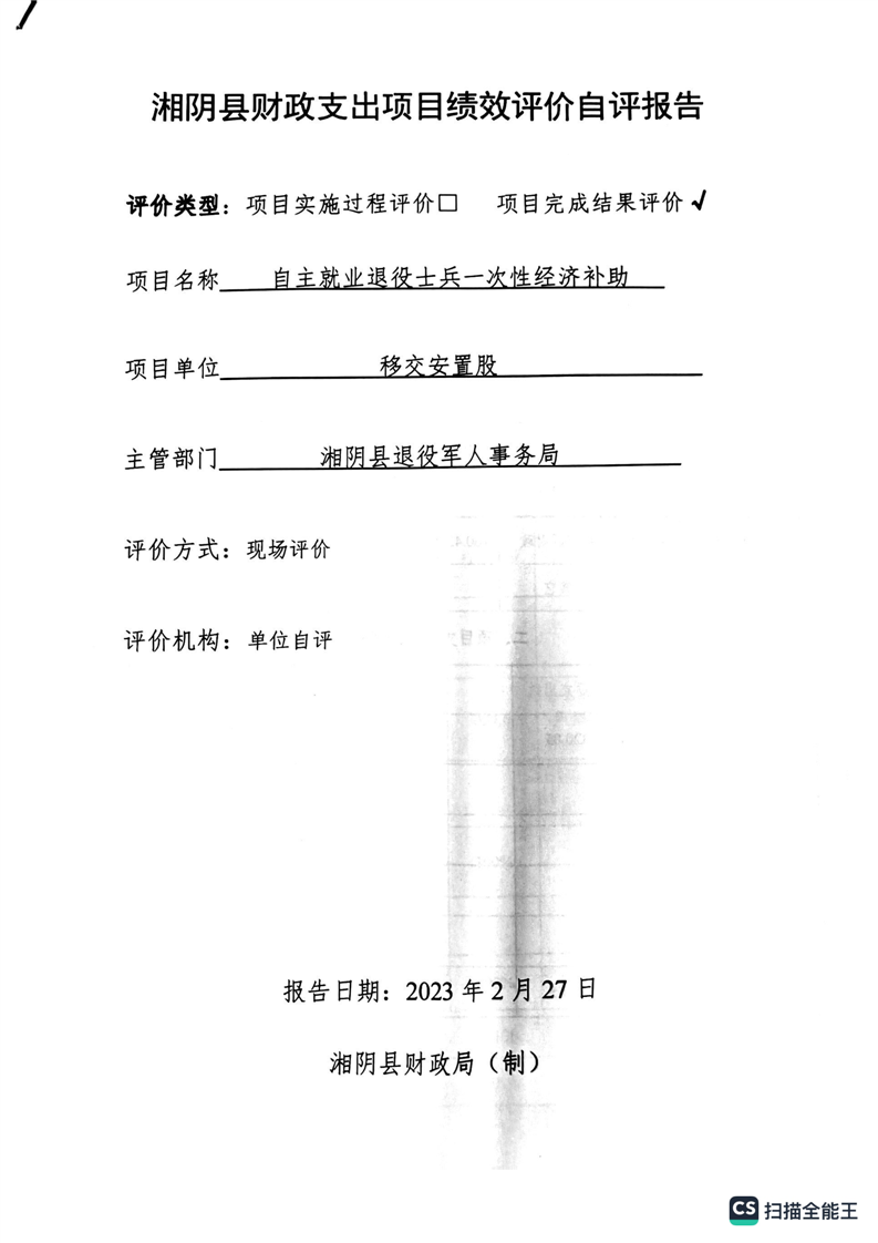 湘阴县退役军人事务局2022年度整体支出绩效自评报告