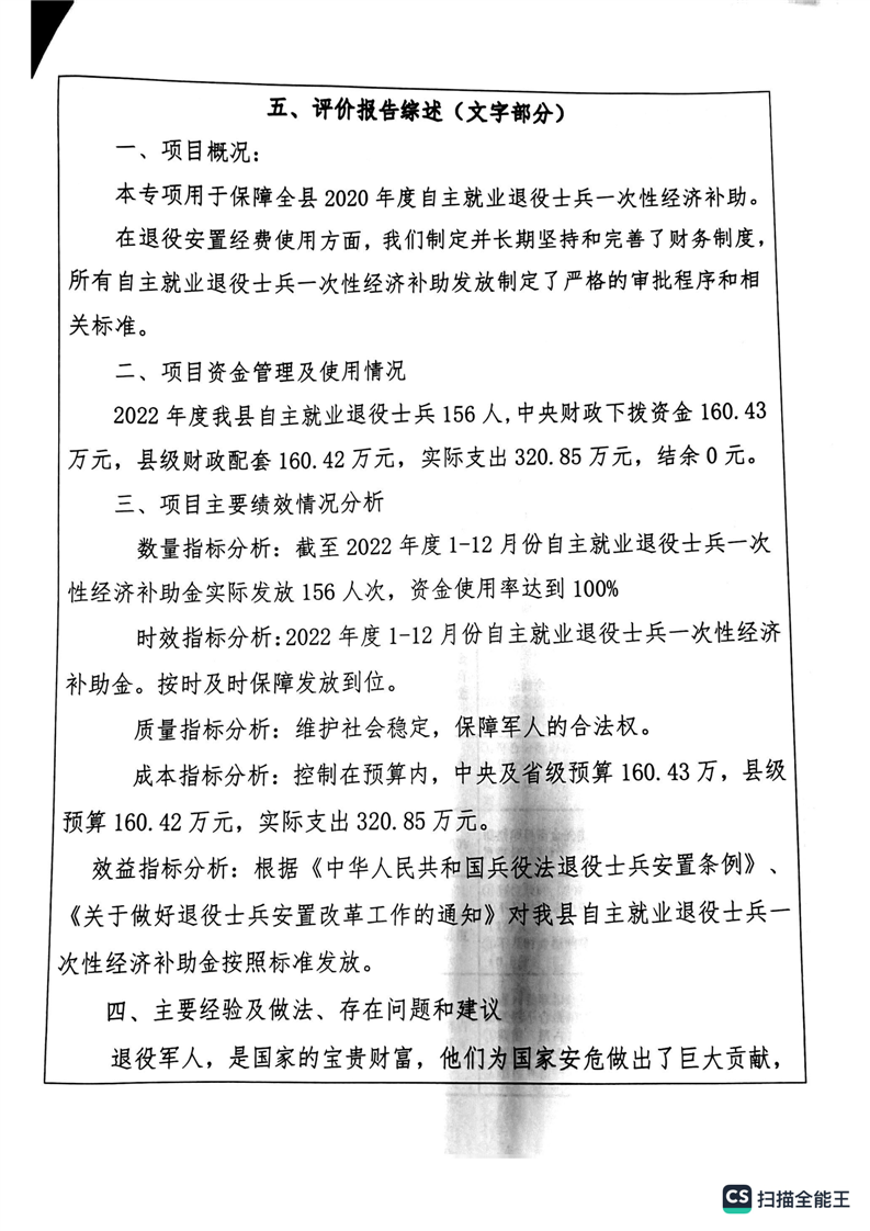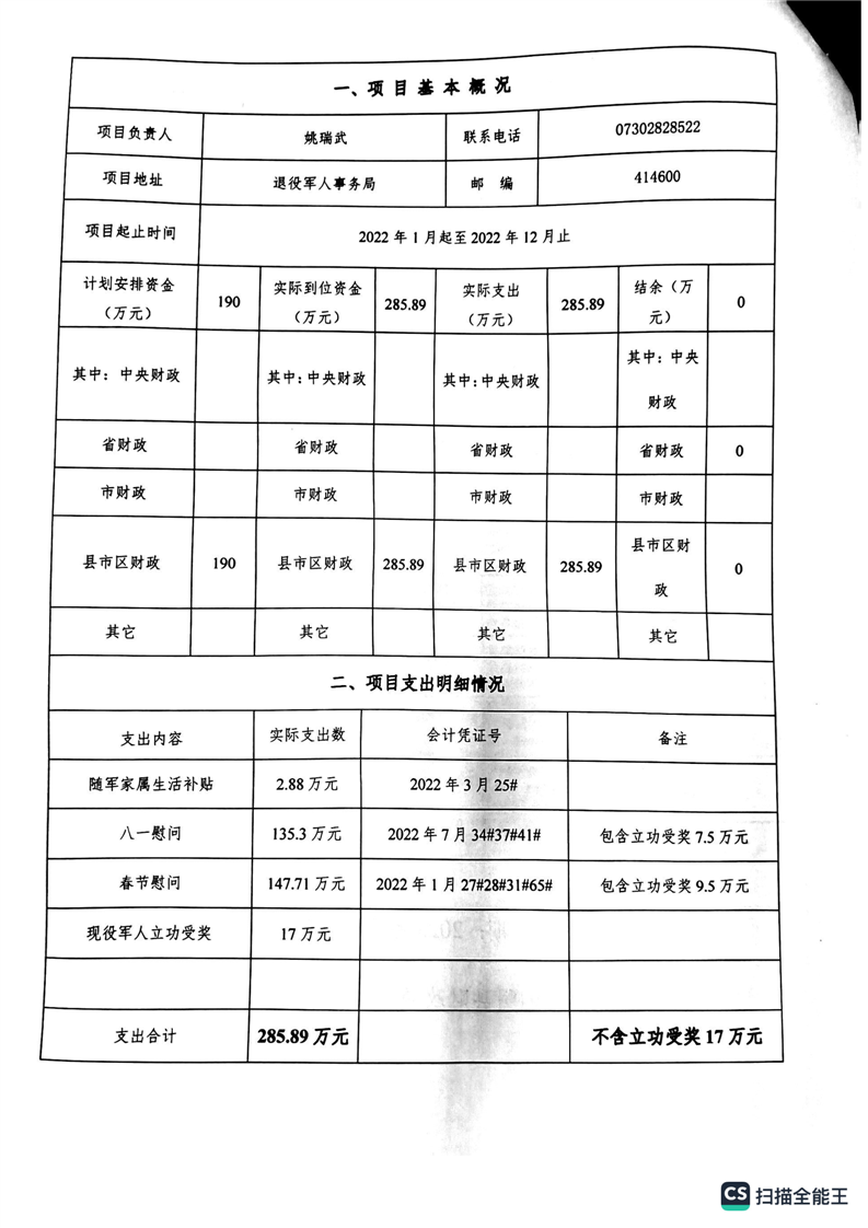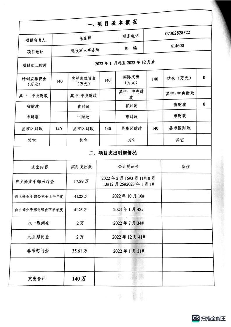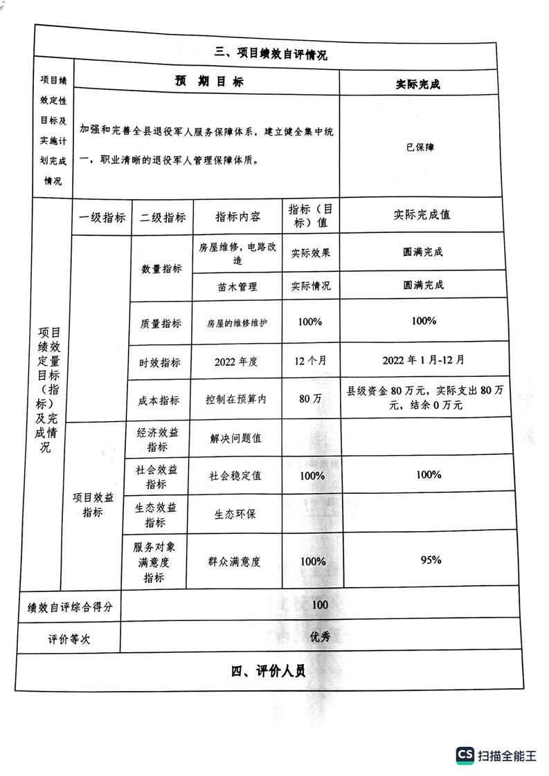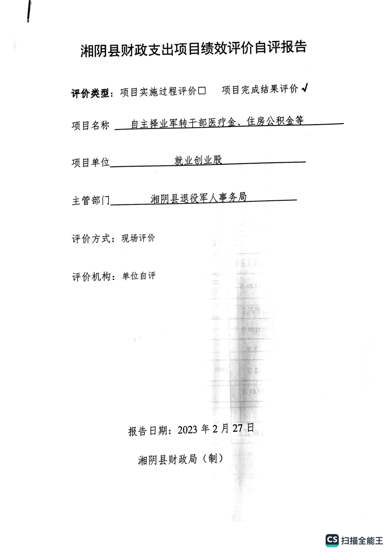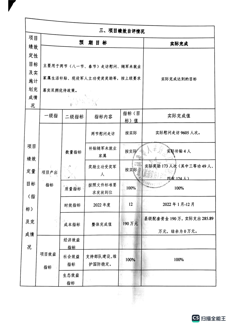 湘阴县退役军人事务局2022年度整体支出绩效自评报告