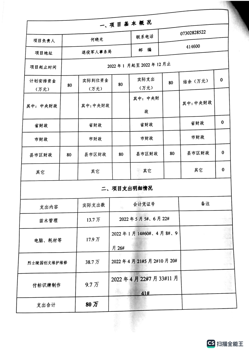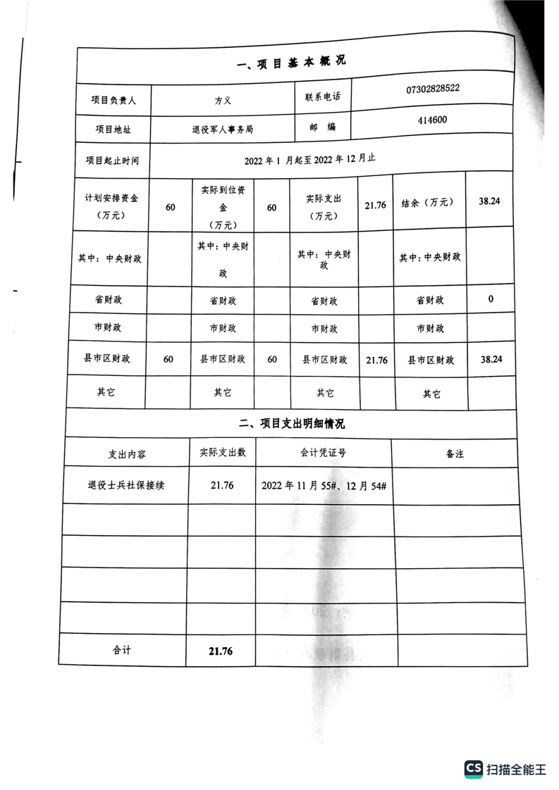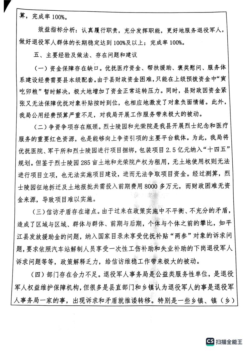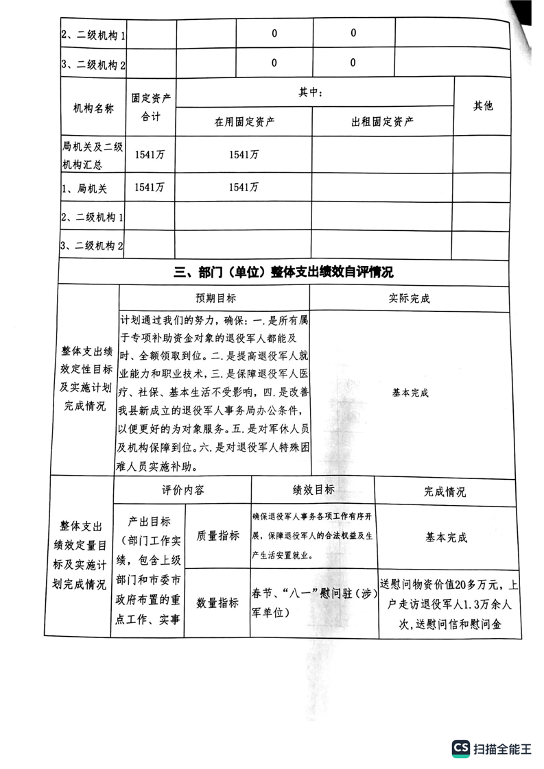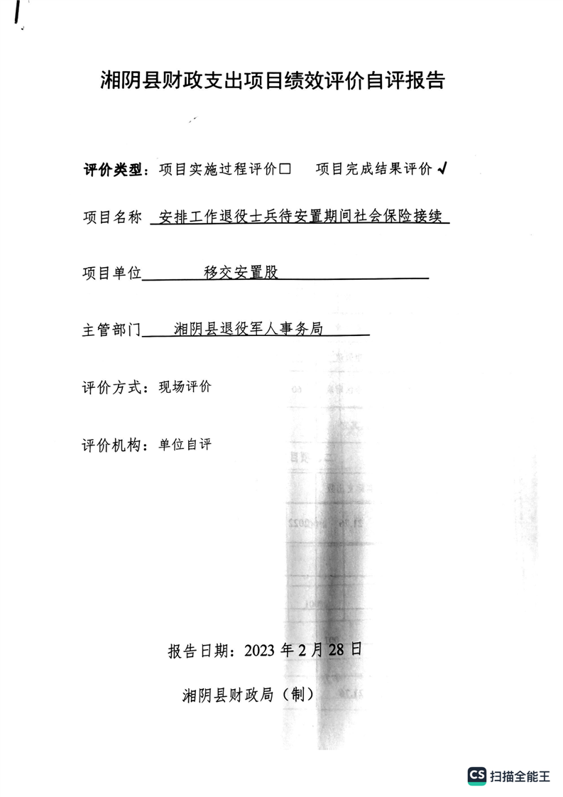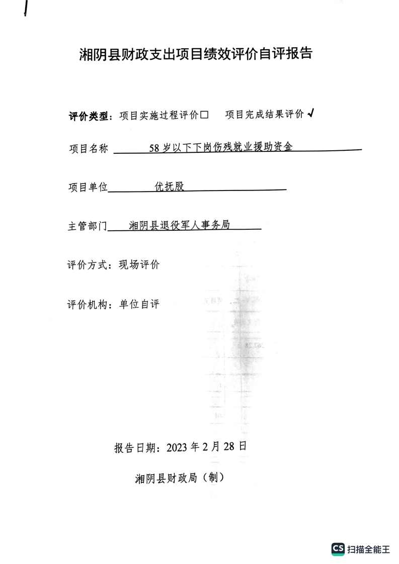 湘阴县退役军人事务局2022年度整体支出绩效自评报告
