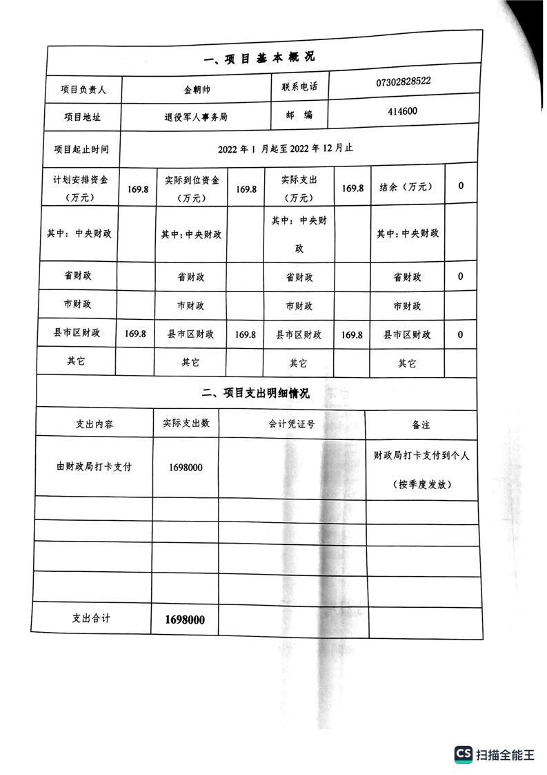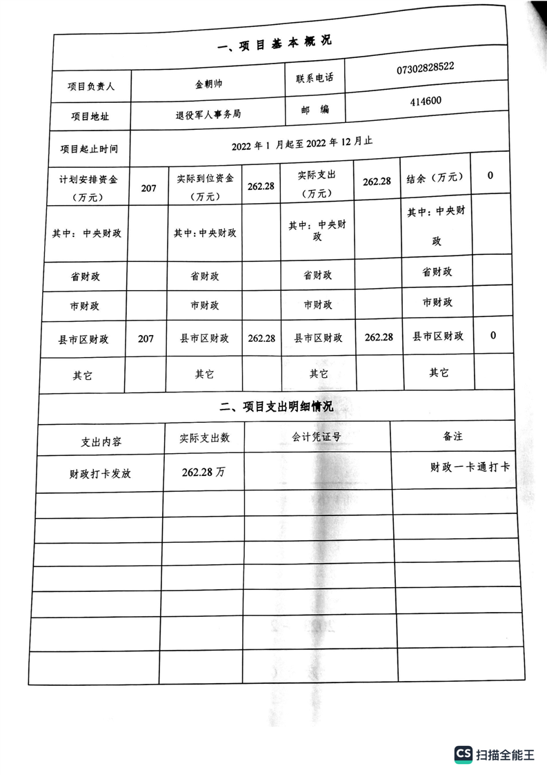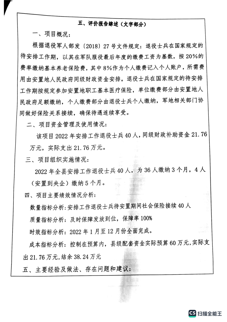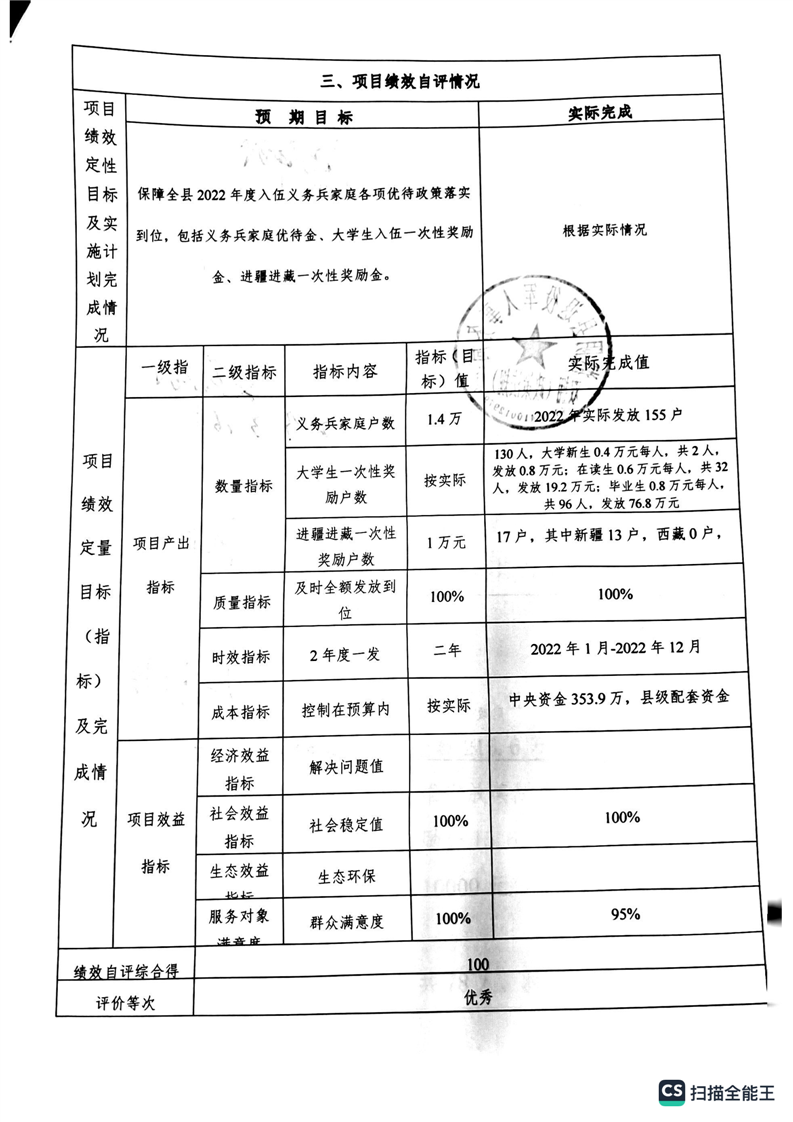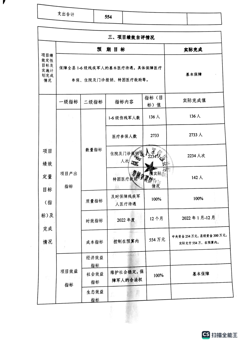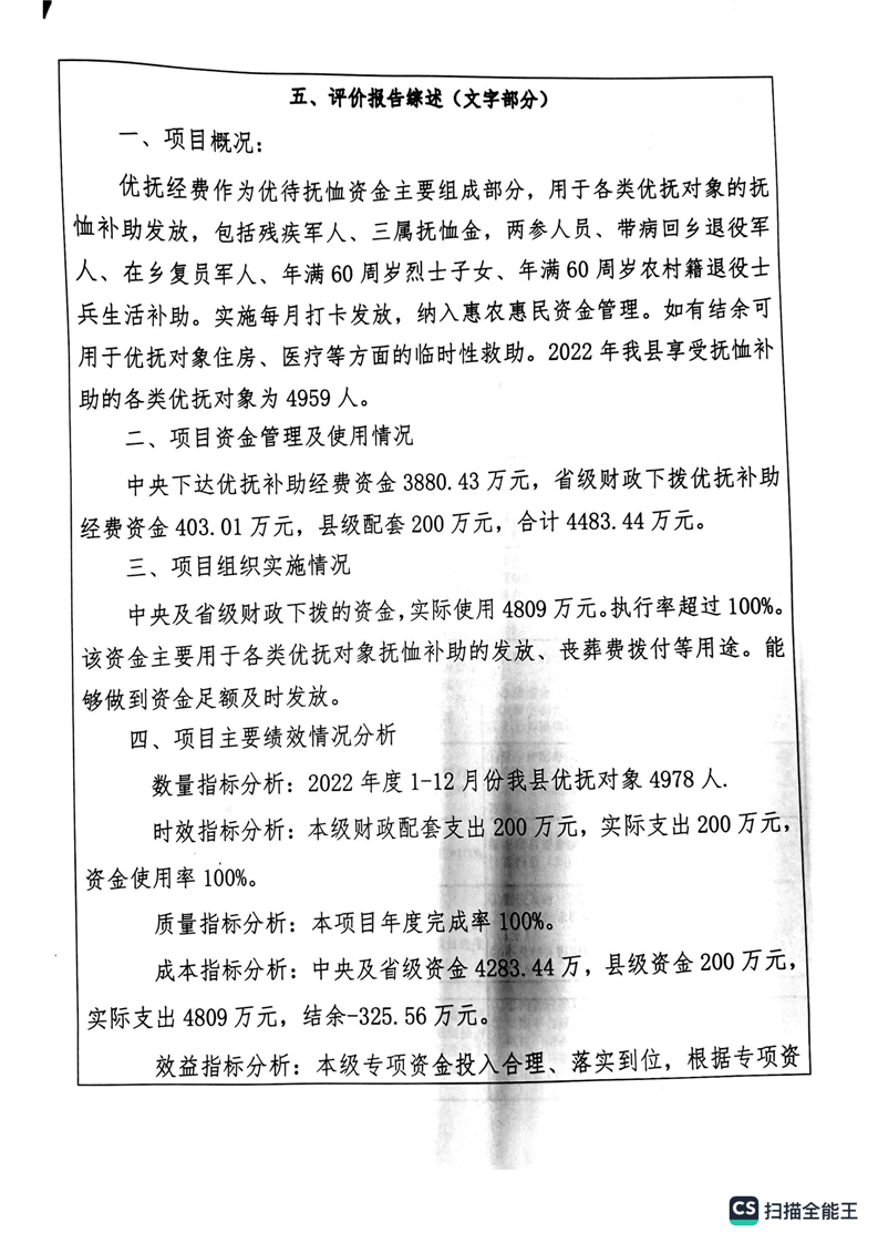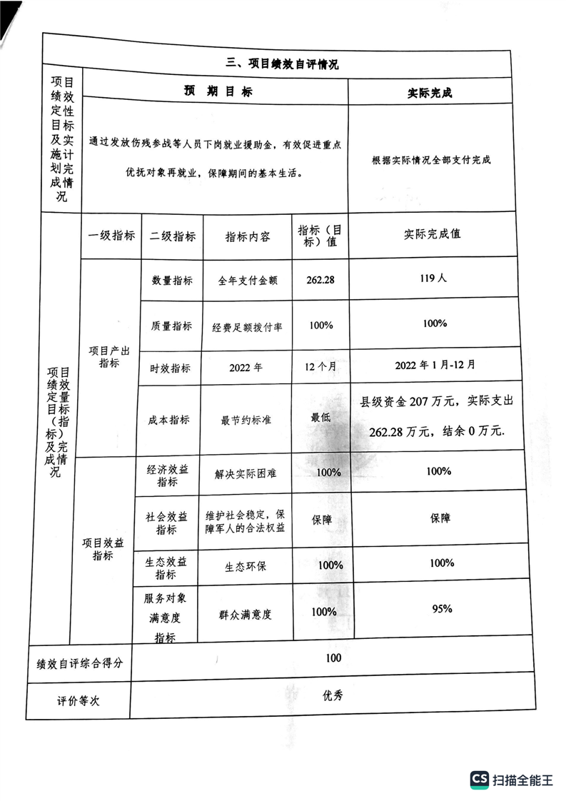 湘阴县退役军人事务局2022年度整体支出绩效自评报告