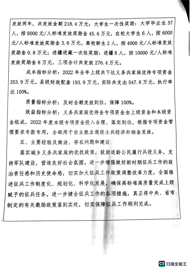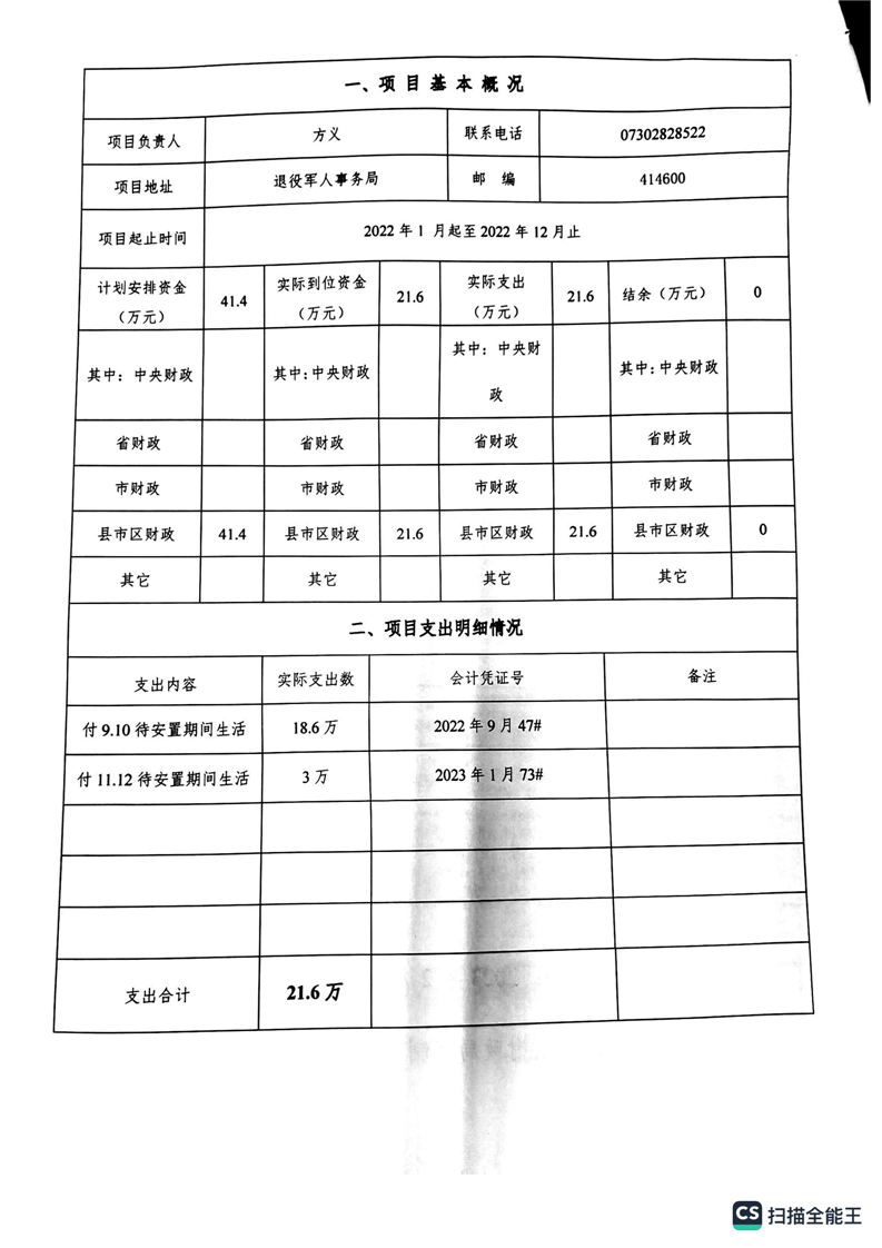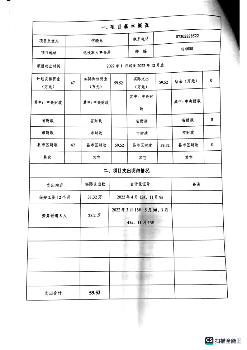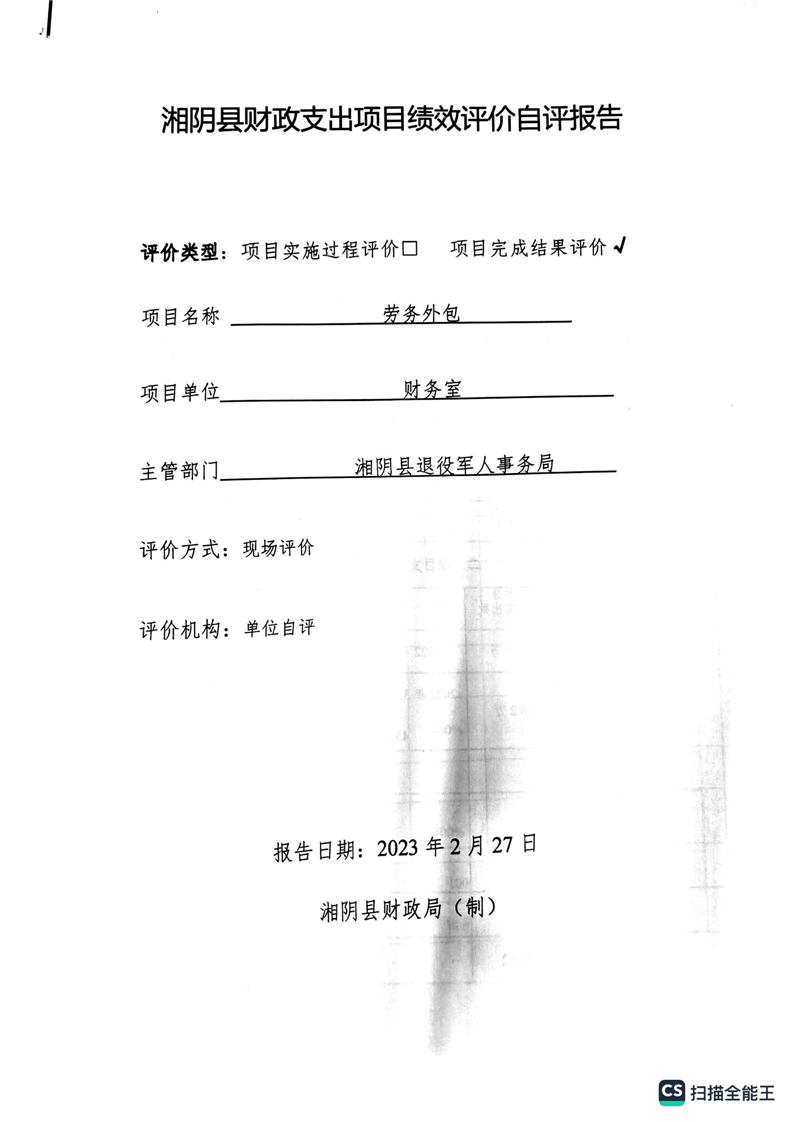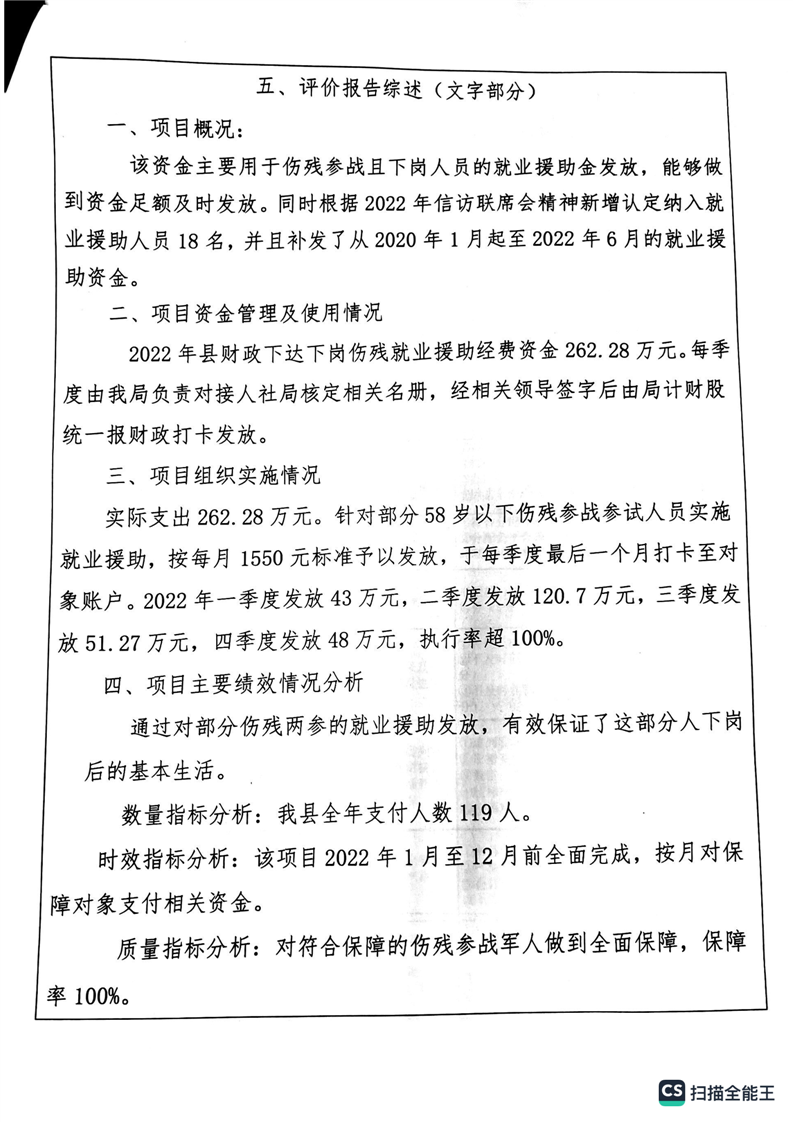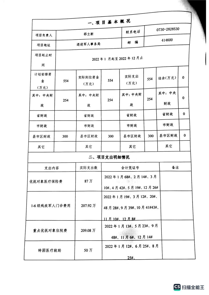 湘阴县退役军人事务局2022年度整体支出绩效自评报告