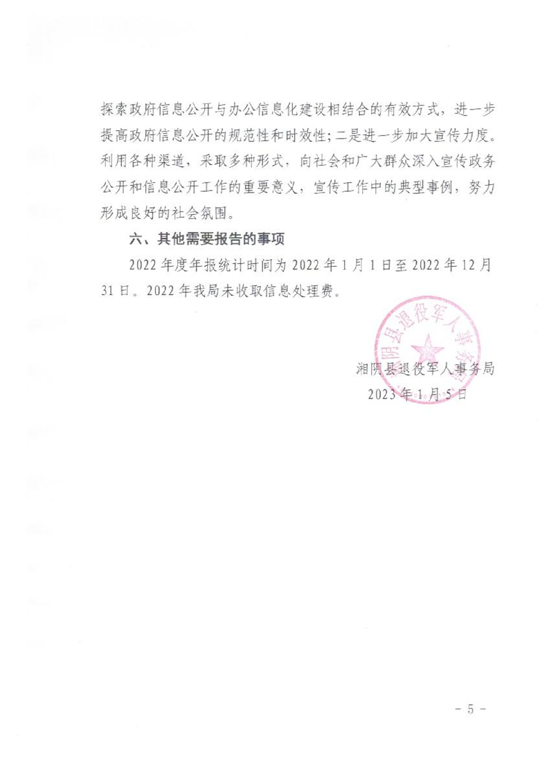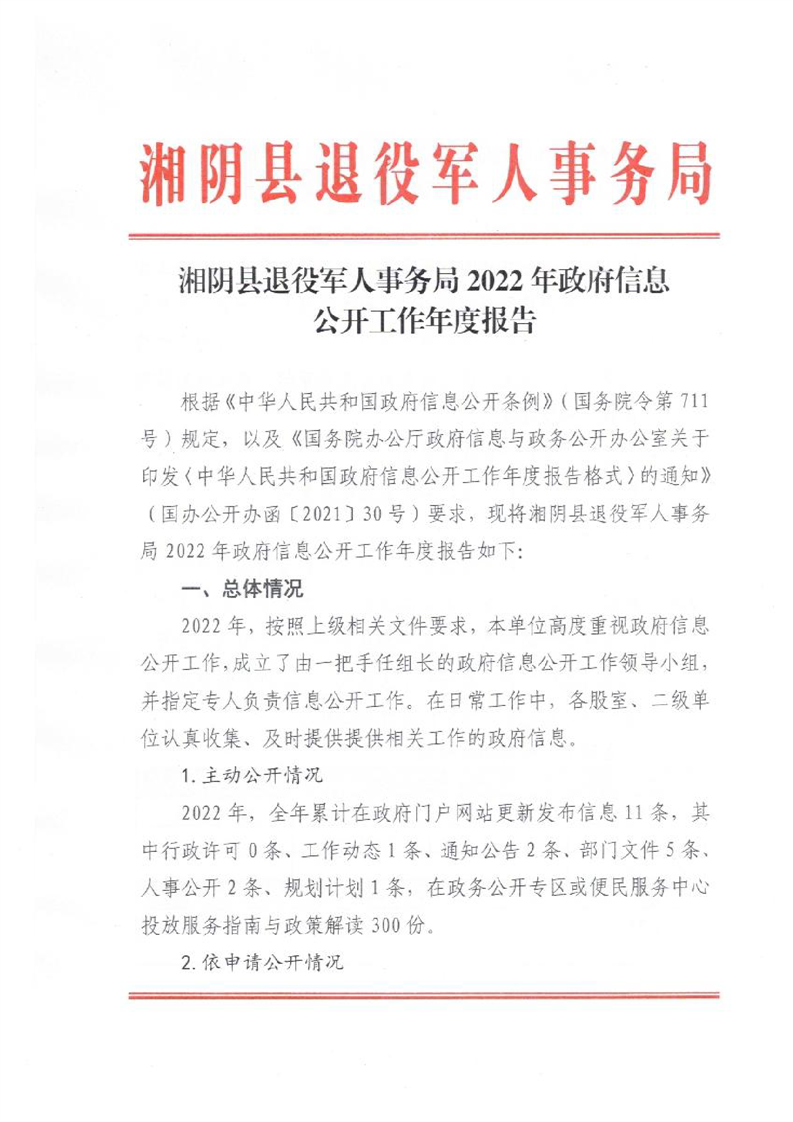 湘阴县退役军人事务局2022年政府信息公开工作年度报告
