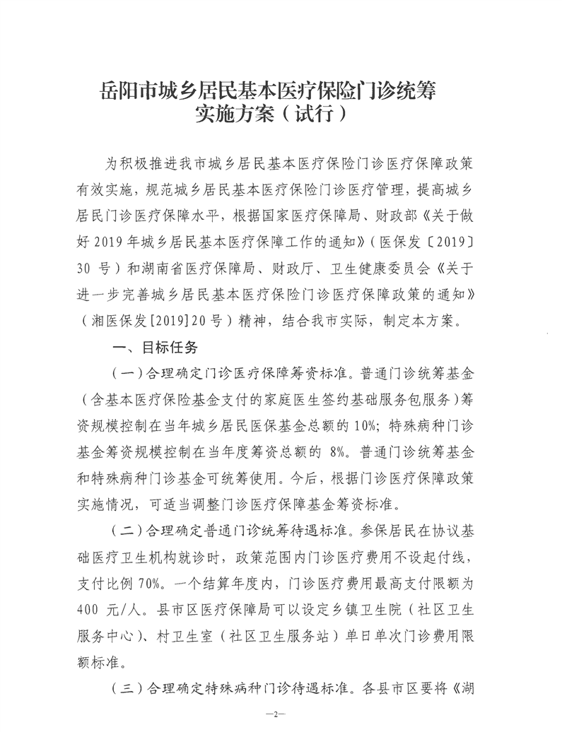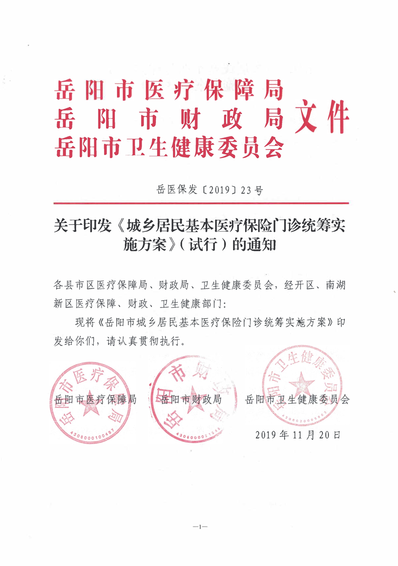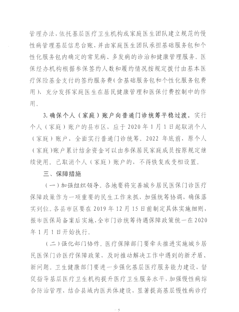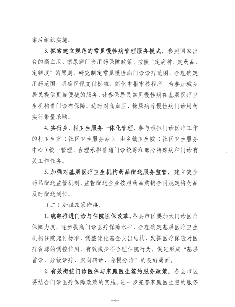 关于印发《城乡居民基本医疗保险门诊统筹实施方案》