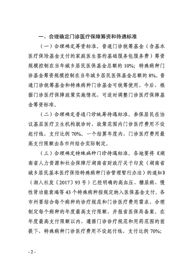省医疗保障局省财政厅省卫健委关于进一步完善城乡居民基本医疗保险门诊医疗保障政策的通知(湘医保发〔2019〕20号)