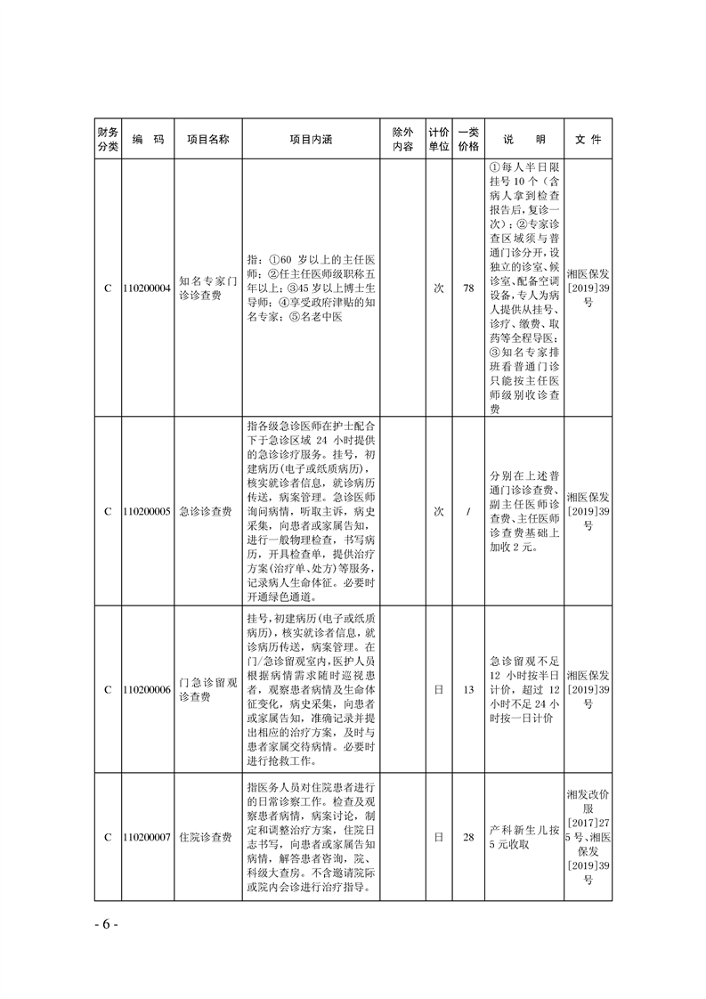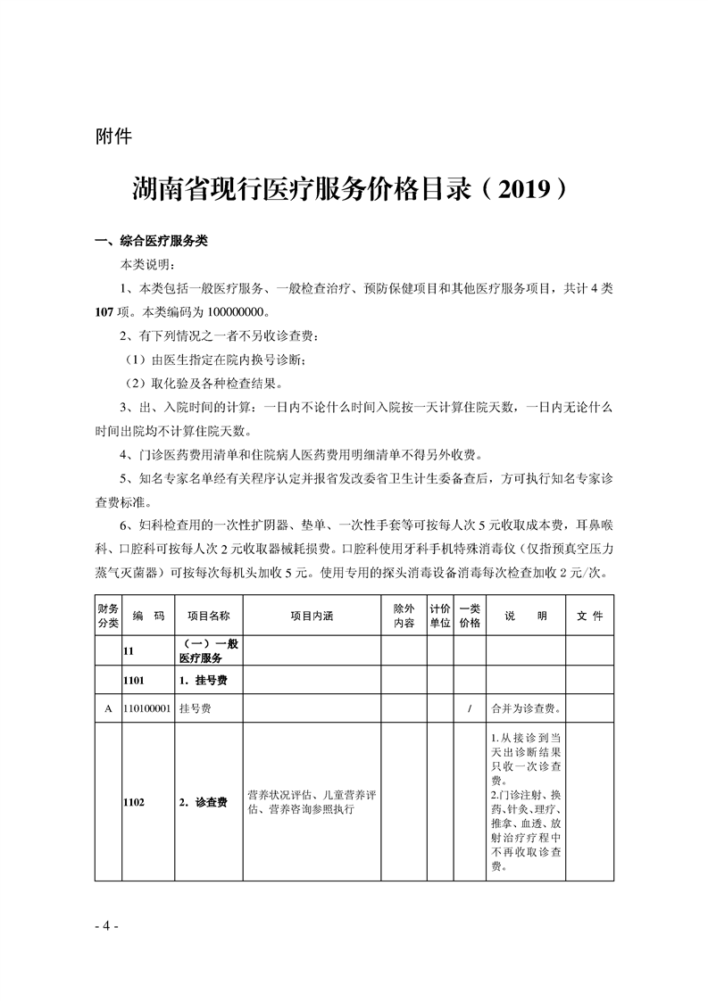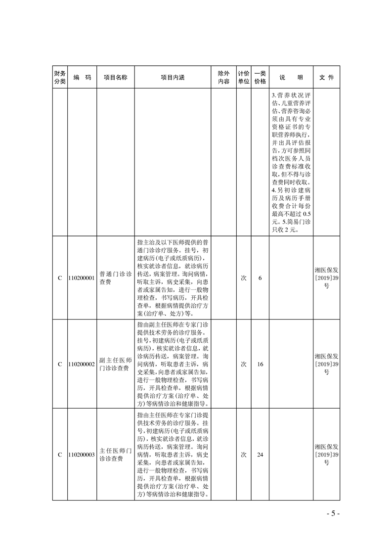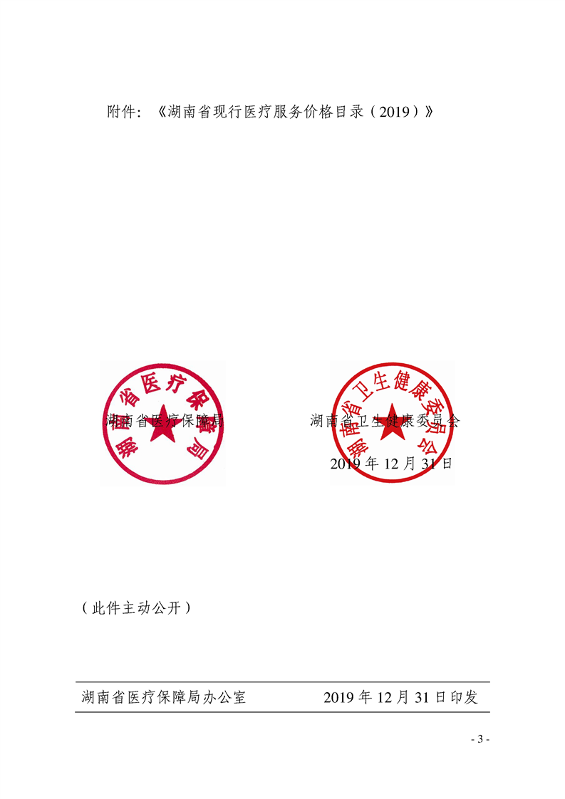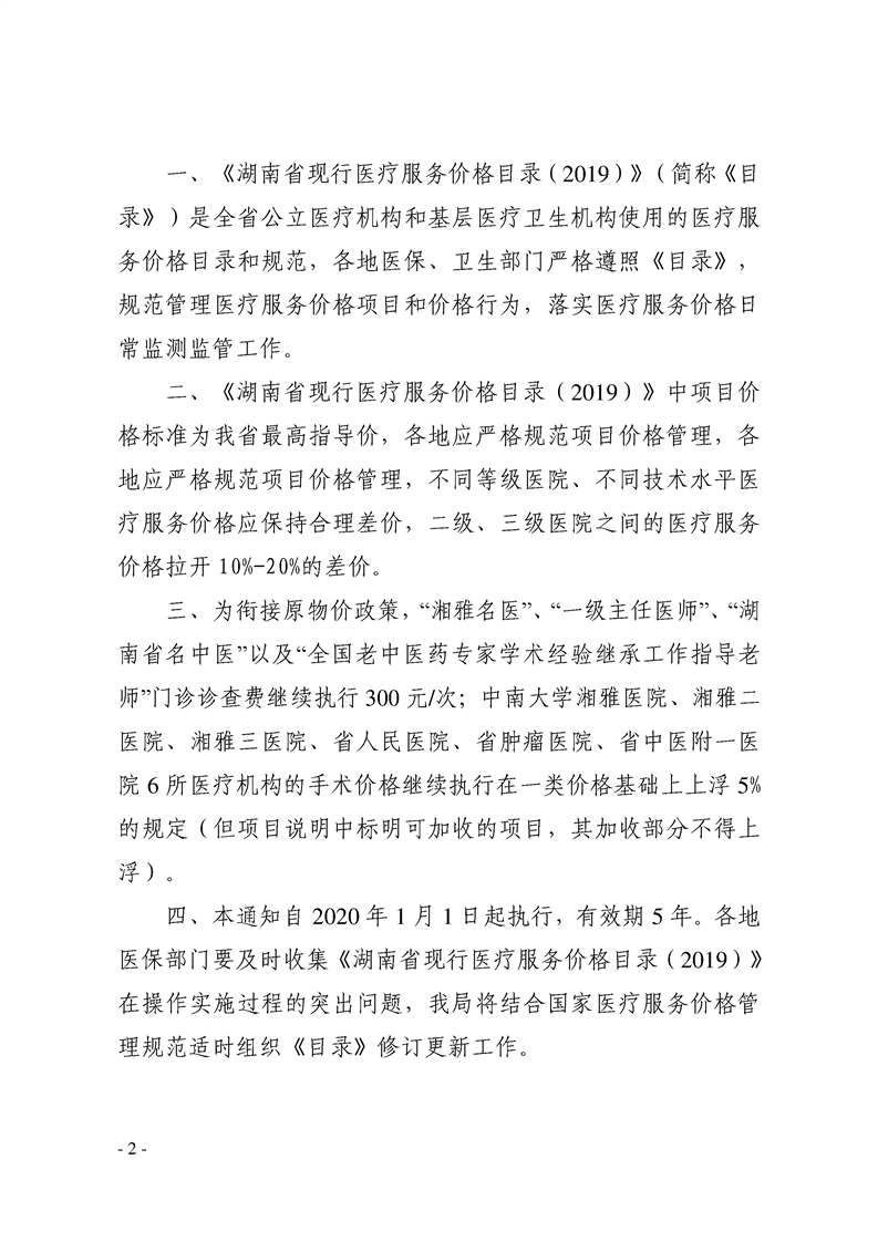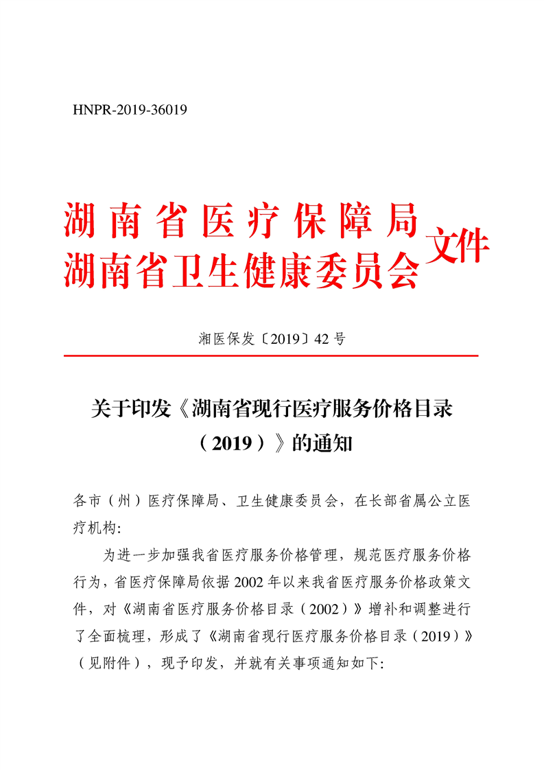 关于印发《湖南省现行医疗服务价格目录(2019)》的通知
