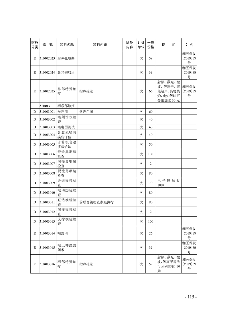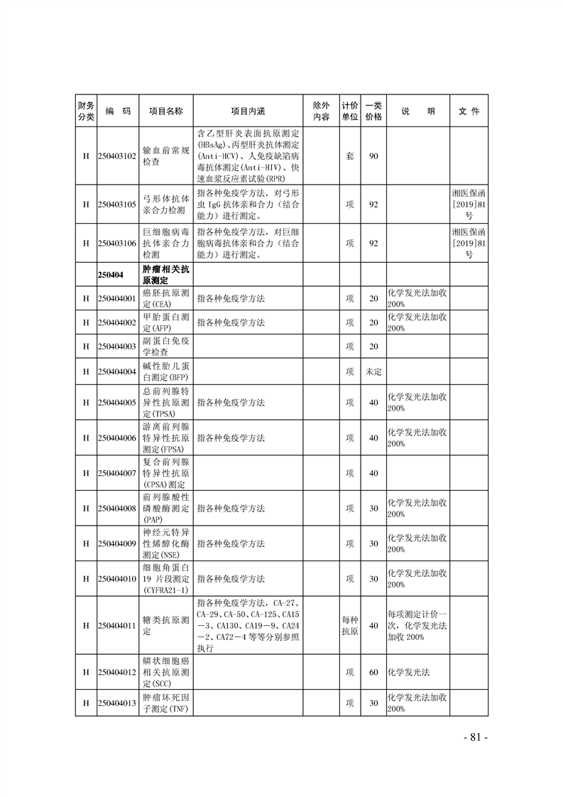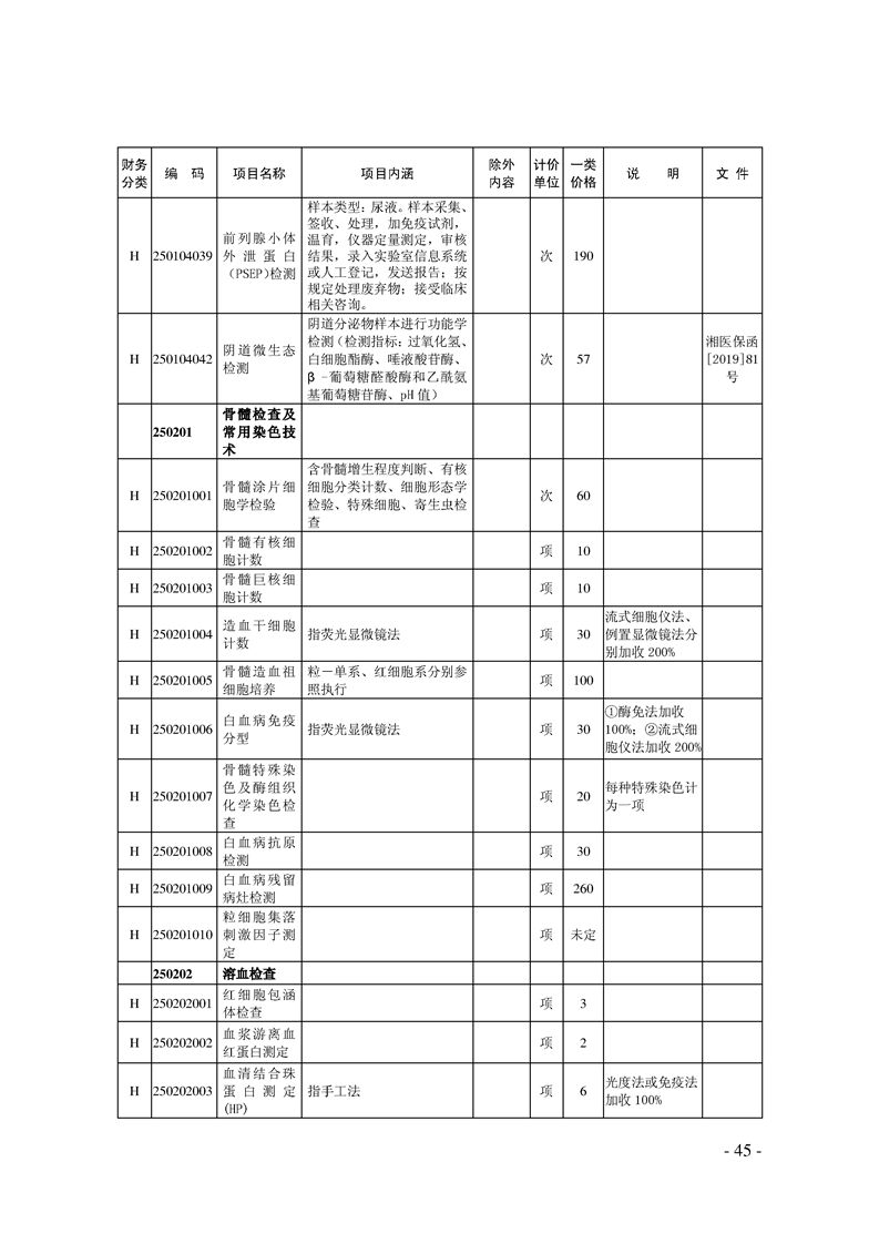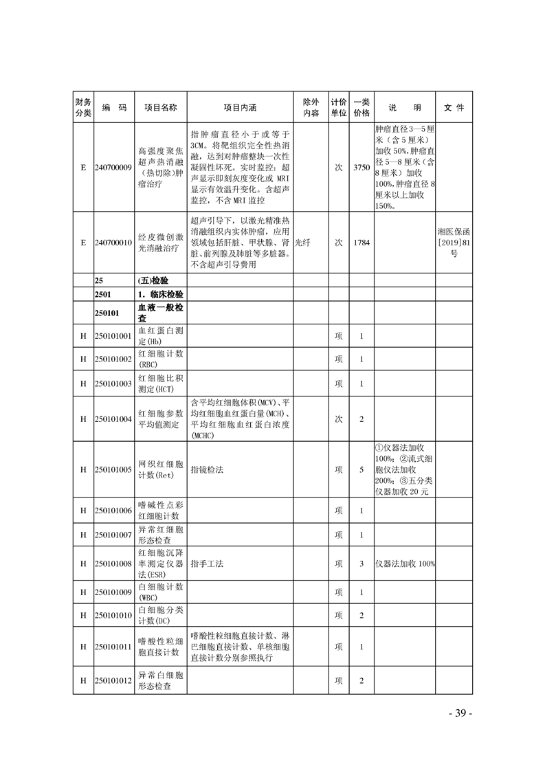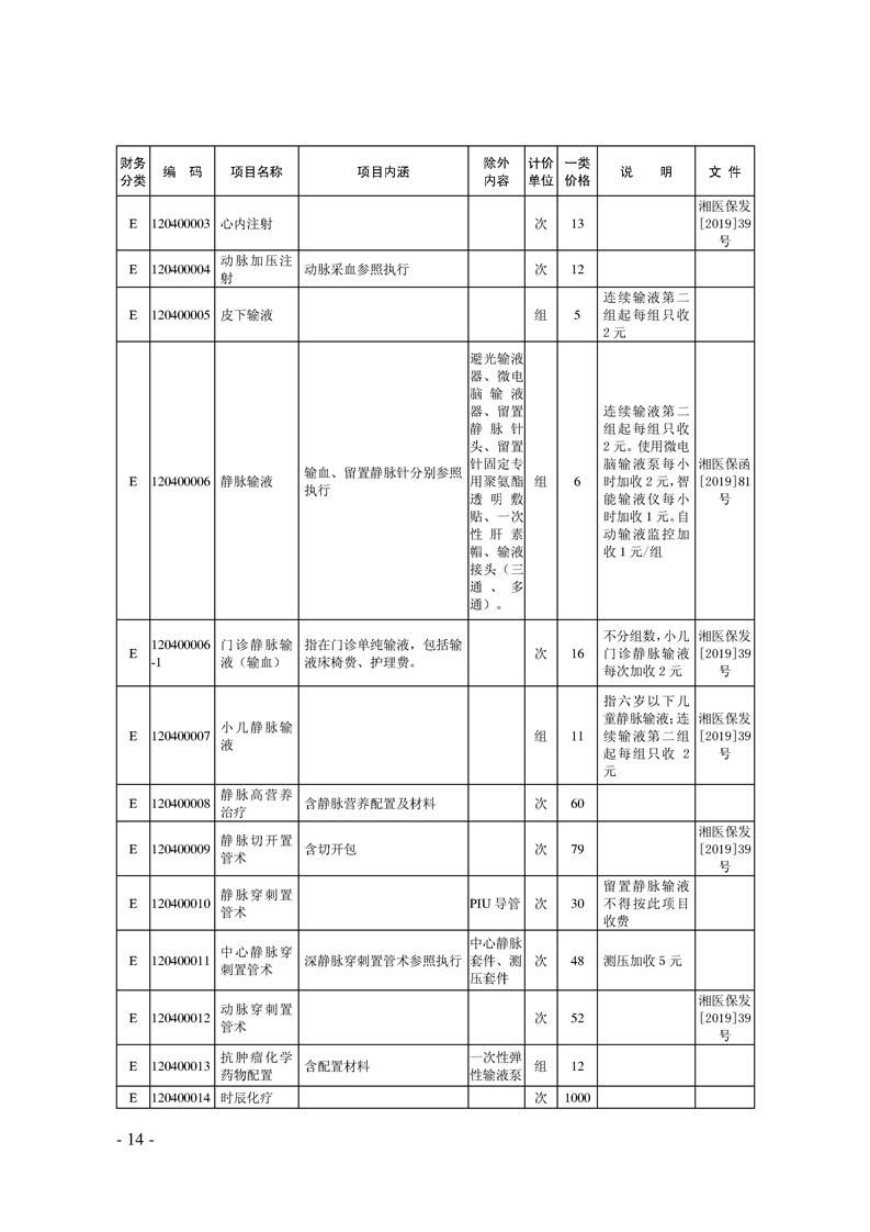 关于印发《湖南省现行医疗服务价格目录(2019)》的通知
