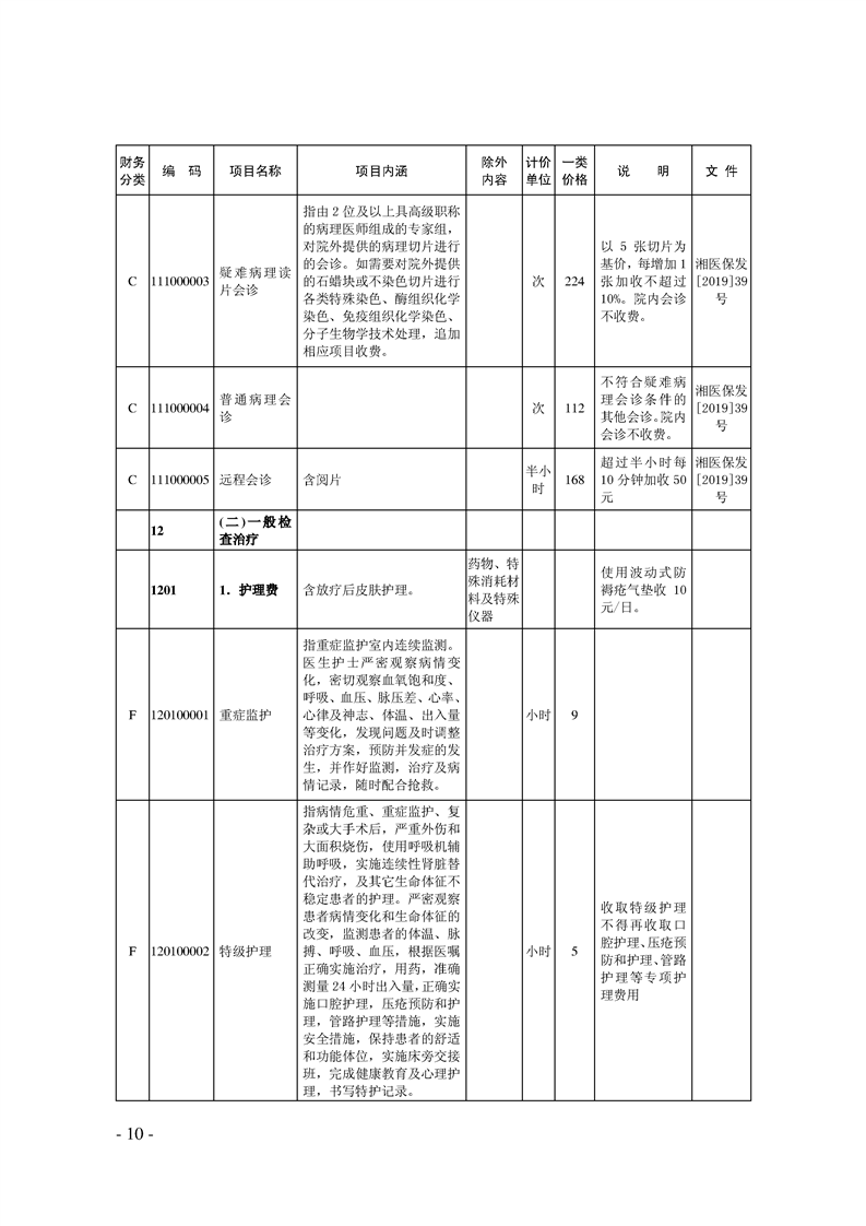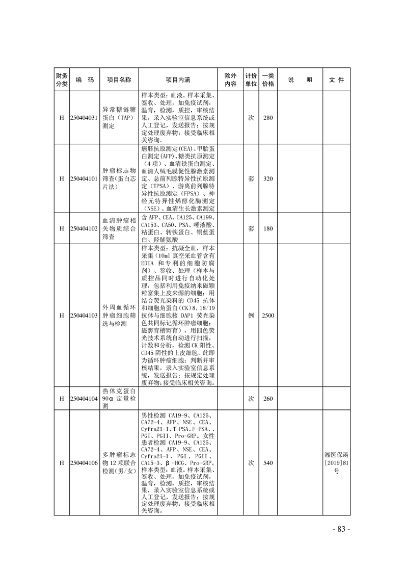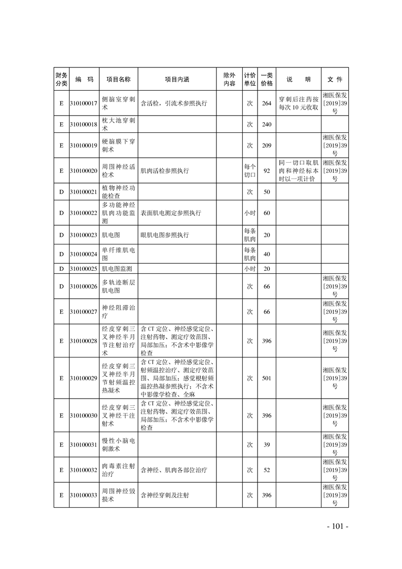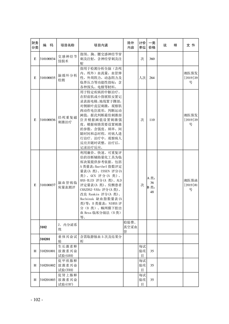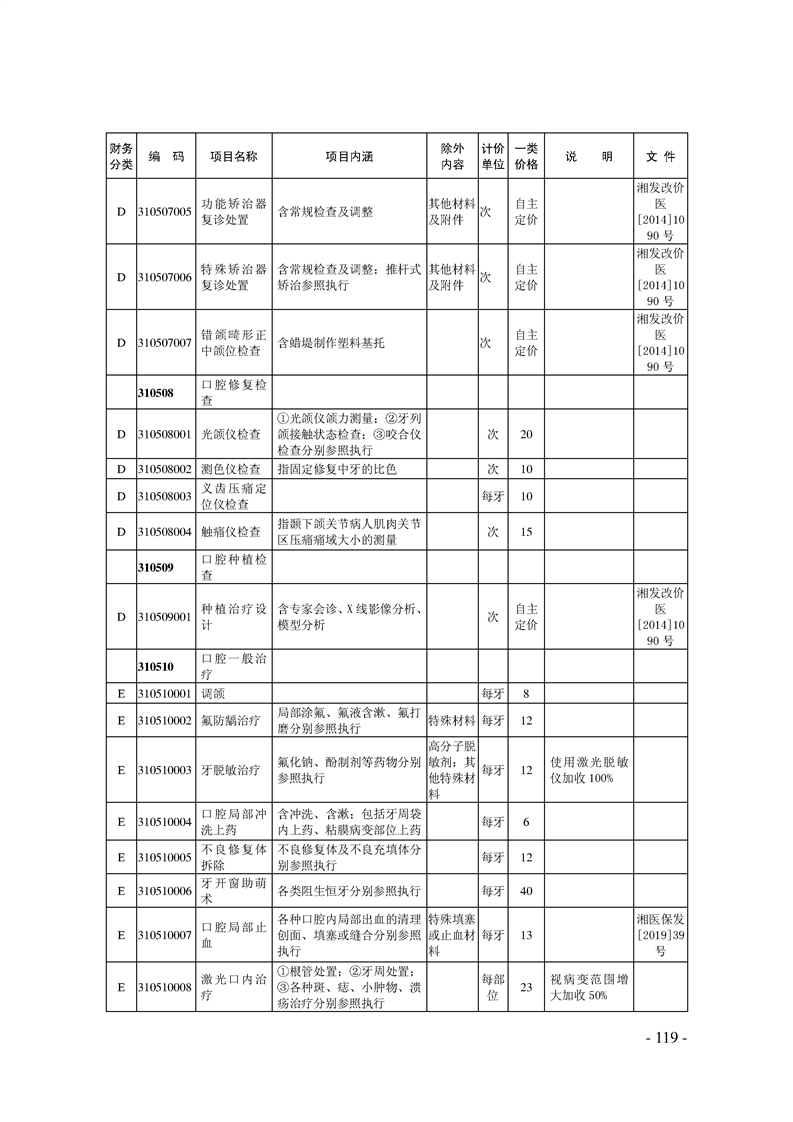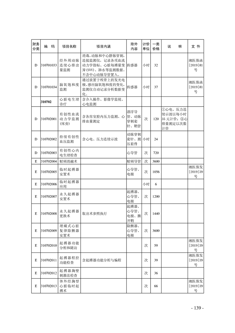 关于印发《湖南省现行医疗服务价格目录(2019)》的通知