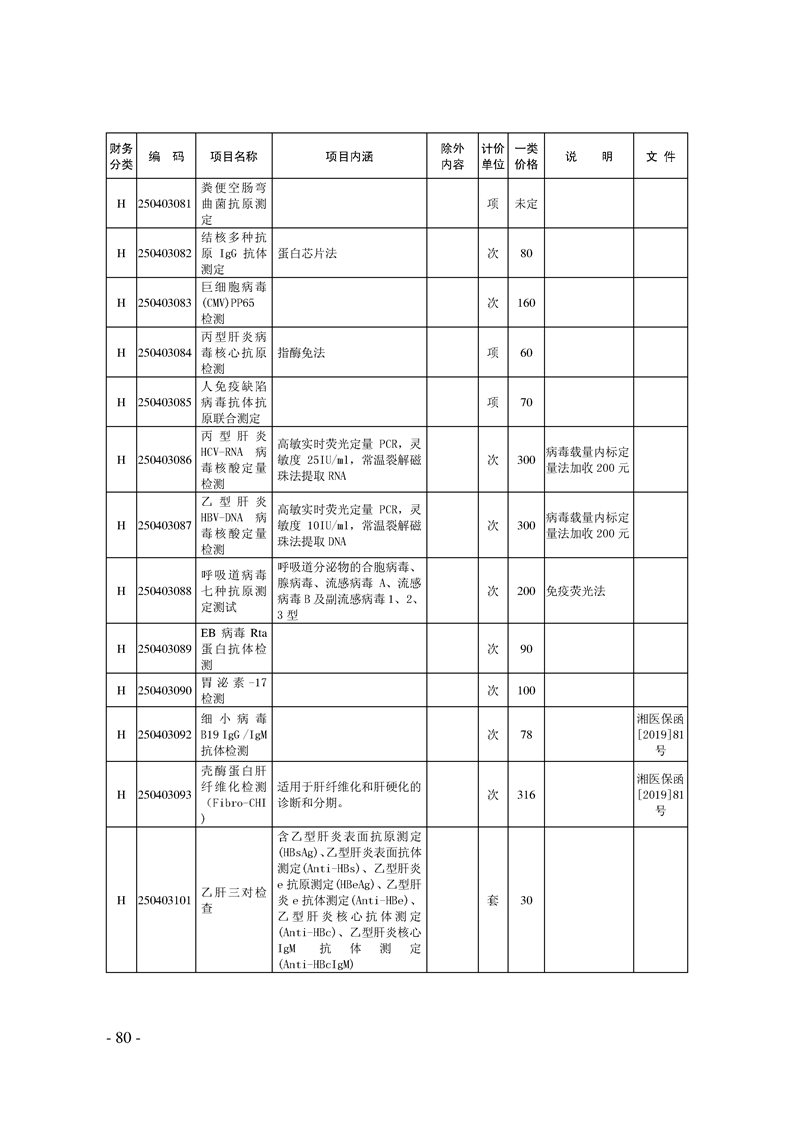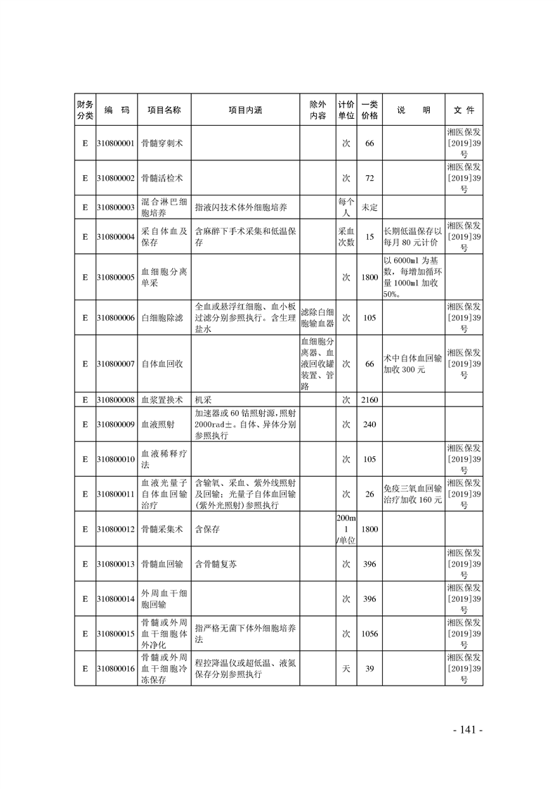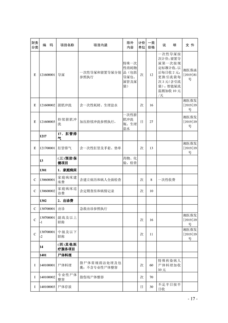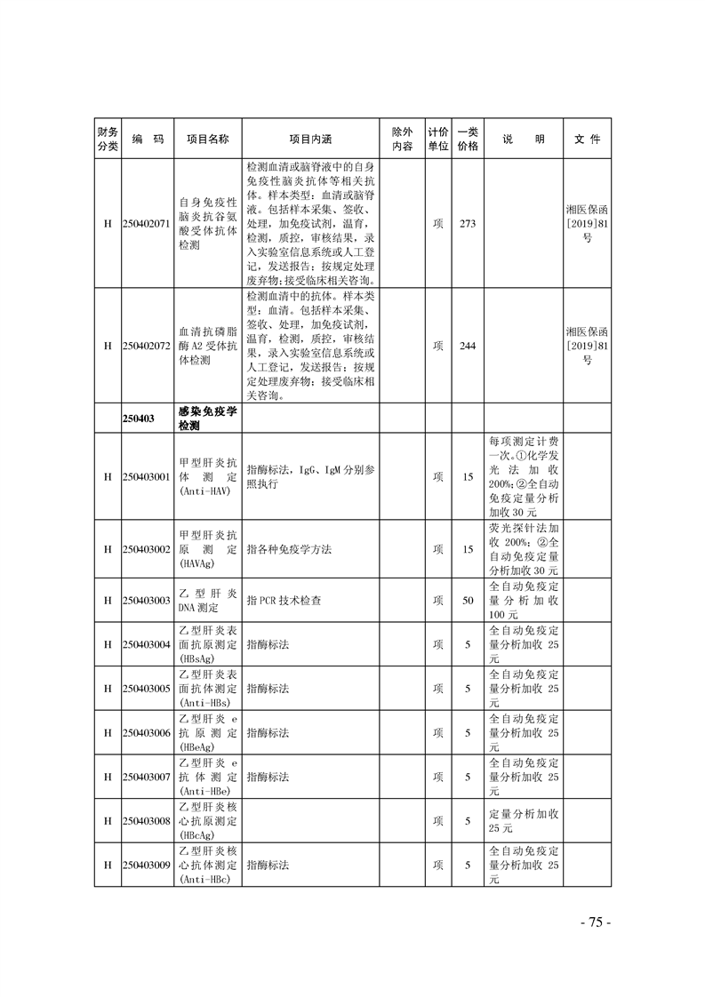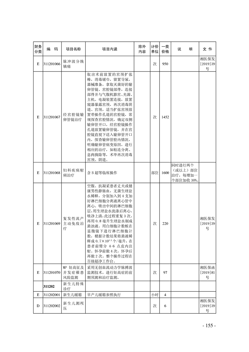 关于印发《湖南省现行医疗服务价格目录(2019)》的通知