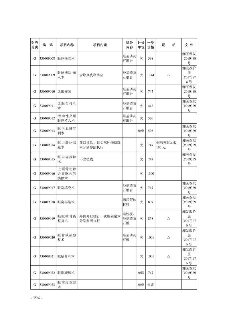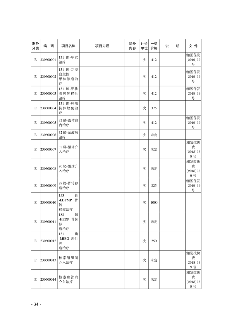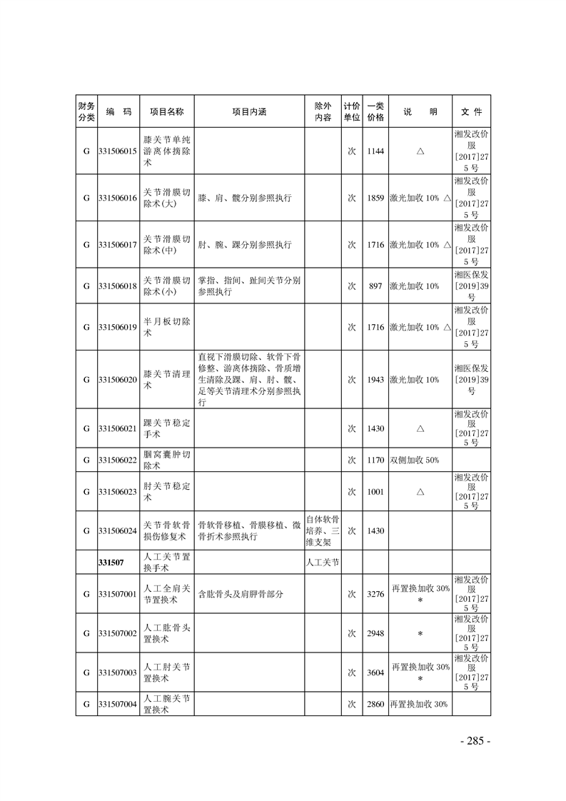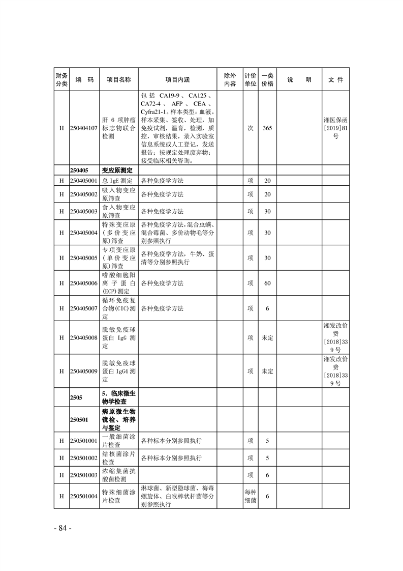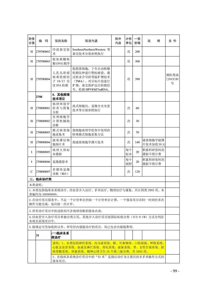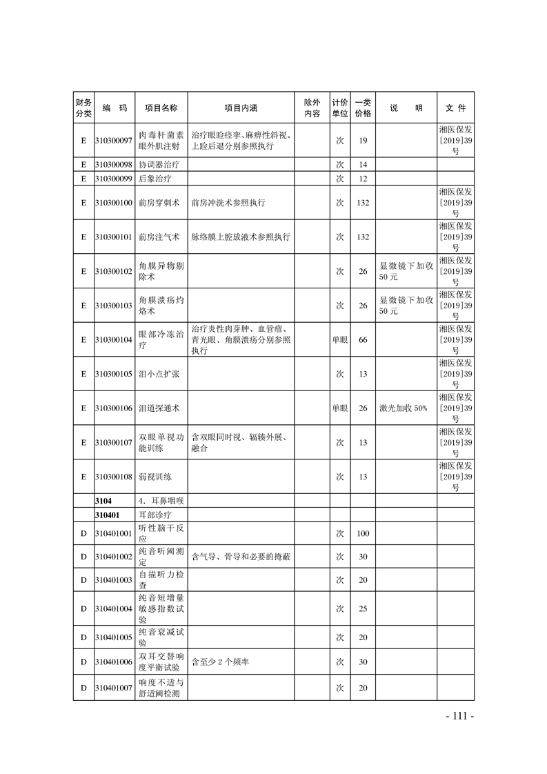 关于印发《湖南省现行医疗服务价格目录(2019)》的通知