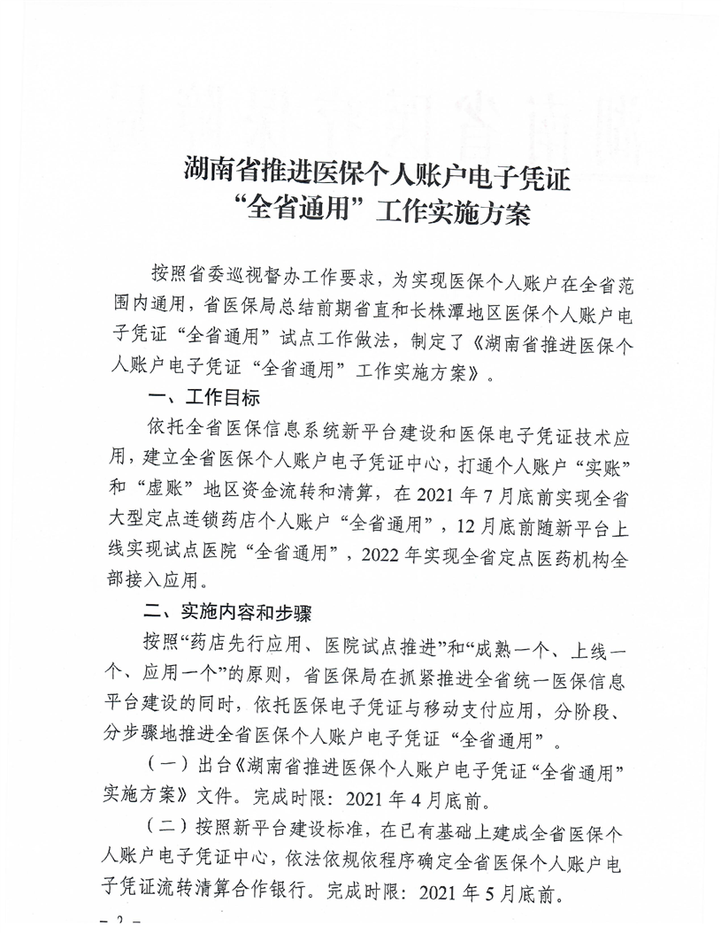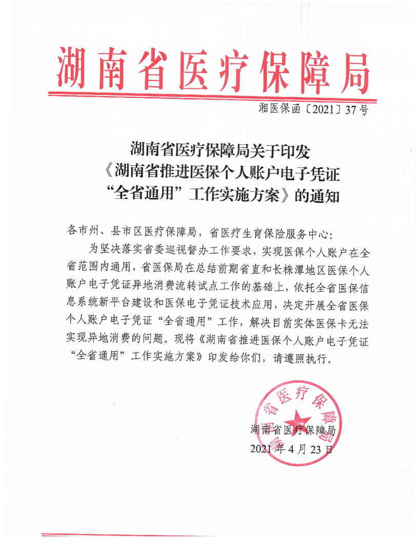 《湖南省推进医保个人账户电子凭证“全省通用”工作实施方案》的通知