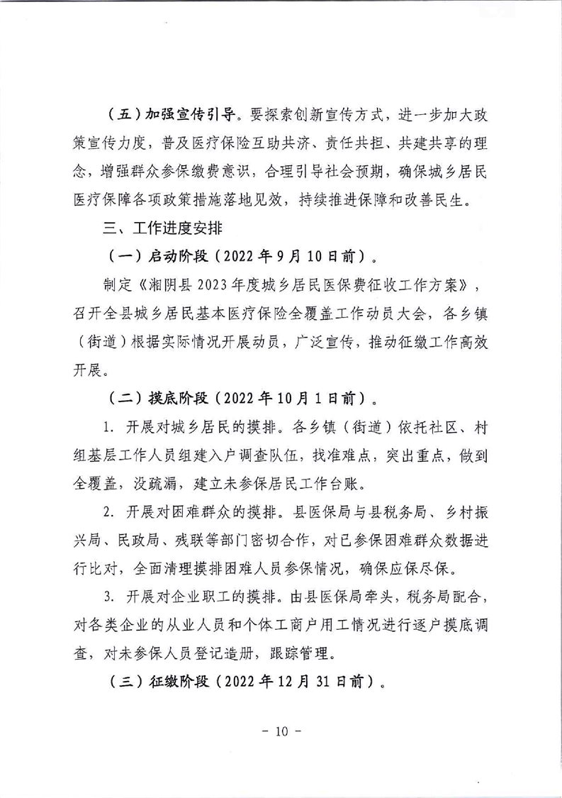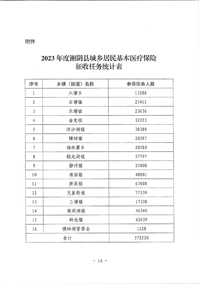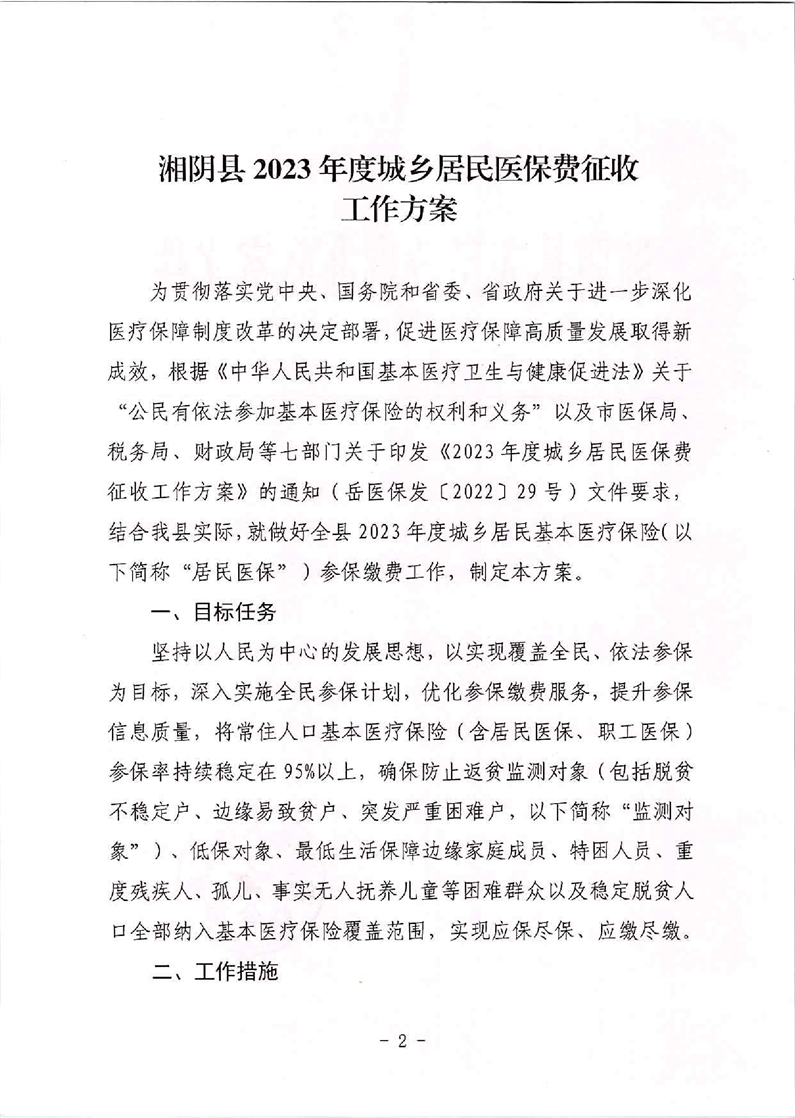 湘阴县2023年度城乡居民医保费征收工作方案