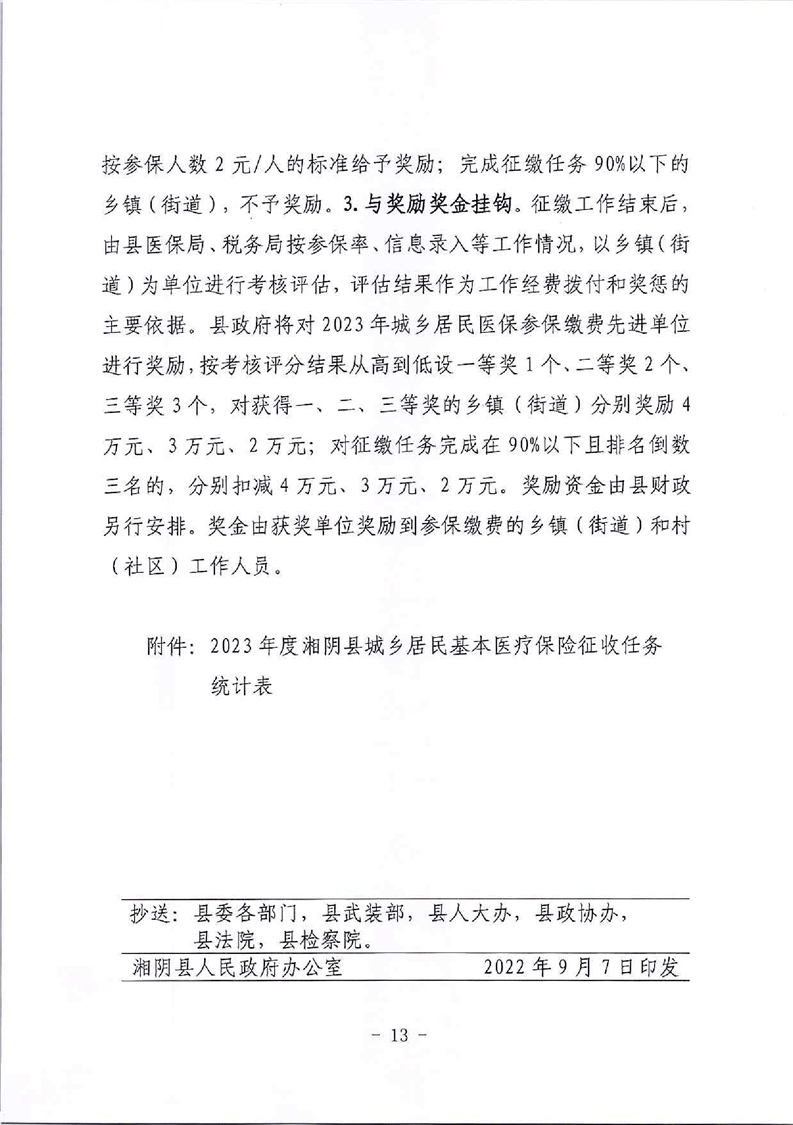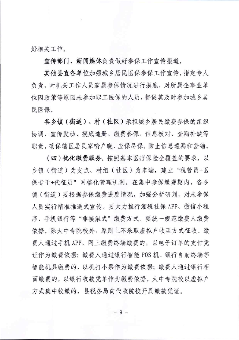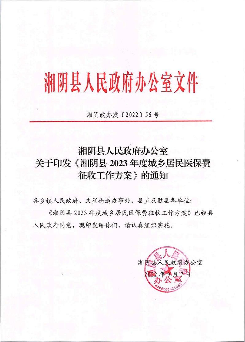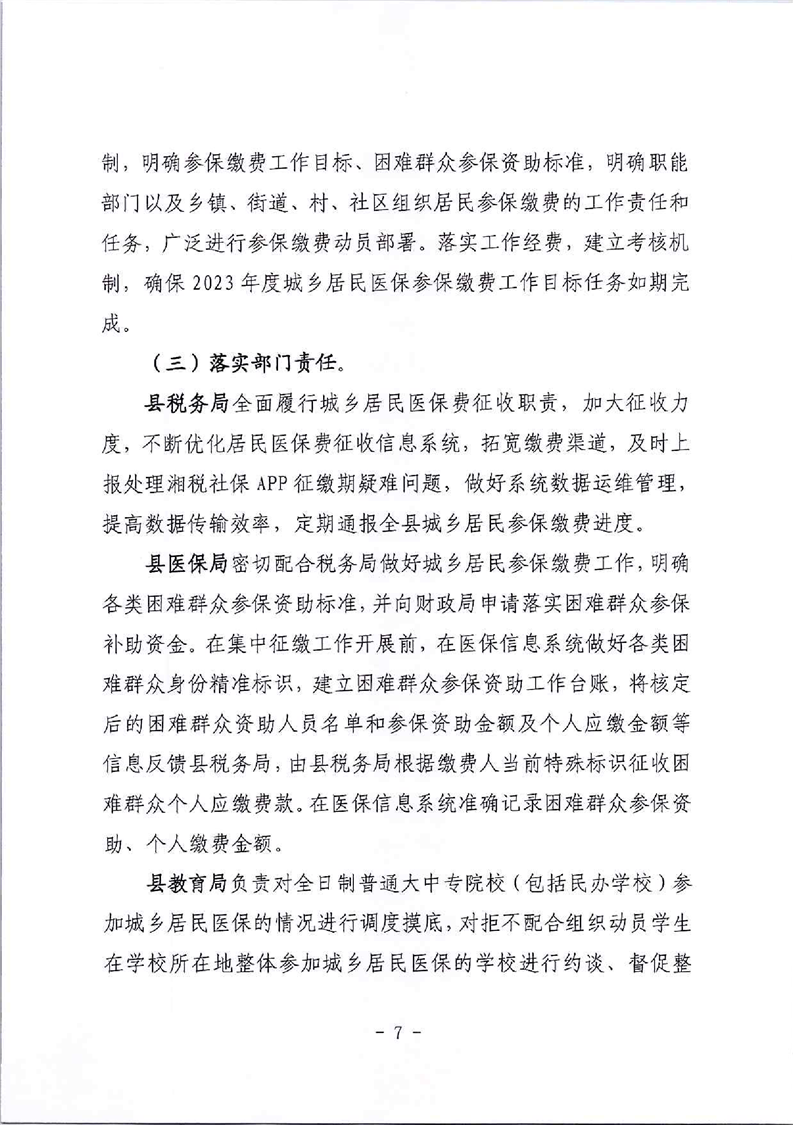 湘阴县2023年度城乡居民医保费征收工作方案