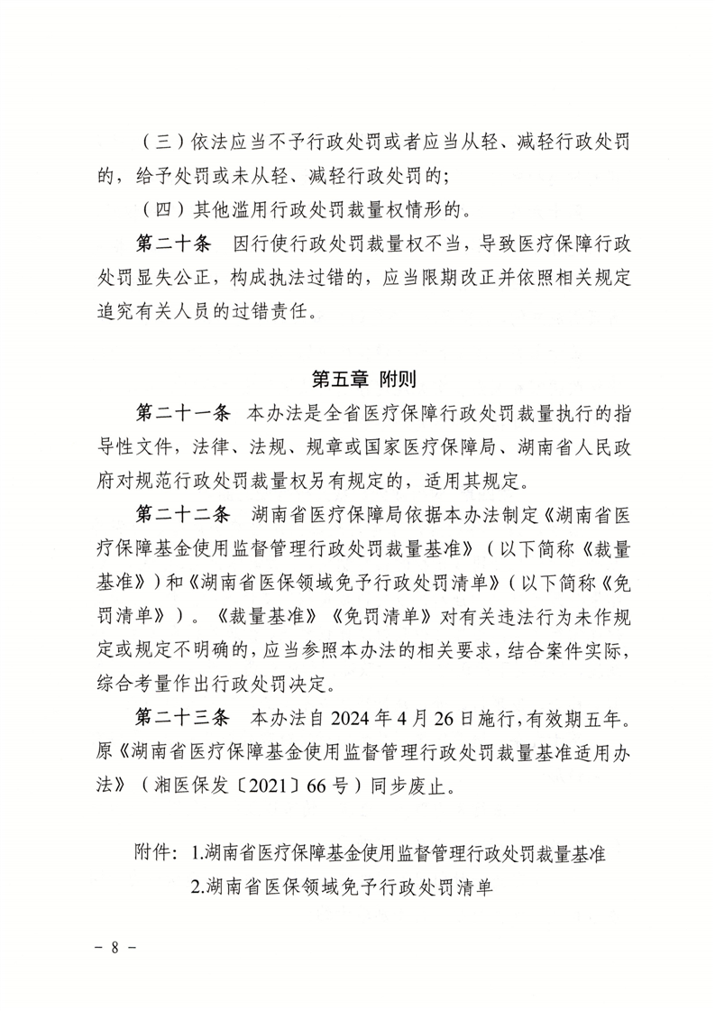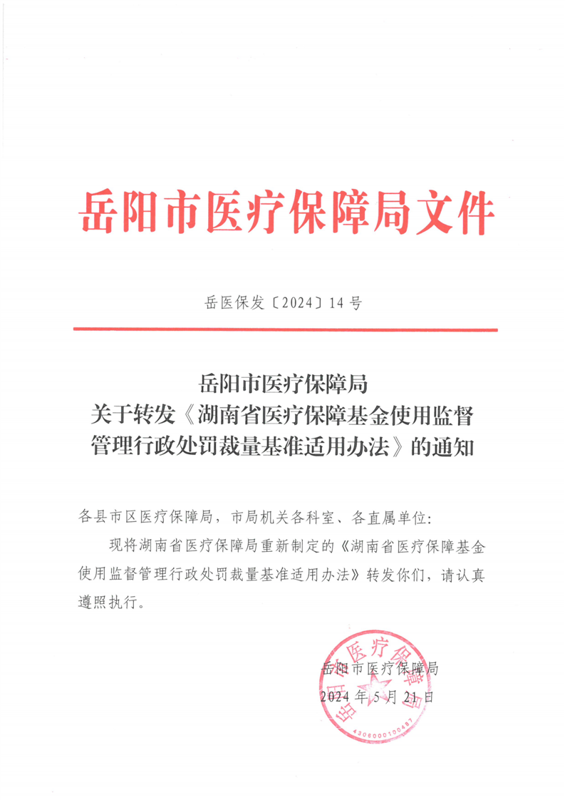 关于转发《湖南省医疗保障基金使用监督管理行政处罚裁量基准适用办法》的通知