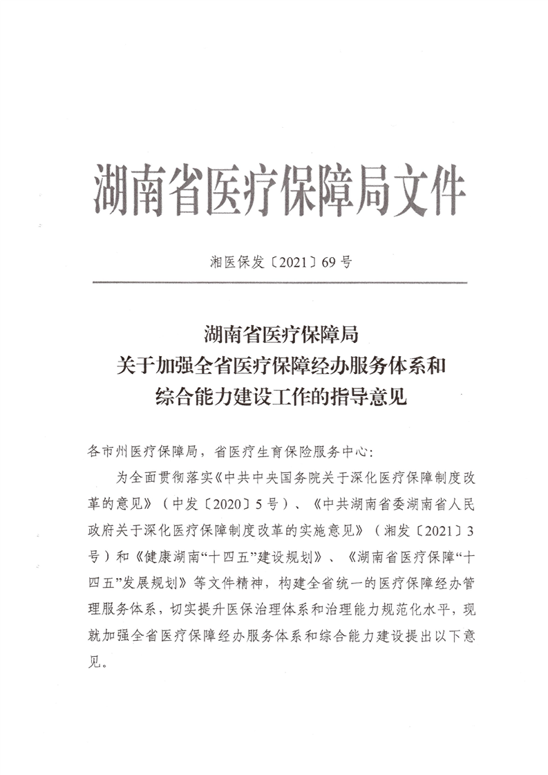 关于加强全省医疗保障经办服务体系和综合能力建设工作的指导意见