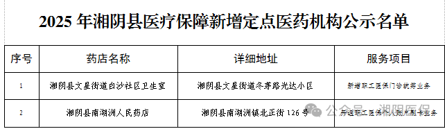 附件:2025年湘阴县医疗保障新增定点医药机构公示名单